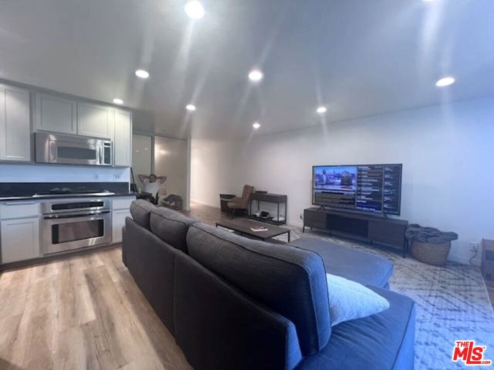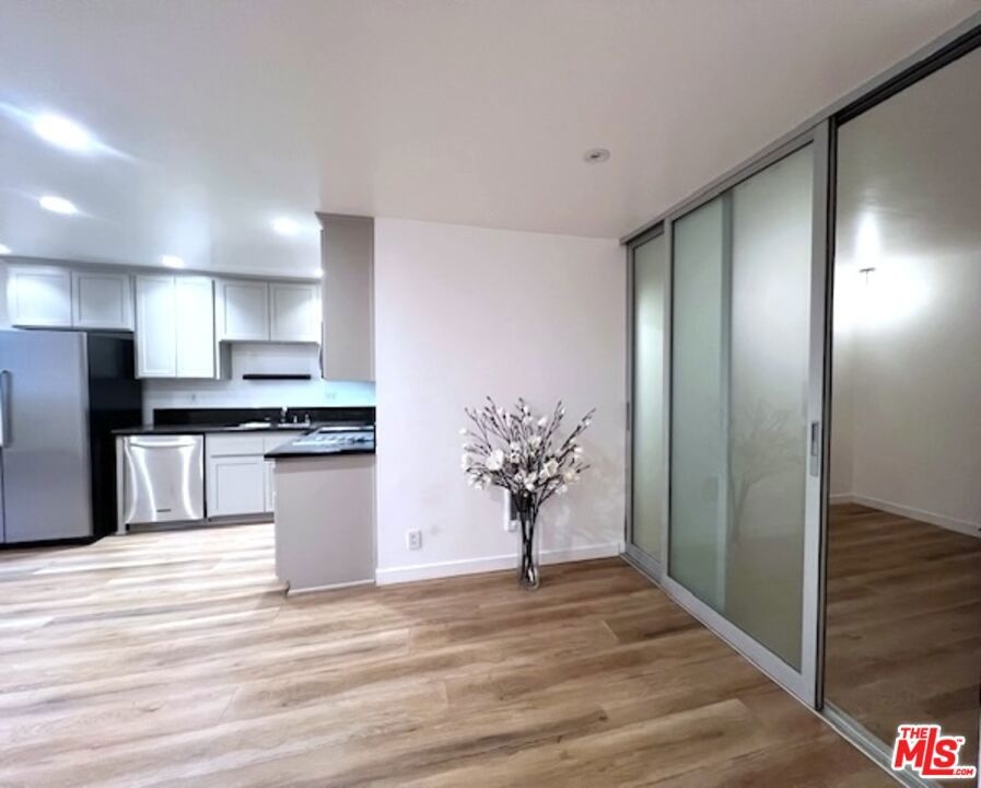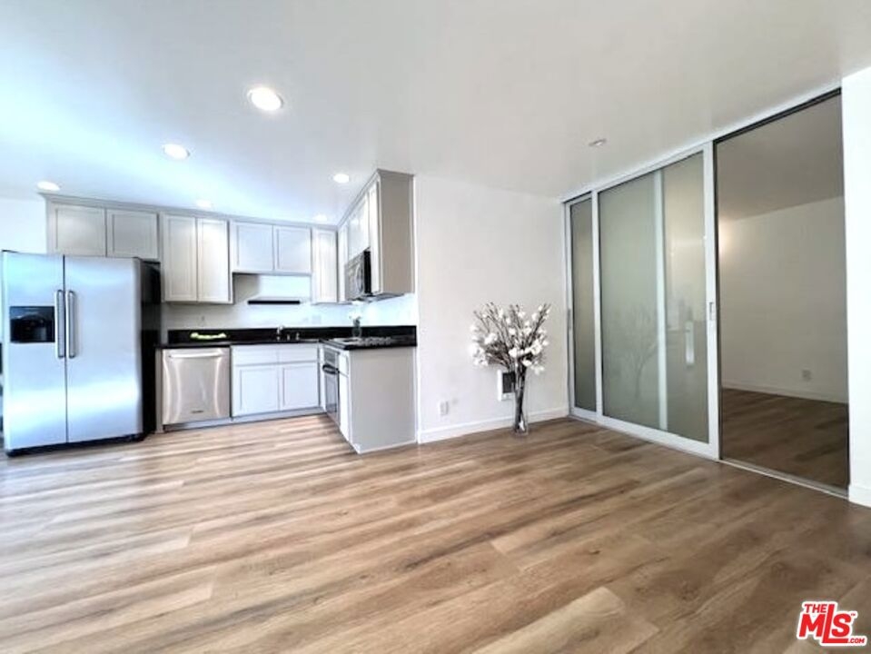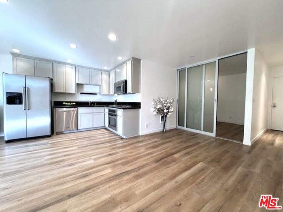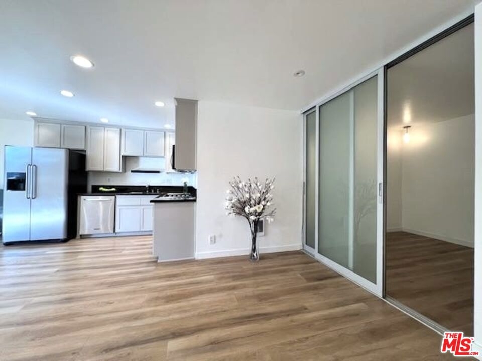 THE LOWEST & BEST PRICED CONDO IN BRENTWOOD!! - JUST REDUCED FOR IMMEDIATE SALE!! This magnificent sun-filled, bright, upper, spacious Pied-a-Terre with a Zen-like ambiance boasts a flow of pure elegance and style combining sophistication and functionality with efficiency living at its best. From a fully equipped huge chefs kitchen with beautiful refinished wood cabinetry, stainless steel appliances with large fridge, to a nice dining area with a cool lamp, and spacious living area which opens onto a large breezy balcony surrounded by lush greenery for cool summer drinks or dinner. The space is accentuated by the beauty and style of the two magnificent floor to ceiling frosted glass sliding doors to the bedroom area which can be moved from right to left or left to right. Ask for additional information. The space has hanging matching contemporary light sconces in the bedroom area which compliment the sophistication of this home. On suite redone bath w separate vanity, cool faucet & shower head. Large walk in closet. Newer hard surface flooring. Enter from its formal private center hall to its spacious living area which flows elegantly. Conveniently situated in the rear of the security building within steps to the rear elevator. With almost 600 sq ft and no hallways besides the entry, most of the square footage is usable. Security 6pm-2am most days. Newly remodeled Pool, spa. Gated Parking. HOD include earthquake Insurance. Vacant and easy to show. Ideally located right in the heart of Brentwood on its famous Montana Avenue, within a few minutes walking distance to all the neighborhood's trendy shops & restaurants and farmers market. This fabulous gem is not to be missed! Very easy to show! Bring your toothbrush! A real Beauty! Great investment or owner user!
