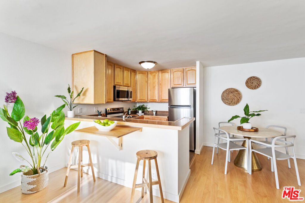 Amazing opportunity to own the least expensive condo currently available in Brentwood - ideally located on the famous Montana Avenue! This fabulous chic upper trendy one bedroom west facing condo drenched with sunlight and character, located in the heart of Brentwood's trendiest shops and restaurants and Sunday farmers market, just might be condo you've been waiting for. Offering a wonderful open floor plan with a sunny spacious living room and floor to ceiling sliding glass doors. Kitchen has open floor plan offering brand new stainless steel Samsung range and microwave, bar counter with cool extension, and tons of cabinets - ensuring an ideal spot for entertaining. Spacious master with huge closets. Redone bathroom with large bath. Tons of storage throughout. Great hard surface flooring in the living and bedroom areas. Montana Terrace offers pool, spa, saunas, onsite management, security 4pm to 12 midnight six days a week. HOD includes earthquake insurance, gas and water. A great deal not to be missed!