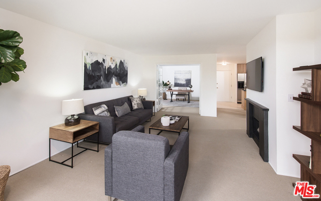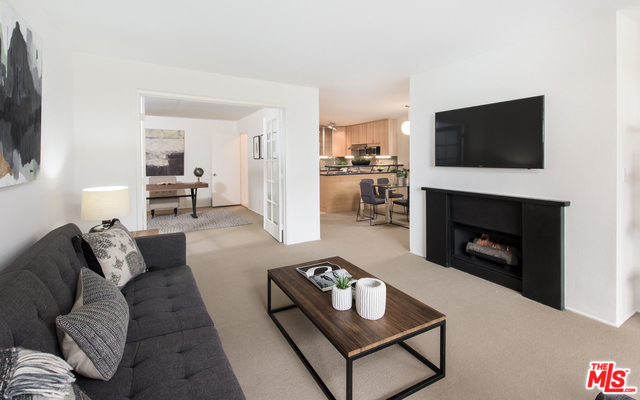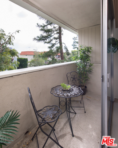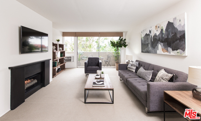 Light and bright one bedroom plus spacious den-second bedroom with built-in closets. Located on the second floor and facing South with wonderful tree top views the unit is immaculate and in move-in condition. Updated kitchen with stainless appliances and breakfast bar. Living room with gas fireplace that opens to the large sun filled balcony. Master bedroom opens to balcony and has limestone bathroom. Montana Terrace has pool, Jacuzzi, sauna's, security, onsite management. Home owner's dues include water, gas, and earthquake insurance. Moments from Brentwood's amazing restaurants, Whole Foods, Farmer's Market and shops.