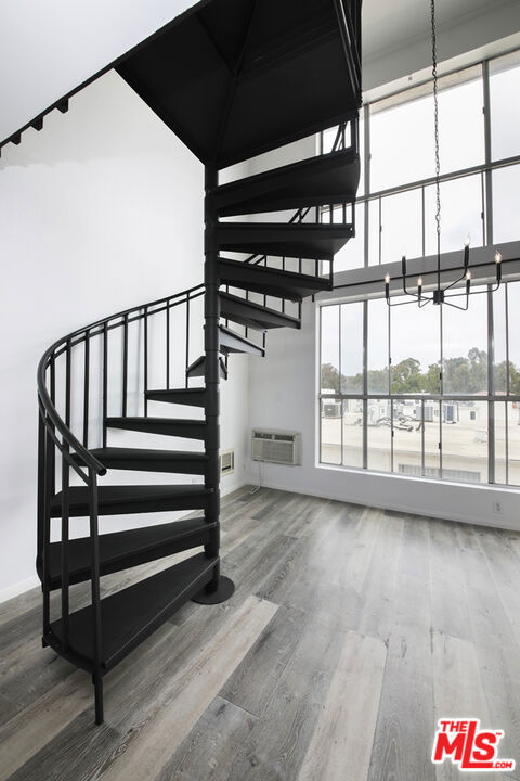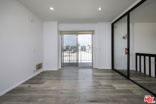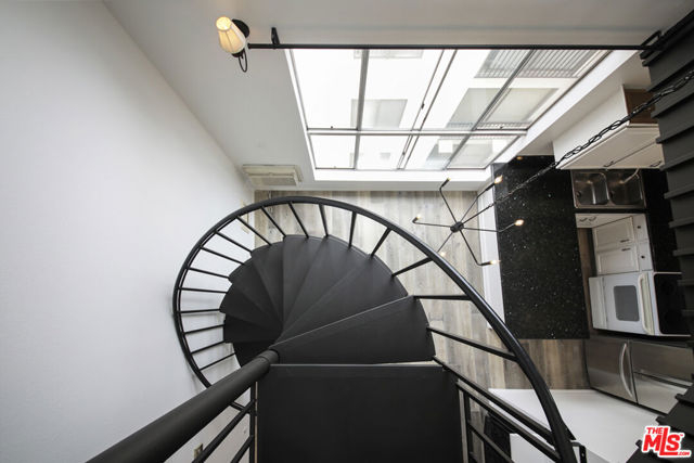 Unique loft style penthouse with 18' ceilings and walls of glass that look out onto the trees and mountains and provide abundant natural light throughout the day. Open spacious floor plan. The living room has a large fireplace, great walls for art and open kitchen with granite counters. Generous size loft bedroom upstairs and private rooftop patio with Getty museum view. The unit also features an updated bathroom and walk-in closet. 2 parking spaces! Montana Terrace offers a pool, spa and security 4pm to midnight Mon to Sat. HOA dues include water, gas and earthquake ins. Moments to Brentwood's finest restaurants, Whole Foods, Farmer's Market & trendy boutiques