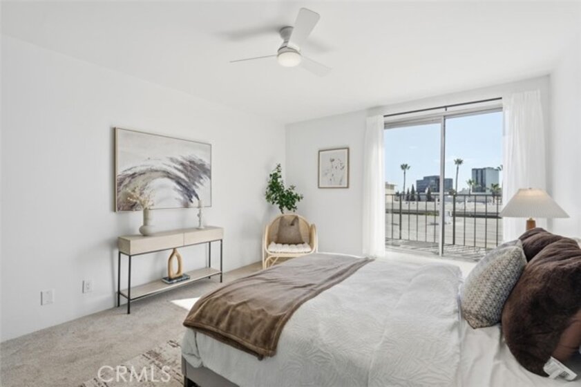 This top-floor residence offers striking 18-foot ceilings and dramatic walls of glass framing views of trees and mountains, filling the home with natural light throughout the day. The open, airy layout features a spacious living room with a fireplace, art-worthy walls, and a generous balcony for indoor-outdoor enjoyment. The stylish open kitchen has new flooring and stainless steel appliances. Upstairs, the large bedroom showcases private rooftop patio—perfect for relaxing or entertaining. Montana Terrace provides resort-style amenities including a pool, spa, sauna, and evening security (Mon–Sat, 4pm–midnight). HOA dues cover water, gas, and earthquake insurance. Ideally located moments from Brentwood’s premier restaurants, Whole Foods, Farmer’s Market, and chic boutiques—this home offers the perfect blend of modern design and coveted Westside living.