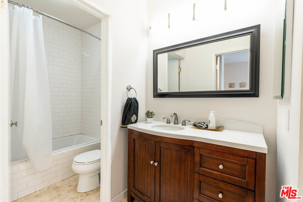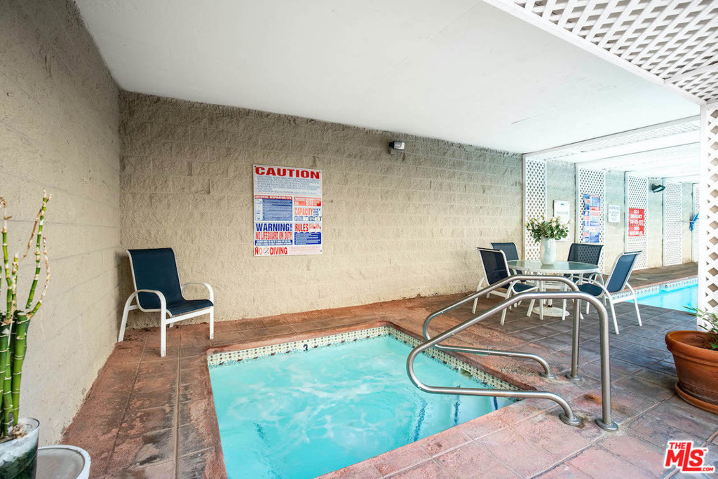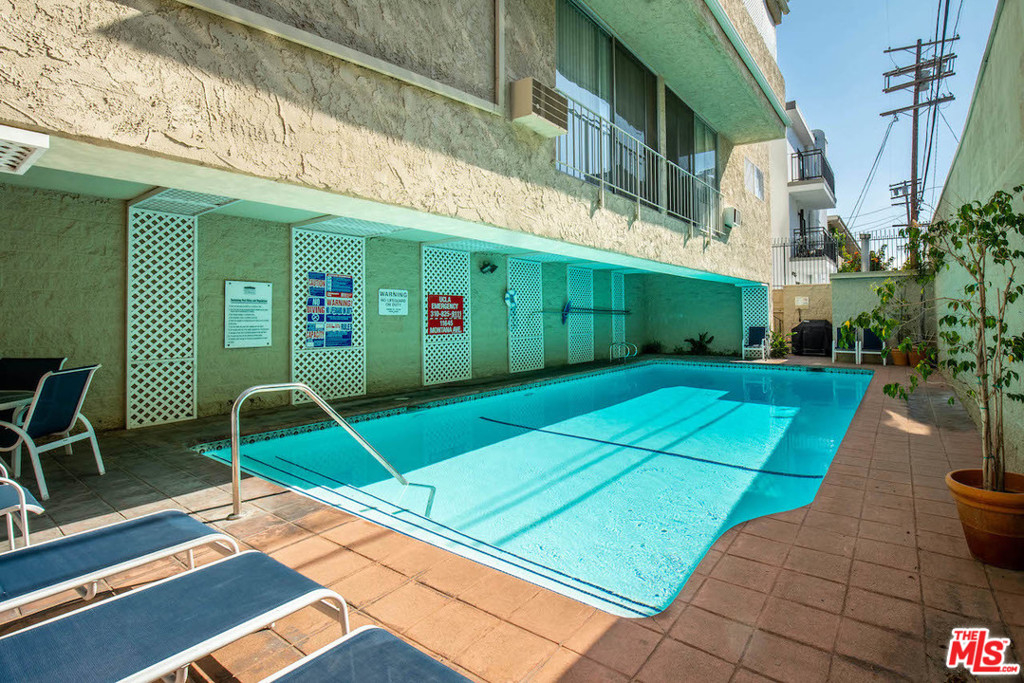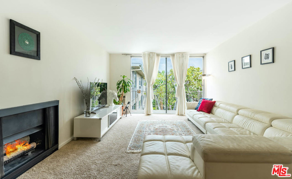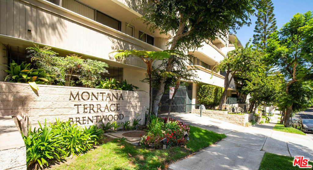 Gorgeous top floor condominium in the Montana Terrace, located only 3 blocks from San Vicente. This light and bright top floor unit with 1 bedroom plus a den/office/possible 2nd bedroom will not last long on the market. Beautiful open layout kitchen with stainless steel appliances and a breakfast bar opening to the dining room. Large living room with fireplace and sliding glass doors opening to a private balcony overlooking a lushly landscaped courtyard. The den/office has 2 closets and could be used as a 2nd bedroom or guest room.The full bath offers a shower/tub with sparkling new subway tile plus a stunning new sink vanity. There's an abundance of closet space in the large bedroom. This unit is immaculate and in move-in condition. Relax in the spa and then cool down in the refreshing pool. Montana Terrace has pool, Jacuzzi, sauna's, security, onsite management. Home owner's dues include water, gas, and earthquake insurance. 2 parking spaces in the security garage!