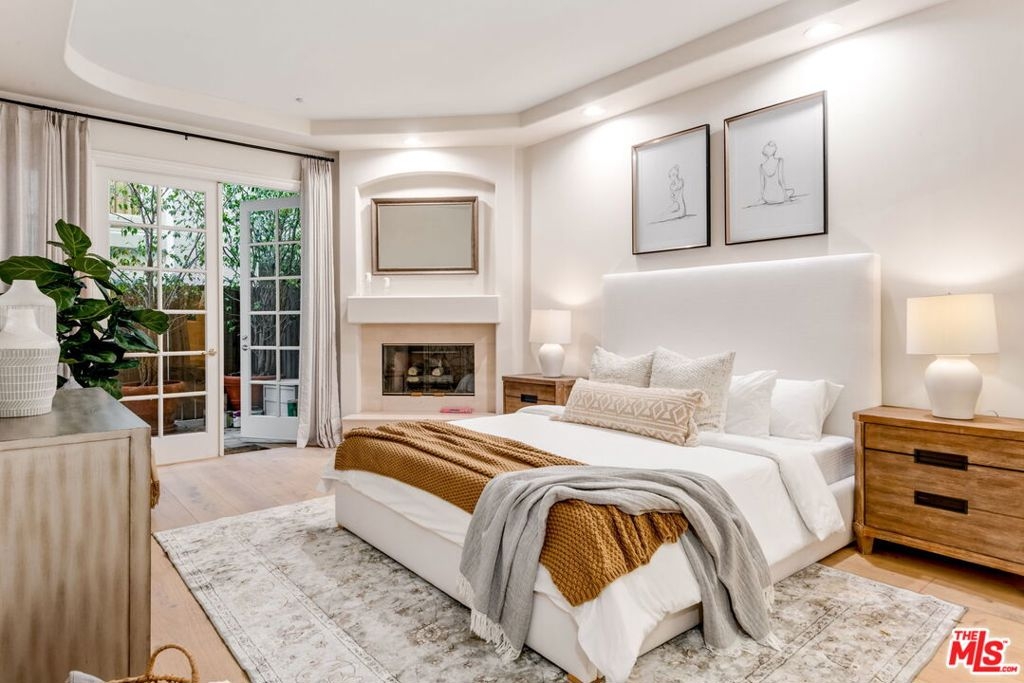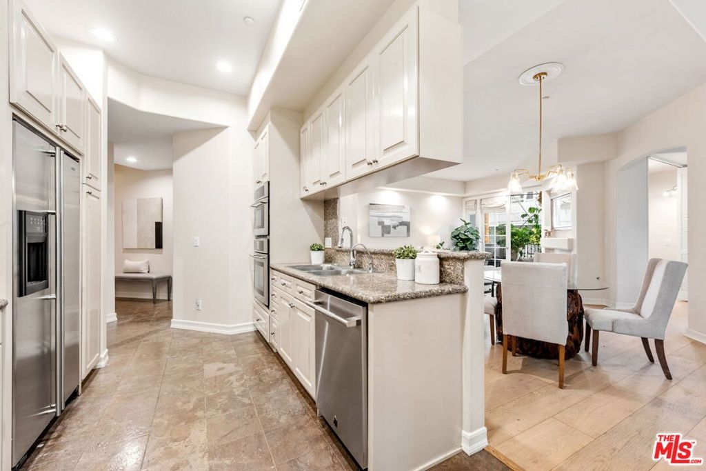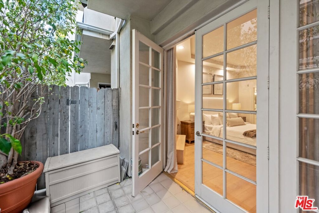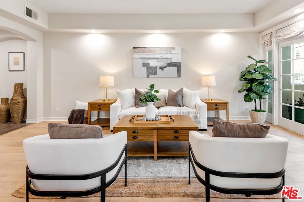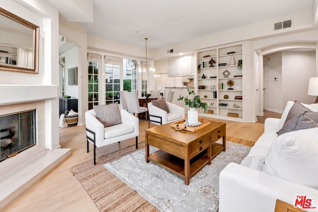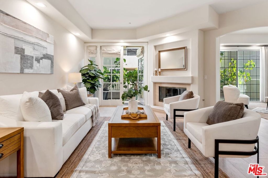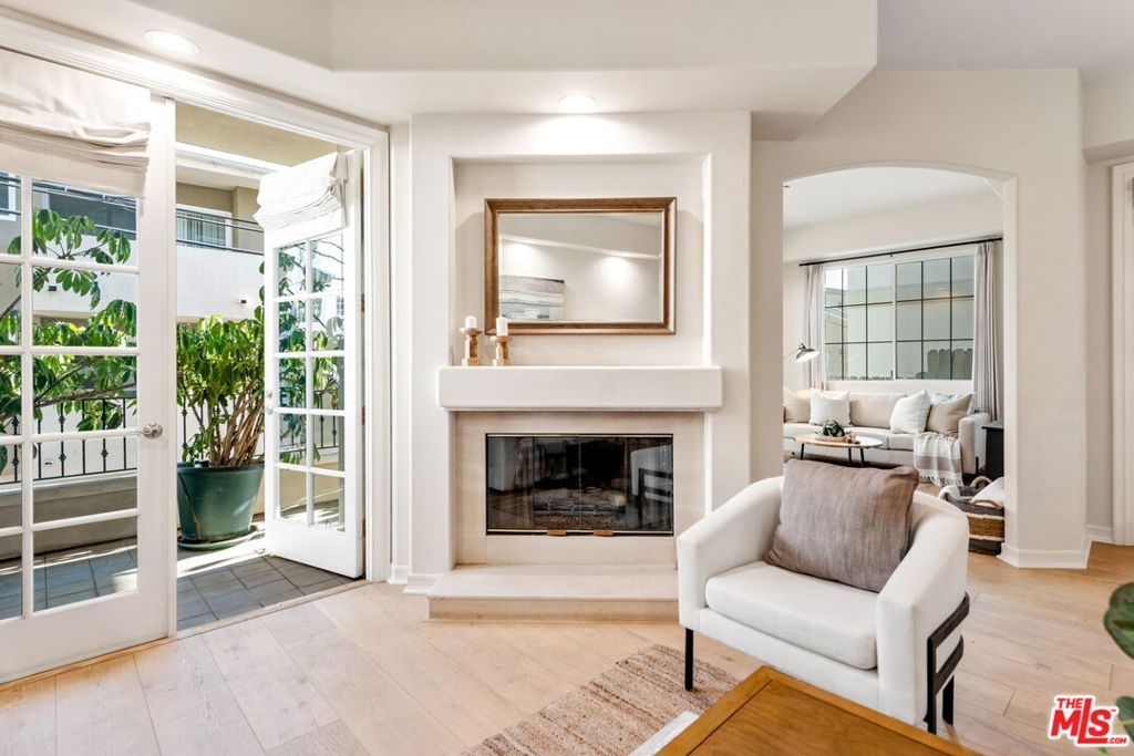 In the heart of Brentwood, find this exceptional 2-bedroom, 2-bathroom corner unit, complete with a versatile den, offers a seamless blend of contemporary design, thoughtful details, and luxurious living. The open-concept layout connects the living room, dining area, and gourmet kitchen, creating a space that is both inviting and functional. Bathed in natural sunlight, the interiors exude warmth and sophistication, ideal for intimate evenings or entertaining on the expansive private wraparound patio. Every detail of this home has been carefully curated, from the elegant crown moldings and graceful archways to the rich hardwood floors and recessed lighting. The chef's kitchen stands out as a centerpiece, featuring stainless steel appliances, an eat-in bar, and ample storage, all overlooking a serene courtyard filled with lush greenery.The primary suite is a true retreat, boasting a spa-inspired en-suite bathroom with a freestanding soaking tub, dual vanity, and spacious shower. A cozy fireplace adds ambiance, while French doors open directly onto the patio, offering a seamless indoor-outdoor connection. The generous walk-in closet enhances the suite's luxurious appeal.The second bedroom enjoys tranquil views of the beautifully landscaped courtyard, with mature trees and succulents. Additionally, the den or family room provides a flexible space that can easily adapt to your needs, whether as a home office, media room, or creative studio.This home is part of a standout building featuring secure entrance. Residents enjoy access to a fitness room and well maintained grounds. Practical features include two tandem parking spaces in a secure garage, abundant guest parking, in-unit side by side laundry. Located in one of Brentwood's most prestigious neighborhoods, this residence offers unparalleled convenience. Just steps from the boutiques, renowned restaurants, and a vibrant weekly farmer's market on San Vicente Boulevard, as well as award-winning schools and nearby beautiful parks.