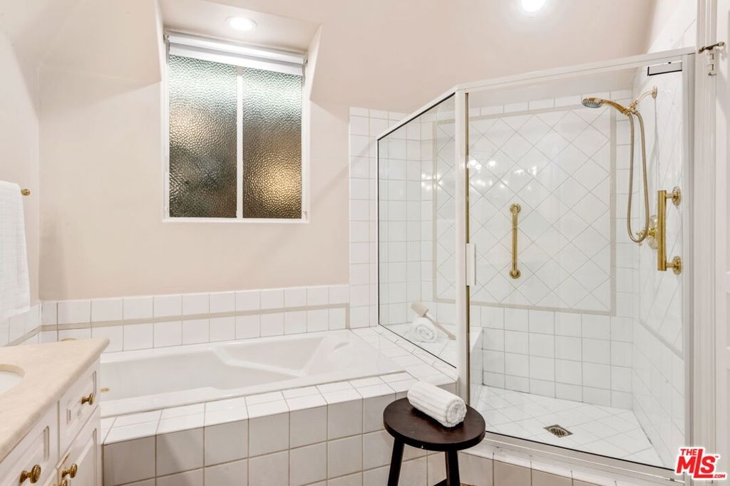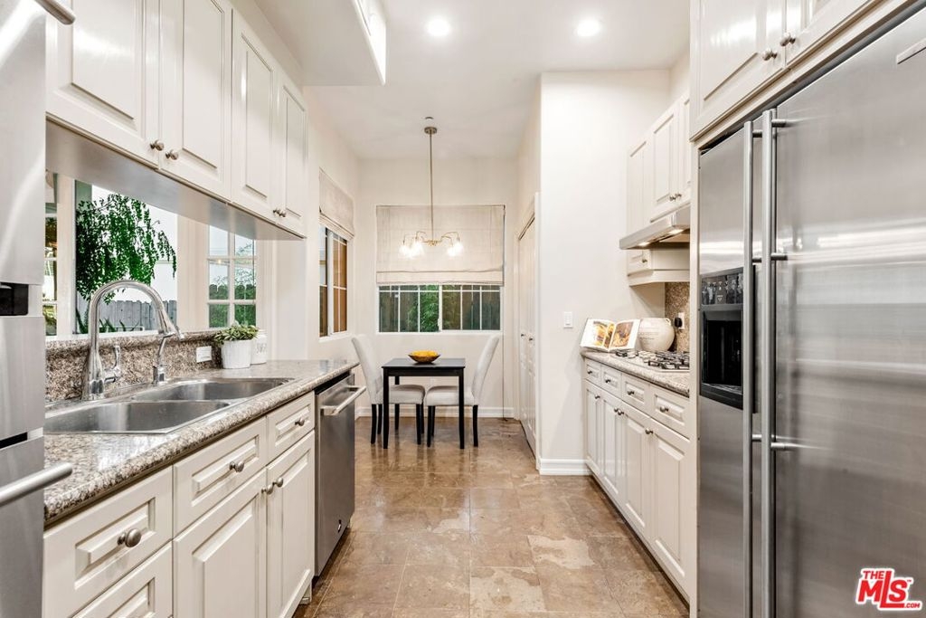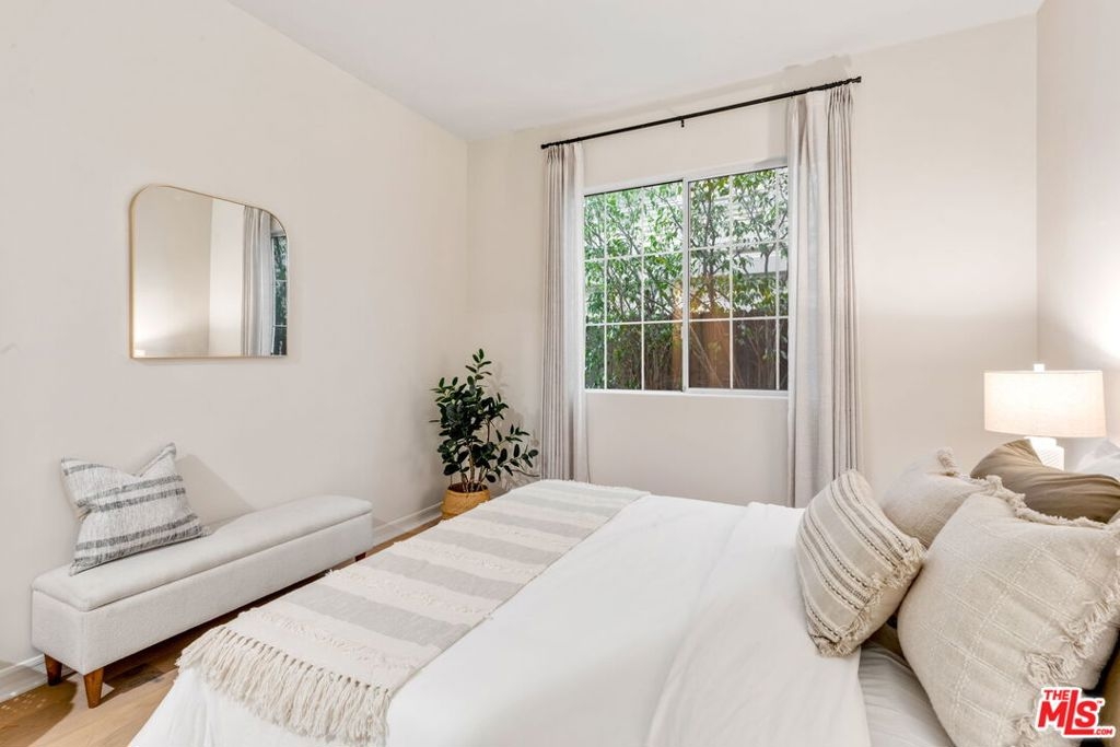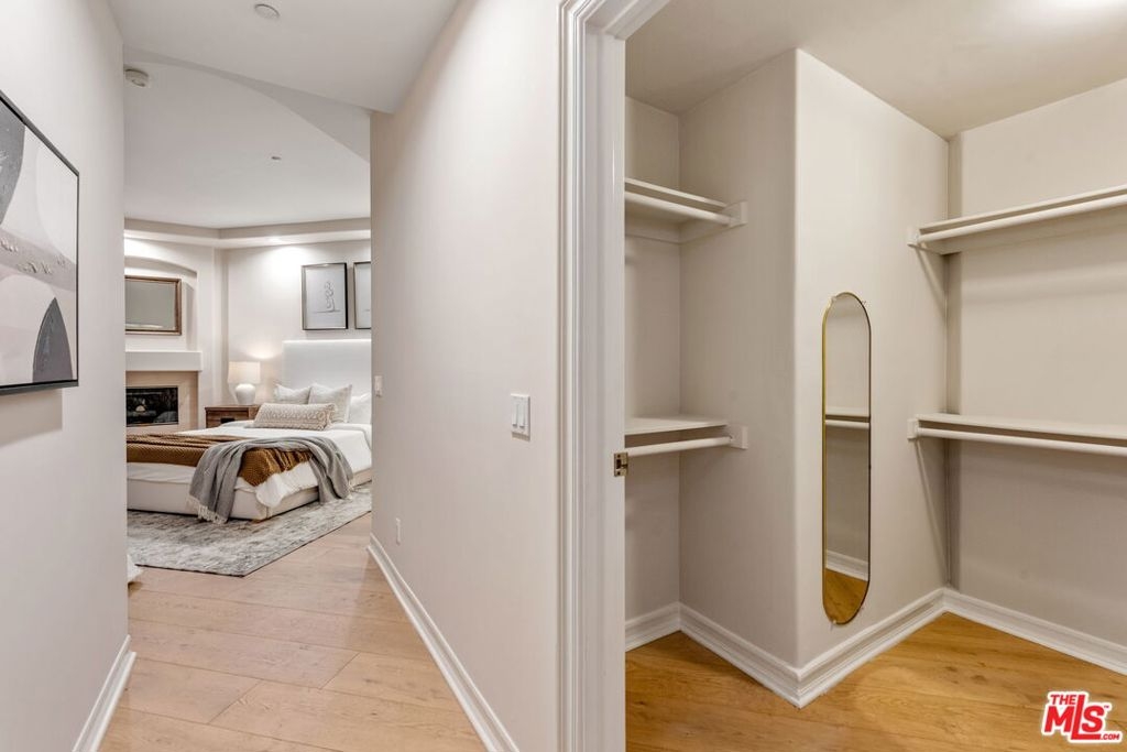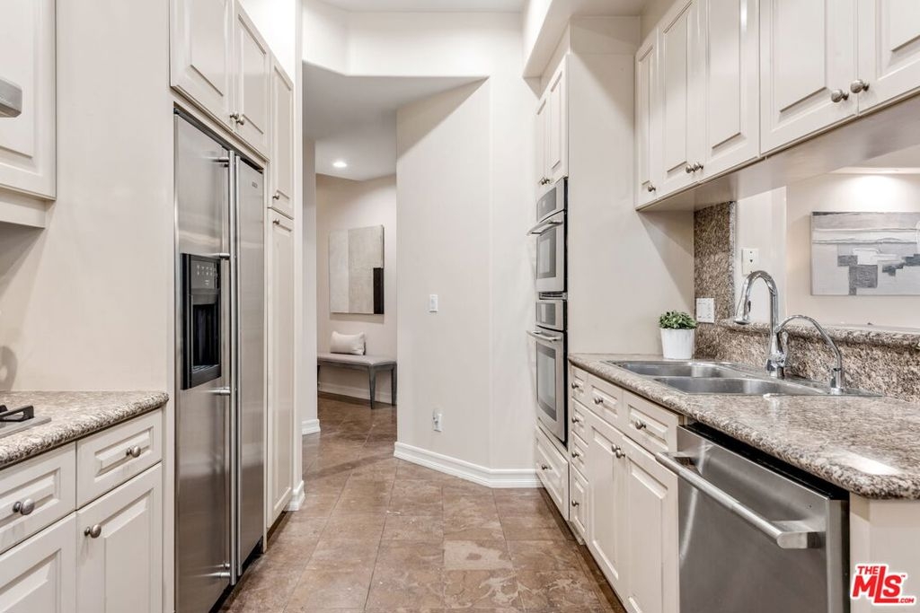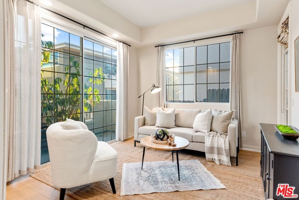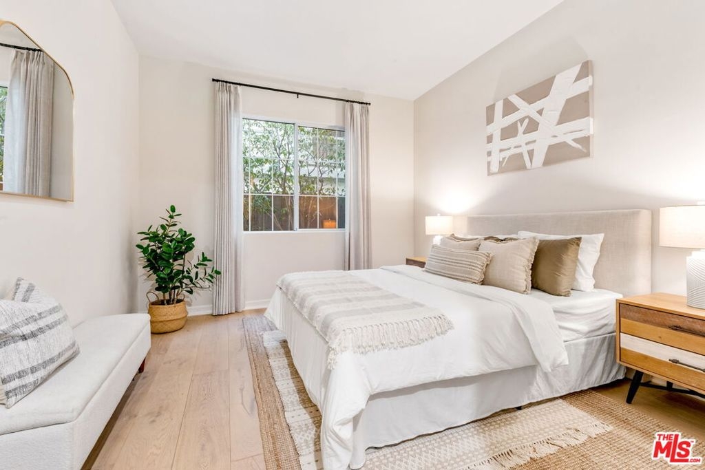 In the heart of Brentwood, find this exceptional 2-bedroom, 2-bathroom corner unit, complete with a versatile den, offers a seamless blend of contemporary design, thoughtful details, and luxurious living. The open-concept layout connects the living room, dining area, and gourmet kitchen, creating a space that is both inviting and functional. Bathed in natural sunlight, the interiors exude warmth and sophistication, ideal for intimate evenings or entertaining on the expansive private wraparound patio. Every detail of this home has been carefully curated, from the elegant crown moldings and graceful archways to the rich hardwood floors and recessed lighting. The chef's kitchen stands out as a centerpiece, featuring stainless steel appliances, an eat-in bar, and ample storage, all overlooking a serene courtyard filled with lush greenery.The primary suite is a true retreat, boasting a spa-inspired en-suite bathroom with a freestanding soaking tub, dual vanity, and spacious shower. A cozy fireplace adds ambiance, while French doors open directly onto the patio, offering a seamless indoor-outdoor connection. The generous walk-in closet enhances the suite's luxurious appeal.The second bedroom enjoys tranquil views of the beautifully landscaped courtyard, with mature trees and succulents. Additionally, the den or family room provides a flexible space that can easily adapt to your needs, whether as a home office, media room, or creative studio.This home is part of a standout building featuring secure entrance. Residents enjoy access to a fitness room and well maintained grounds. Practical features include two tandem parking spaces in a secure garage, abundant guest parking, in-unit side by side laundry. Located in one of Brentwood's most prestigious neighborhoods, this residence offers unparalleled convenience. Just steps from the boutiques, renowned restaurants, and a vibrant weekly farmer's market on San Vicente Boulevard, as well as award-winning schools and nearby beautiful parks.