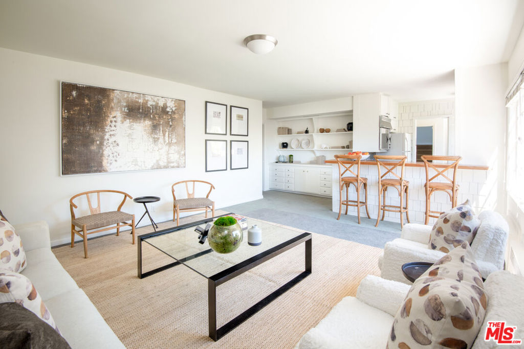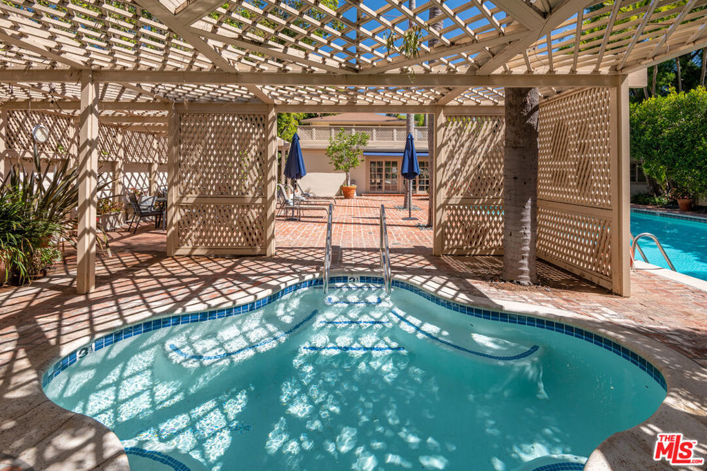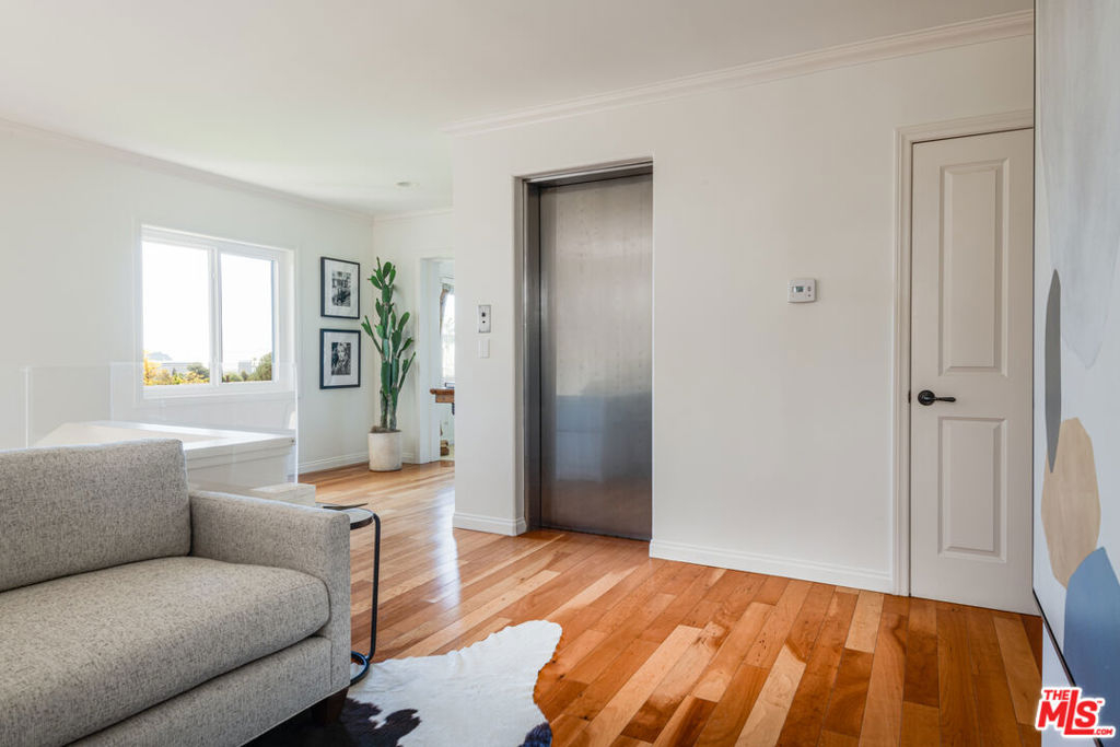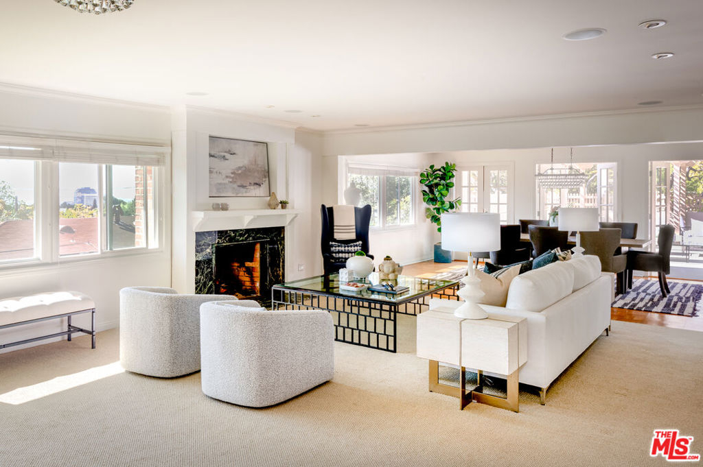 This unique condo in Brentwood, measuring 4528 square feet in total, combines privacy, charm, and modern amenities. Set back from Sunset Blvd. amongst trees and gardens, the main 3,314 square foot residence occupies the entire 3rd floor and has the feel of a roomy New York apartment with tree top and city views. Bright and spacious with large windows, skylights and expansive patios off both the main living area and the primary bedroom suite. The open concept main living space includes a fireplace and bar which open to the patio, ideal for indoor outdoor living. The airy kitchen has stainless steel appliances and an eat in dining area. There are 4 bedrooms, 3 and baths, a laundry room and office. The new energy efficient double pane windows on the 3rd floor provide a quiet peaceful environment. There is a two bedroom, bath, 1,187 square foot unit on the floor below. A private elevator serves both units. There is an abundance of storage, including two separate large storage areas. Private garage parking for 3 cars. The complex has beautiful gardens, pool, spa, and gym. Don't miss this special property in the heart of Brentwood.
