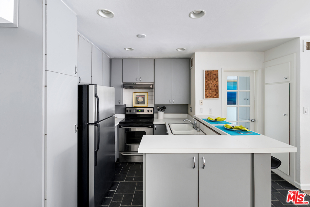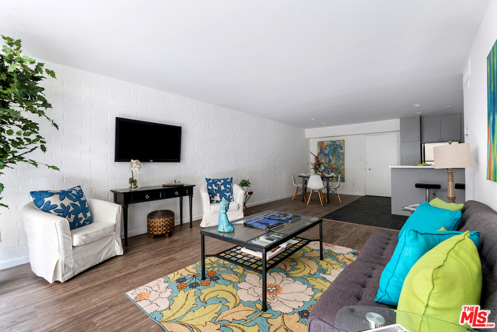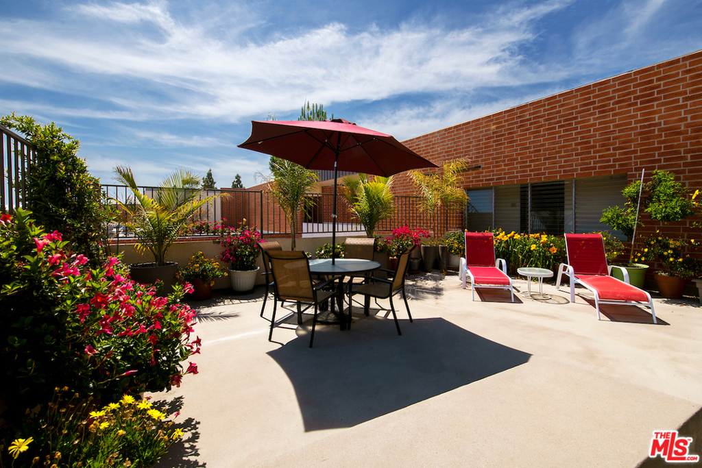 Brentwood Condo in a Garden Courtyard Setting. The Sunset Terrace Condominiums is only a block from the Brentwood Village. Very close to shops, restaurants, Getty Museum and park. Well laid out floor plan overlooking the courtyard. New and beautifully laid engineered plank floors throughout. Living room opens to your patio and courtyard for your enjoyment. Kitchen with stainless steel appliances, breakfast bar and slate floors. There's good amount of closet space, central heat and ac, one car security parking. Amenities include a pool, gym, clubhouse and a roof top terrace. Close proximity to UCLA, dog park, freeway, and Brentwood Farmers Market.