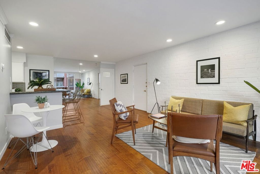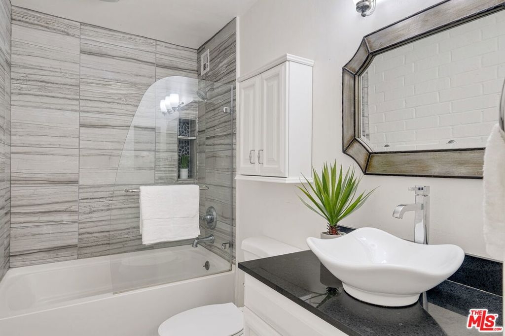 In a prime Brentwood location, this recently updated 2 bed, 2 bath, 3rd floor condo is a steal! This home is full of upgrades; new kitchen appliances, remodeled master bathroom, new engineered hardwood floors, crown molding, and more. The home is move-in ready with a fantastic open layout, a private balcony, and a floor-to-ceiling mirror wall. In addition, both bedrooms have en-suite bathrooms and do not share a wall - a rare find in a typical 2 bedroom condo! Additional features include exposed brick walls, new heat/AC, a community gym, pool, side-by-side gated parking, and an incredible location - walking distance to The Brentwood Village and less than 2 miles to San Vicente Boulevard, with easy access to the 405 freeway.