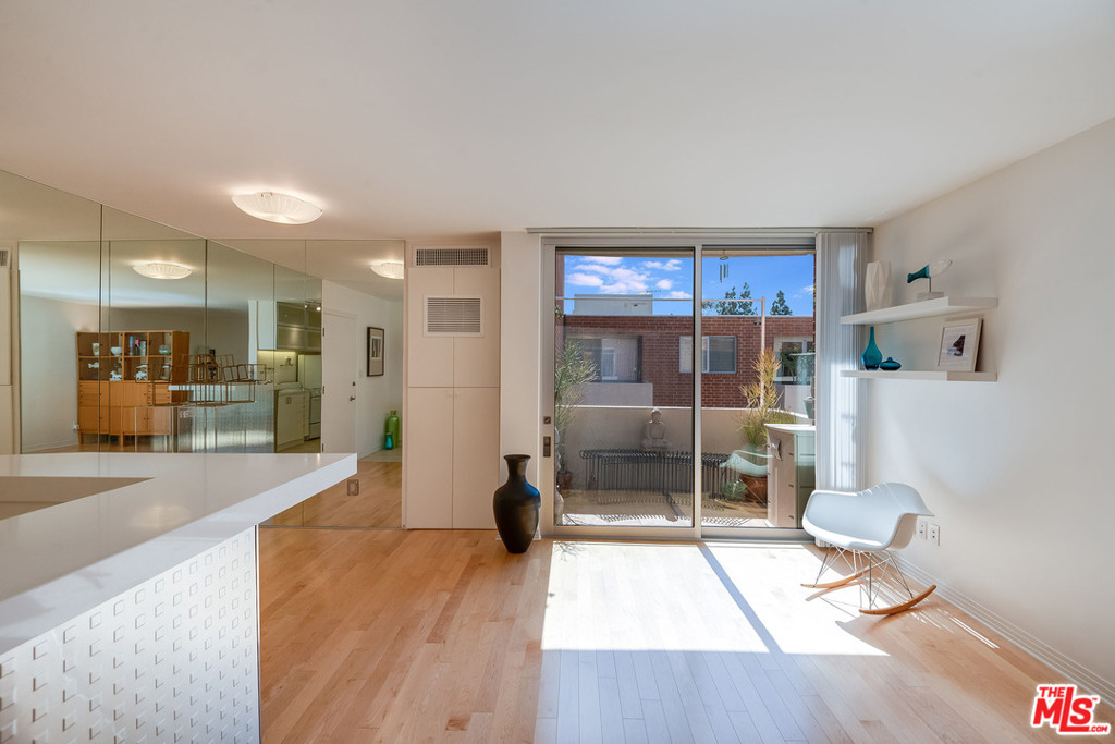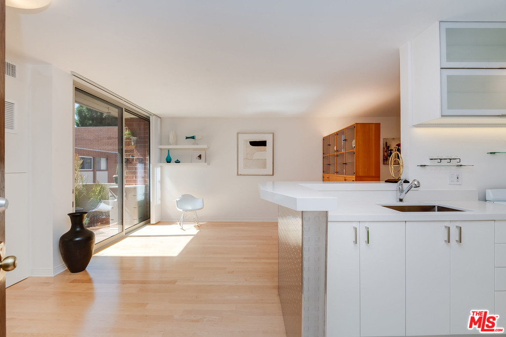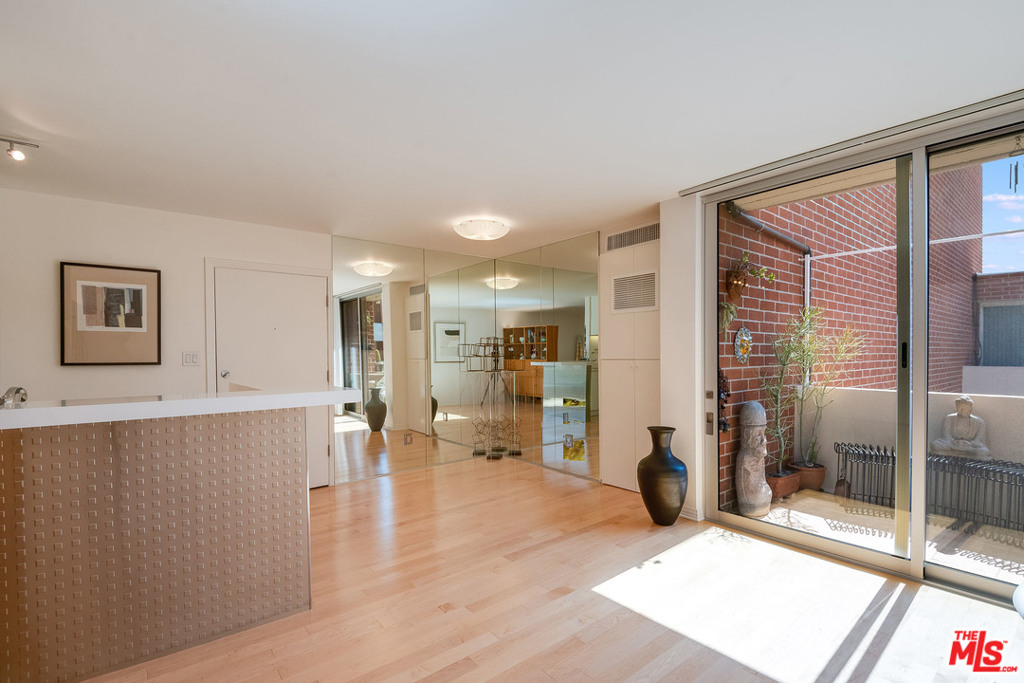 Mid Century Pied a Terre in prime Brentwood! Top floor, West facing -corner unit, with serene courtyard views! ( only one common wall) Custom designer renovated with beautiful Caesarstone countertops in kitchen & bath, custom LED lighting, Real Canadian Maple flooring, new custom Fleetwood sliding door, divine leaded glass door inserts, all new cabinets in kitchen & bath with Duravit sink, Mirrored dining area, custom stainless steel bar, large balcony with awning. Centrally located in prime Brentwood! Stroll to boutiques, cafes, restaurants, farmers market ! Close to UCLA, The Getty Museum, hiking trails! Amenities include pool, gym, roof-top sundeck ! Live in resort! 1 assigned parking space is included.