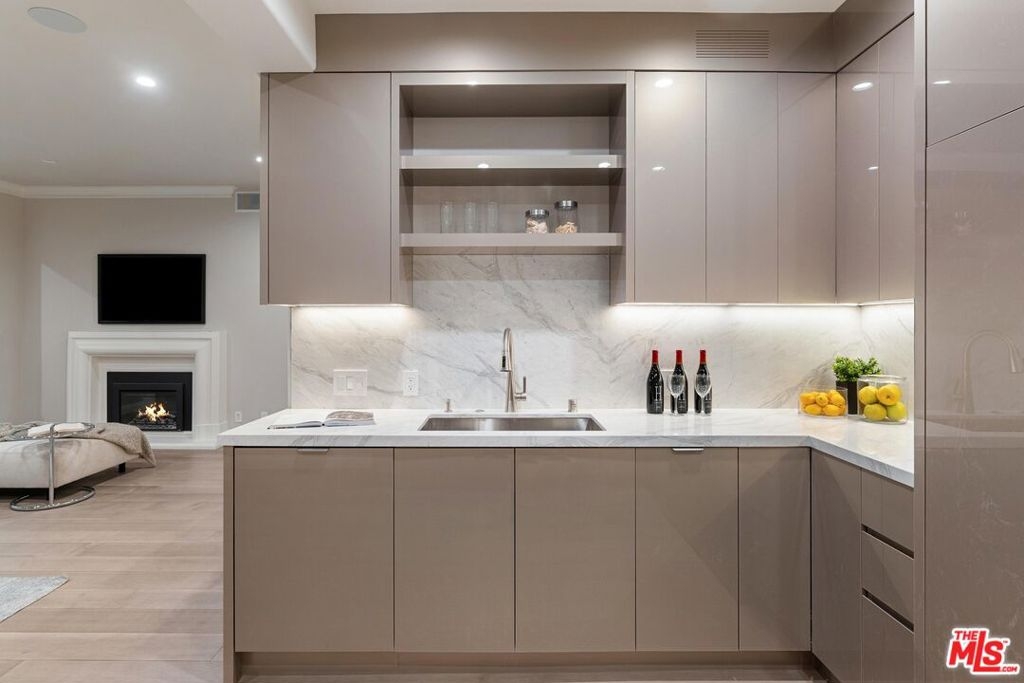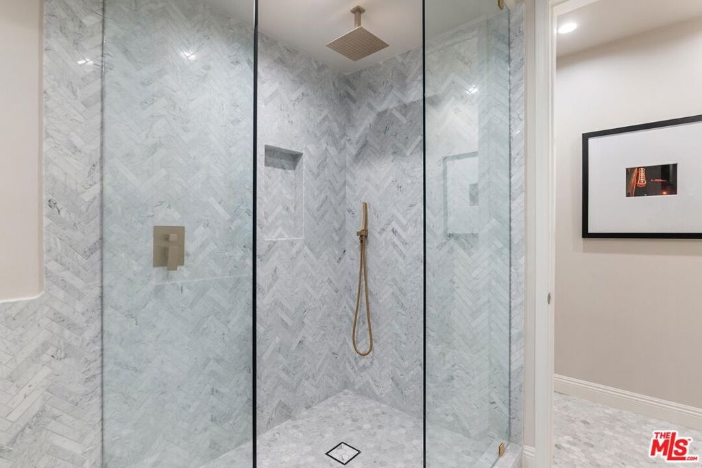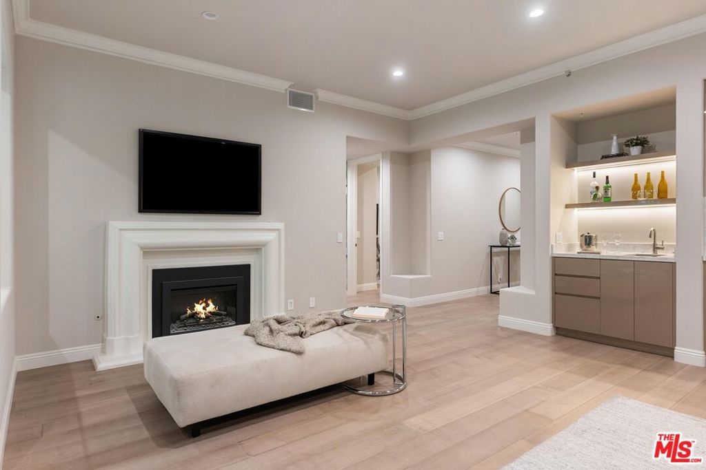 Rare one level three bedroom unit spanning 2,300 sq. ft. in the heart of Brentwood, this fully renovated residence in a highly sought-after luxury building offers unparalleled privacy, premium amenities, and security. The open-concept floor plan seamlessly connects the spacious living area to the kitchen and dining space, all enhanced by white pale hardwood floors. The kitchen boasts sleek lacquered cabinetry, marble countertops, Miele appliances, and ample storage, while a wet bar with built in shelving and ambient lighting enhances the living space, anchored by a cozy fireplace. The dining area comfortably seats six and includes custom built-in cabinetry. The primary suite evokes a five-star retreat, offering generous space, a walk-in closet, and a spa-like en-suite bathroom with a free-standing tub, dual-head frameless glass rainfall shower, and dual vanities. Two additional bedrooms share a beautifully finished full bathroom, while a powder room adds convenience for guests. A private outdoor space offers the perfect spot for relaxing or entertaining. Living at The Brentwood means more than just enjoying a beautiful home; it's about embracing a lifestyle. Residents enjoy 24 hour concierge service, on site management, a fitness center, a rooftop pool and hot tub, a banquet room, valet parking, and 24/7 security. The unit includes three parking spaces, and HOA dues cover internet, DirecTV, and water. Perfectly positioned moments from Brentwood's best shopping and dining, and just minutes from the Wilshire Corridor and Beverly Hills, this residence seamlessly blends luxury, privacy, and convenience into an extraordinary Westside retreat.