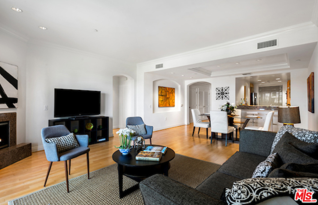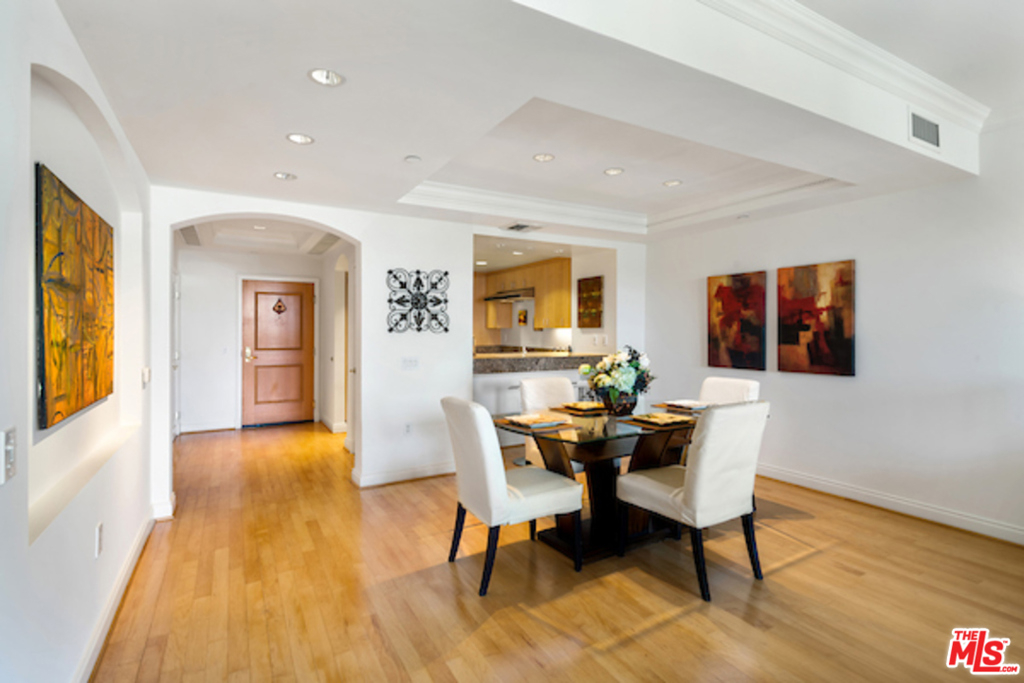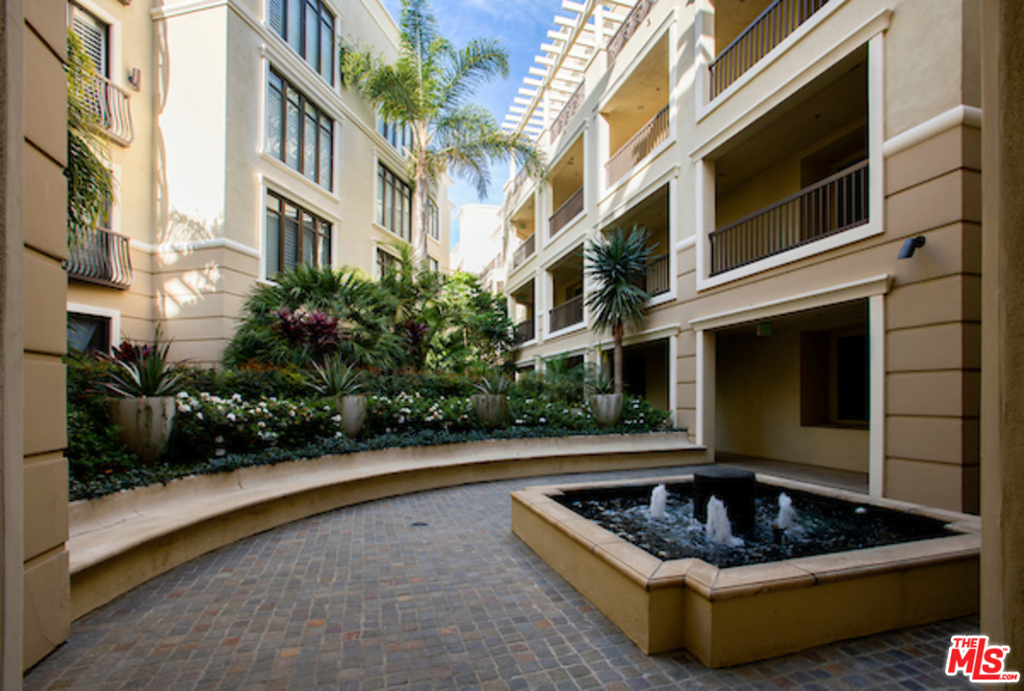 Exquisite Residence at The Westgate Condominiums in Brentwood. Extraordinarily large 1 bedroom + 1 .5 baths with approx. 1172 sqft in the coveted 24 hour concierge building. Spacious interiors with maple wood floors and crown moldings throughout. High ceilings, recessed lights and only one common wall. Bright and sunny front unit with southern exposure. Large living area with granite fireplace. Plantation shutters adding aesthetics appeal and insulation, tray ceiling in dining area imparts a feeling of spaciousness. Kitchen with granite countertops and tons of cupboard space, top of the line appliances and breakfast bar. Side by side inside laundry, master suite with sitting area and walk-in closet, master bath with separate tub and shower. Meticulously maintained grounds and elegant courtyard. Amenities include a fitness center, indoor spa and conference room. Close to Brentwoods finest shops, restaurants and services.