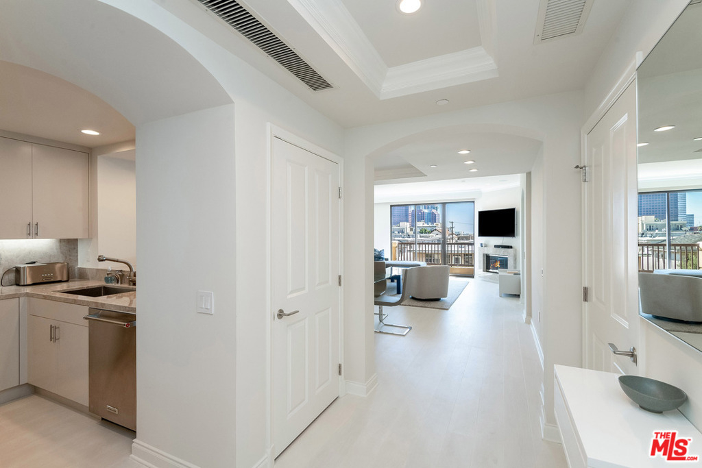 Beautifully updated condominium in the Westgate, one of the most coveted buildings in Brentwood. With a 90 walk score, this building is located in the heart of Brentwood, a short distance to award-winning restaurants, trendy shops, & the famed Brentwood Sunday farmers market. This sophisticated turn-key 2 bdrm & 2.5 bth Southwest corner unit offers apx. 1,461 sq.ft. of living space with two balconies overlooking city views & the lovely tree-lined street. Enter into the foyer leading to the sun-drenched living room w/fireplace, adjoining dining area, & glass sliders to private balcony. The gorgeous modern kitchen features granite countertops & backsplash w/built-in breakfast bar & professional appliances. The owners suite offers a private entrance, balcony, & luxurious bathroom. The guest bedroom suite, powder room, & laundry room complete the interior of this unit. Building amenities include 24-hour concierge, conference room, gym, indoor spa, guest parking & additional storage.