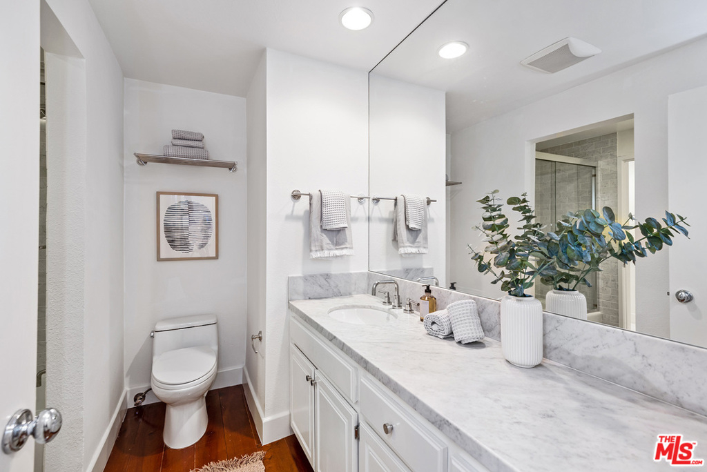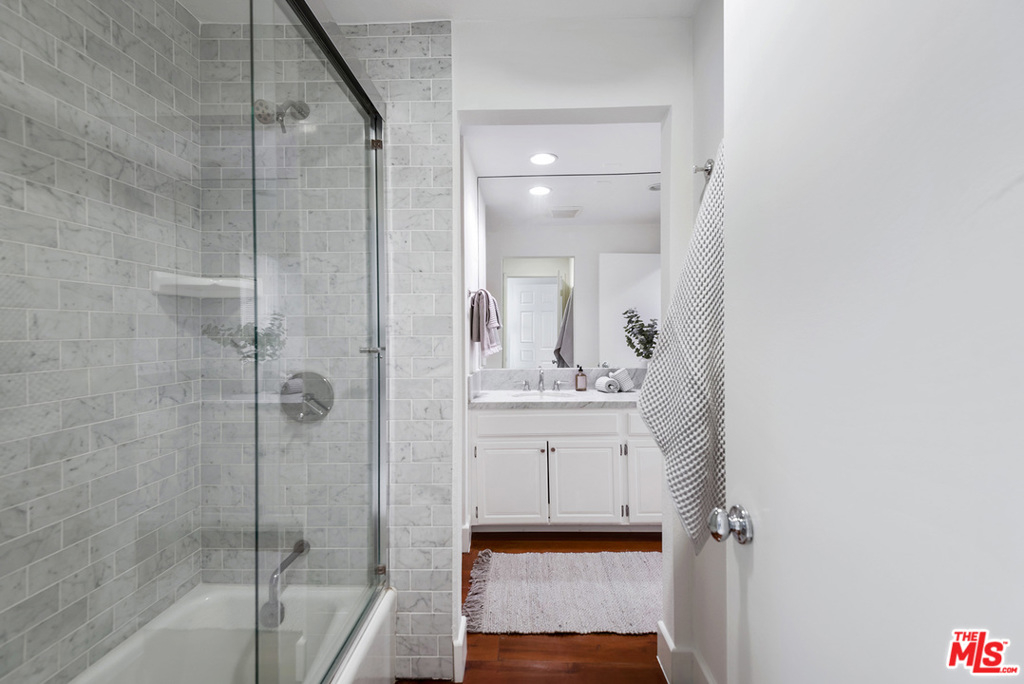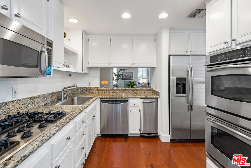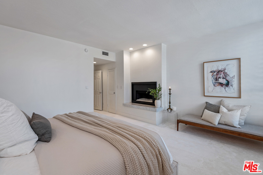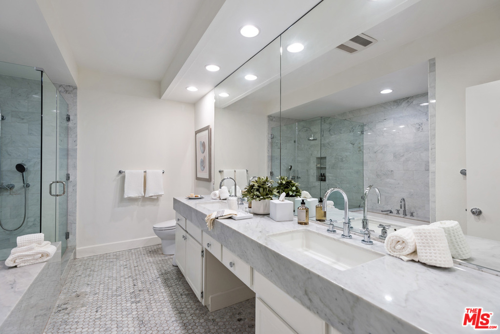 This large and updated front-facing corner unit is situated in the heart of Brentwood in a small 12-unit building. The spacious living room features wood floors, a fireplace, and floor-to-ceiling sliding doors with plantation shutters. The kitchen has stainless steel appliances, granite counters and separate breakfast area that looks out into the separate dining room. The luxurious principal suite includes two walk-in closets, a fireplace, and spa-like bathroom with Carrara marble tile work, dual sinks and separate shower and tub. The second bedroom has custom built-ins and an en-suite bathroom. A large central hall closet includes a side-by-side washer/dryer and additional storage space. This condo is close to dining, shopping, and great freeway access. Would make a wonderful place to call home!