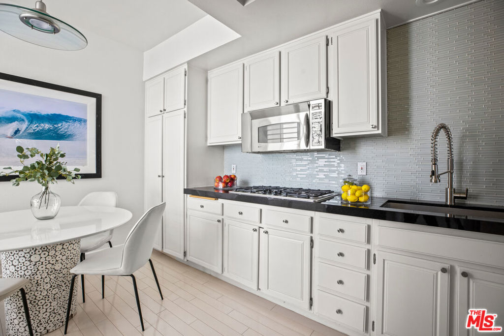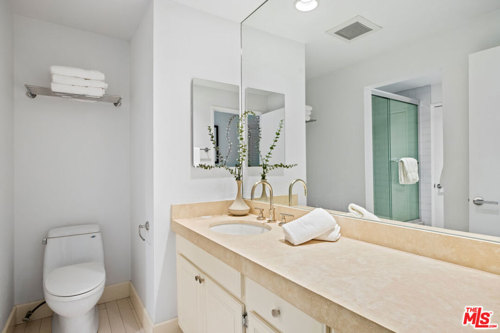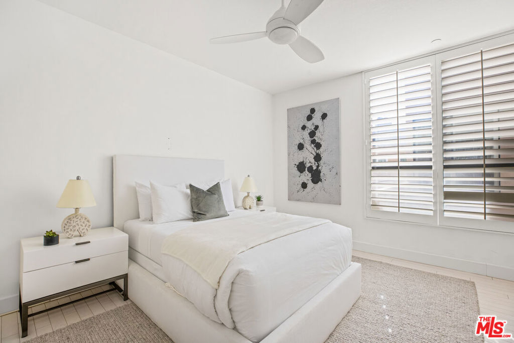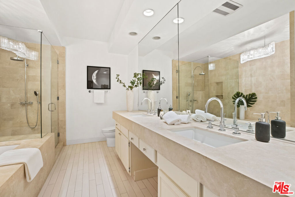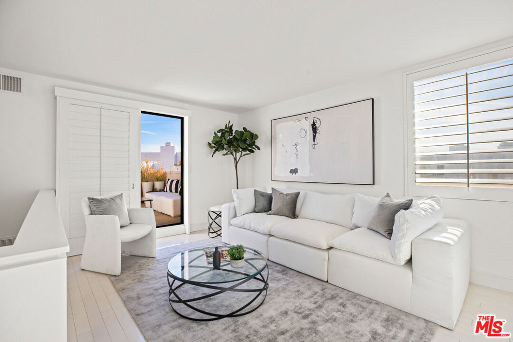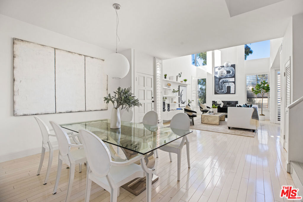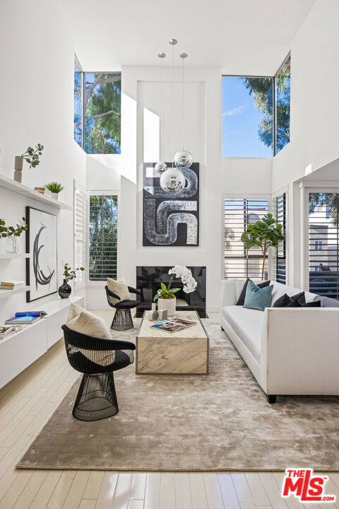 Dramatic, soaring ceilings and abundant light are among the striking elements of this pristine, top floor, 2 Bedroom/2 Bathrooms plus Loft, contemporary townhome with a rooftop deck in Brentwood. This west facing unit with city views features white wood floors, great kitchen with seating area, large primary suite with gas fireplace, grand bathroom with travertine counter, Kohler sinks, large shower with frameless glass enclosure and spa tub. Gated parking with side-by-side parking spaces next to the elevator. Situated in close proximity to Barrington Park and midway between the shops, restaurants and amenities of San Vicente and Barrington Square. A distinctive and rare offering.