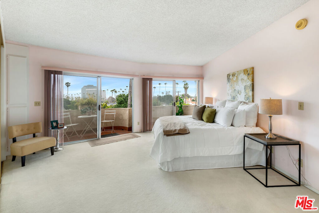 Cinematic Views From This Brentwood Penthouse Condo! Oversized one bedroom with almost 1,000 sqft located in the iconic Villa Florenze Condominiums. Breathtakingly renovated building complex with a welcoming grandiose and stylish lobby with security cameras located throughout. Formal double door entry leading to a spacious floor plan and weeping sunlight throughout this South and West facing top floor unit. There are 5 balconies to enjoy and absorb the dazzling urban landscapes. This is a great opportunity to create your own oasis. Amenities include a resort style pool, spa and community room. Laundry facilities are located in every floor. Very close to Brentwood's finest restaurants, shops, markets, services and Farmers Market.