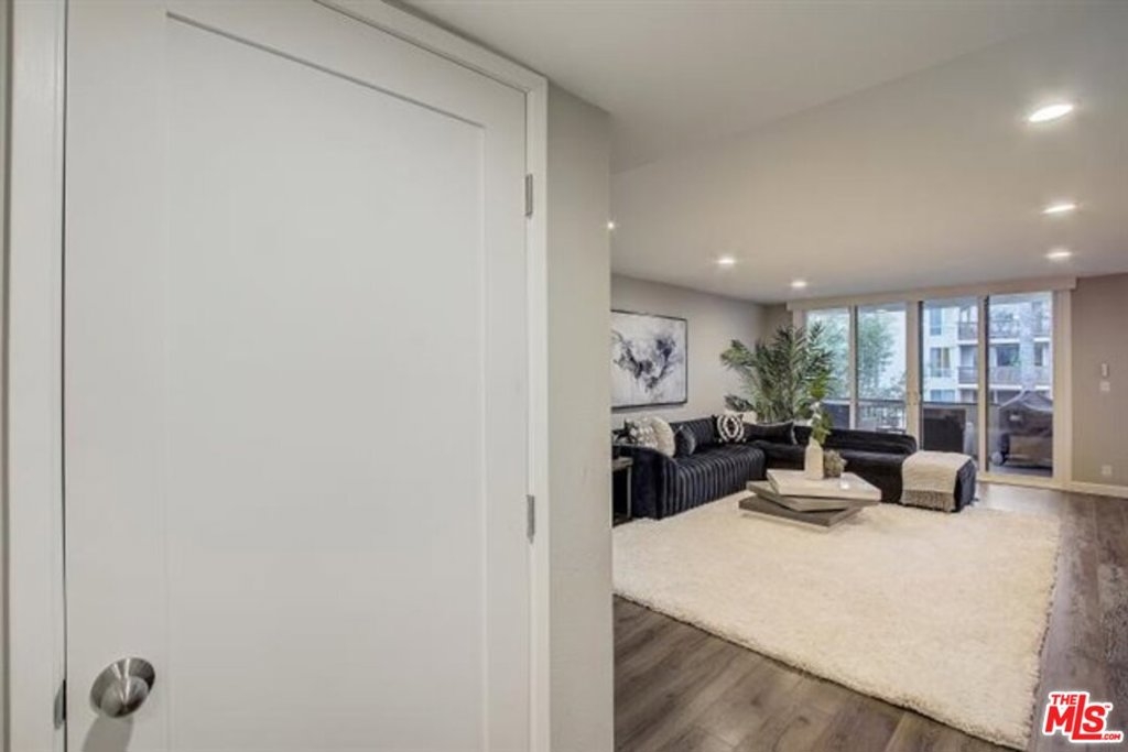 Beautifully renovated condo in the heart of Brentwood! Gorgeous new laminate wood floors throughout the living area, open floor plan with a large gourmet kitchen complete with quartz countertops and new stainless steel appliances! This Amazing light-filled home has two spacious bedrooms, both with walk in closets and plenty of storage throughout! Additional features include new windows/ sliding doors, electronic blinds in the living room, large balcony, central AC/heat, washer/dryer, updated bathrooms and recessed lighting throughout! Building has a relaxing pool, dry sauna and gym! Tandem parking with a bonus storage room! Conveniently located in Brentwood Village near all the trendy shops, restaurants and Sunday's Farmers Market! MUST SEE!!!!