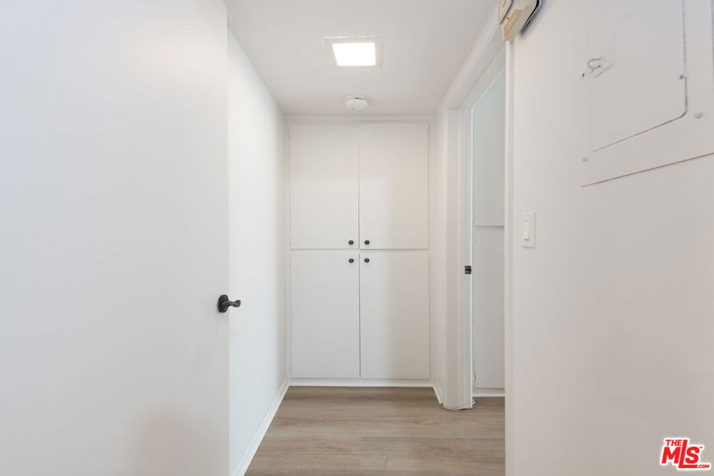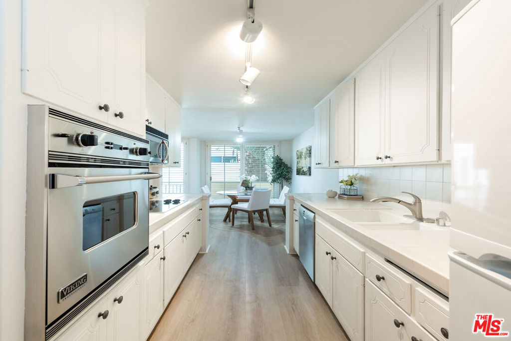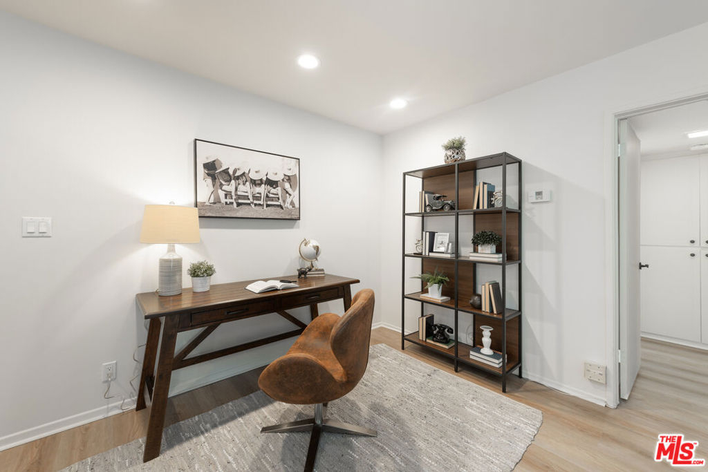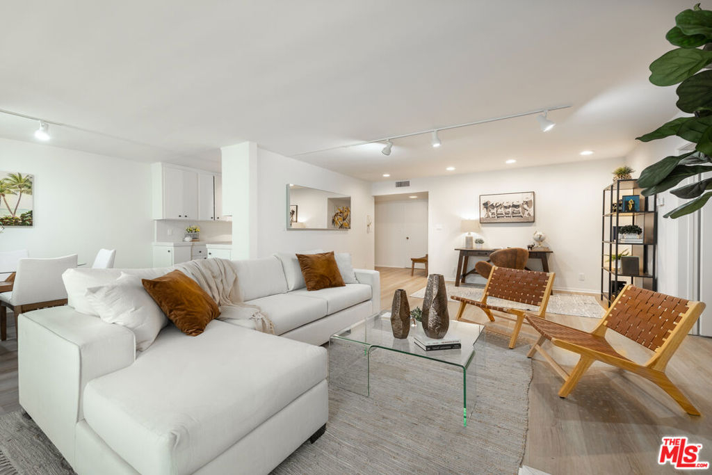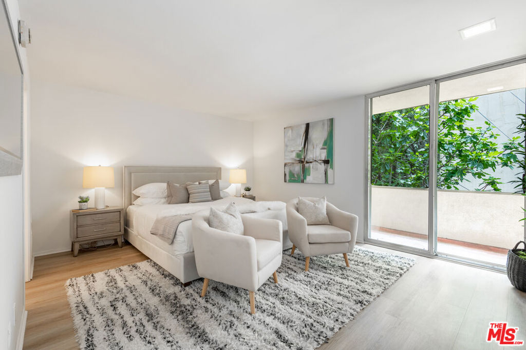 Welcome to Villa Montana-a coveted Mid-Century updated building steps from the finest shops and restaurants on San Vicente and truly the ideal location. This recently upgraded spacious 1 br is a quiet rear corner unit in this coveted courtyard building with pool, gym and sauna. The ideal floor plan offers a gracious entry, recently installed engineered light Oak floors, plantation shutters & a split living/office area anchored by a wood burning gas fireplace with travertine mantel wall. A galley kitchen features a new dishwasher, Viking oven & abundant storage. Dual sink bath en-suite bath with tub/shower combo. A 35-ft long covered balcony is accessed through walls of glass from the bedroom & living/dining areas offering the ideal alfresco retreat for morning coffee or evening cocktails. The gated parking garage space is directly adjacent to the door accessing the elevator lobby. An additional secured storage area in the garage is included. This unit is ready to move in and enjoy all that the Brentwood lifestyle has to offer.