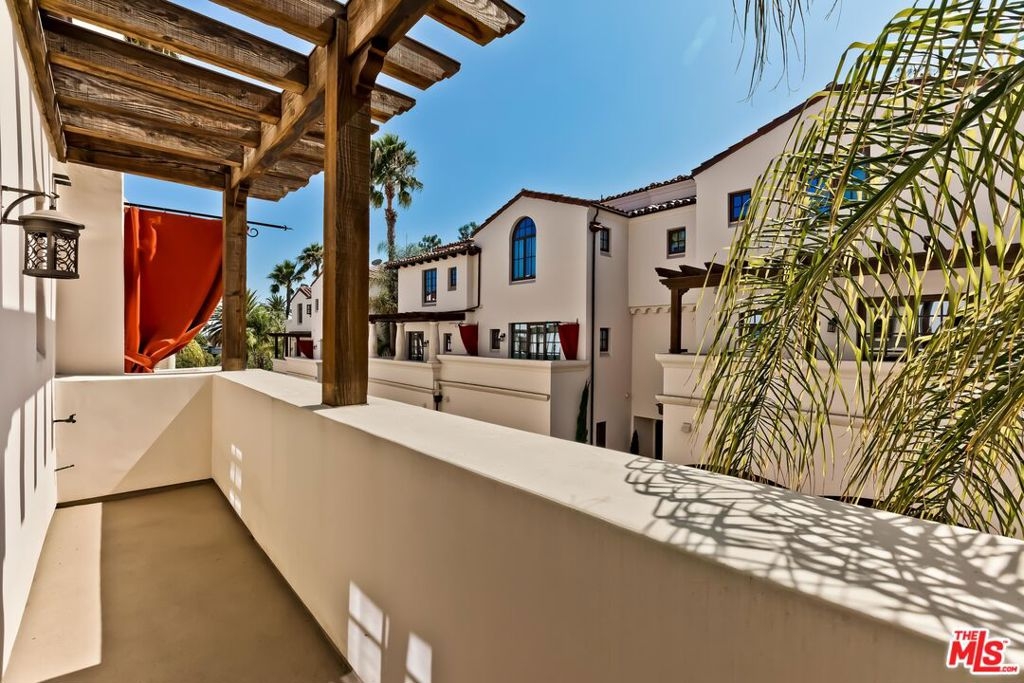 The one you've been waiting for! Classic Santa Barbara Revival in the coveted Las Ventanas gated community. Best location! Corner multi-level unit has a spectacular spiral staircase offering privacy reminiscent of NY Brownstone. The stunning interiors offer rich finishes including hand scraped maple floors, artistic stonework, and carved stone sink. 15 ceilings and multiple French doors provides warm natural light perfect for artwork. Enjoy a full Viking kitchen, 2 Fireplaces, Patio with built-in BBQ, and 3 Balconies. 3 Bedrooms plus Den/Media room, and 3.5 Baths. Three TV's, Washer & Dryer, Custom built Dry Bar, and Custom built Book Cases are included. Located in the heart of Brentwood, close to shops, restaurants, parks, and a terrific farmers market. A true urban sanctuary! Attached 2 car garage, Pet friendly, EQ Insurance, and Brentwood Award Winning schools.