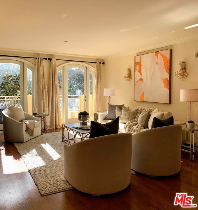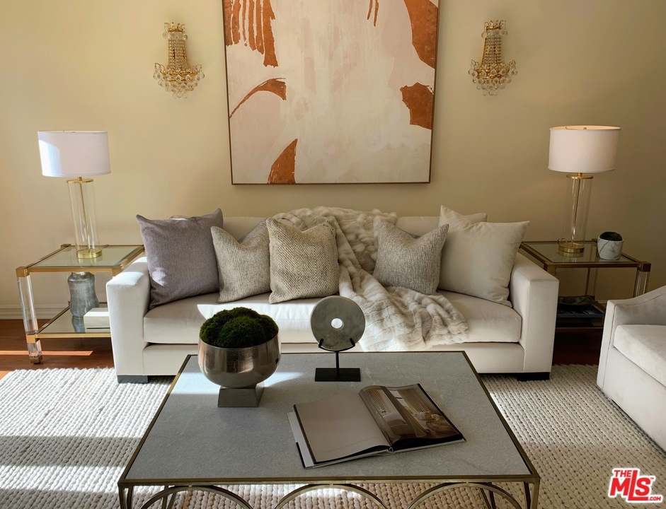 Total luxury retreat living at this spacious two bedroom, two bath @ The Vizcaya in Brentwood. Perfect unit single level corner location with much sun exposure. Light & bright with wrap-around balconies from the dining room, main bedroom & living room. Granite counters, wood floors, washer & dryer in the unit..... Two en-suite bedrooms. Plus den with fireplace. Best Brentwood location, close to shops, fine restaurants and much more..... Newer building with 2 parking spaces for parking for guests. It truly feels like a home. Easy to show.