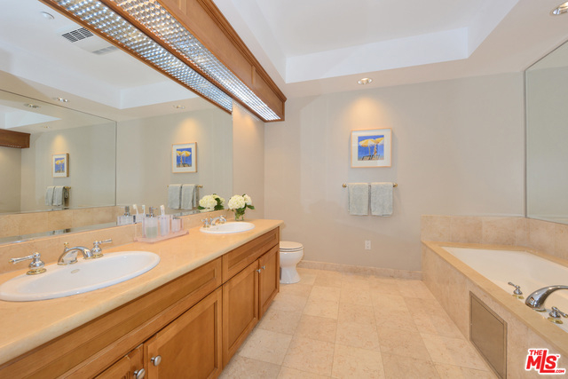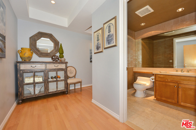 Bright & beautiful 3 bedroom single-level condo in this prime Brentwood neighborhood. Front facing corner unit with private patio, breezes, and view overlooking gorgeous purple flowered Jacaranda trees. Meticulously maintained with immense pride of ownership. Enter to a large foyer with powder room, crown and baseboard molding throughout, recessed lights, wood floors, and very few common walls. High-end kitchen with built-in pantry, expansive open living room/dining room with gas fireplace, two guest bedrooms, full hall guest bathroom, and brand new LG washer & dryer. Oversized master bedroom has walk in closet, en suite bathroom, and its own gas fireplace. Great condo for entertaining. Small clean building, family friendly, 7 guest parking spots, and storage. Built in 2000. Walking distance to Amandine, Bar Food, Bristol Farms, CVS, LiteratiCaf, Hara Sushi, Ralphs, Montana Ave, San Vicente, and more!