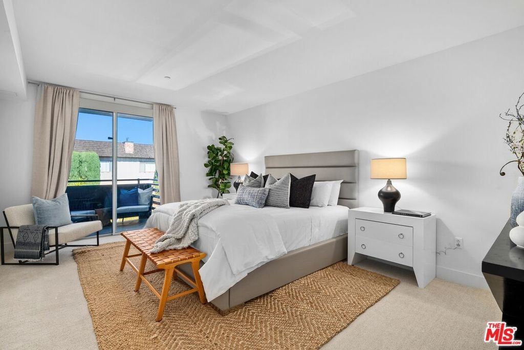 Beautiful Corner Unit, 3 Bedroom + 3 Bathroom With Great Natural Light! Located in Prime Brentwood this home is one of the few corner units in the building. When you walk into the living room with its high ceilings, fireplace and wood floors, it becomes clear that this is a true luxury condominium. The gourmet kitchen offers stainless steel appliances, Viking Range/Oven, Viking Range Hood, Viking Dishwasher, topped off by a brand new refrigerator, Grohe fixtures, and an open breakfast bar. You'll love the quartz countertops, Nest thermostat, Full size washer/dryer and custom oak cabinets too! The open floor plan has natural light from every angle and there are multiple balconies. Two of the bedrooms have en-suite bathrooms, and the third bedroom and bathroom are ideal for guests or a dedicated office. The primary suite has a private balcony, walk-in closet, dual vanities, and large soaking tub. The amenities include, secure entrance, tasteful lobby, gated parking with additional guest parking, and a sunny community rooftop deck. You will enjoy the walkability to the Brentwood Farmers Market and San Vicente shops & dining.