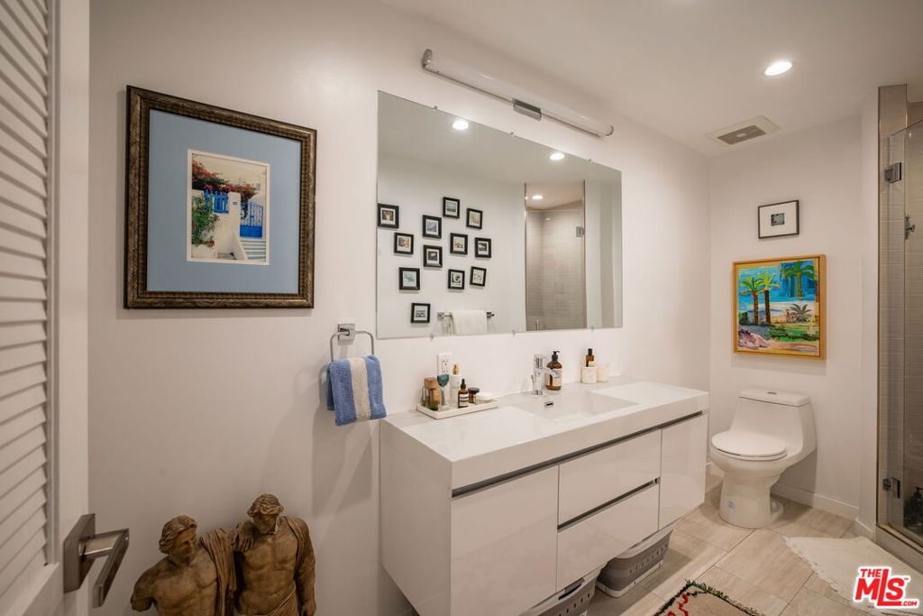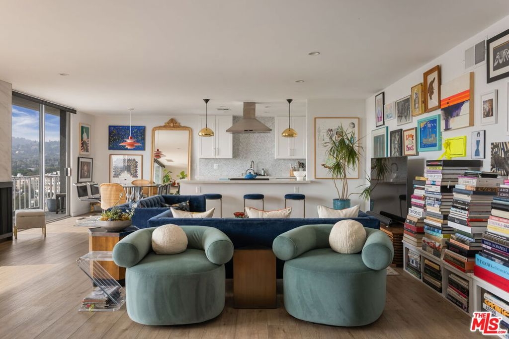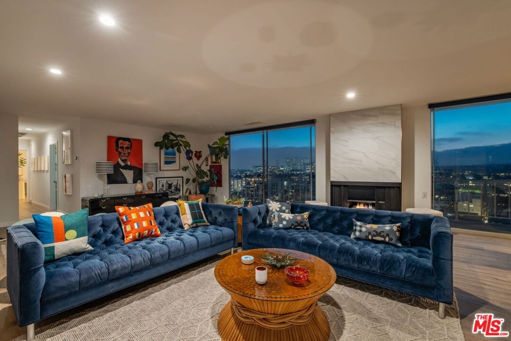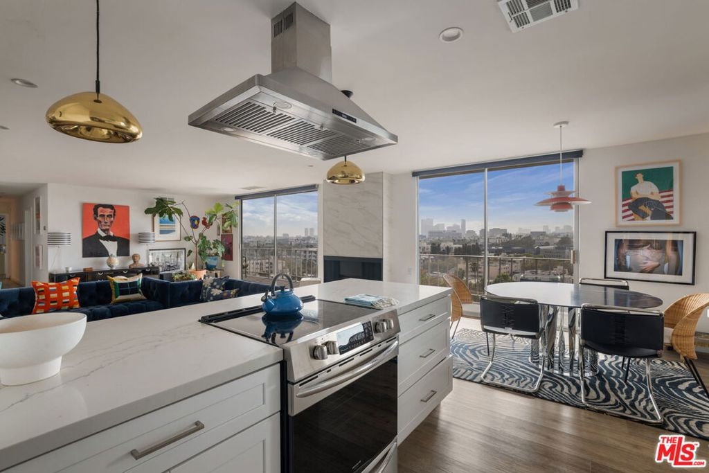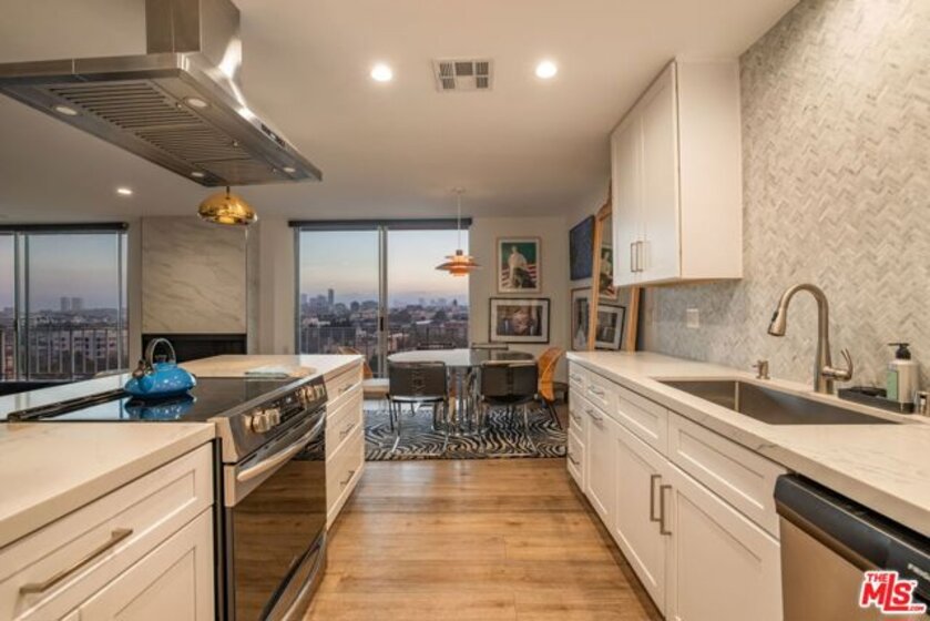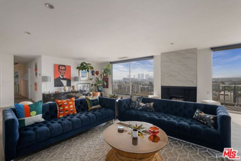Penthouse Twelve. There is only one 12. Rarely offered and highly coveted, this top-floor residence crowns one of the most recognized full-service buildings on the Doheny corridor. Reimagined with a refined, contemporary sensibility, Penthouse Twelve delivers a level of finish, light, and privacy seldom available in this location.Western exposures frame sweeping, unobstructed vistaslayered mountain silhouettes, watercolor sunsets, and the evolving glow of Los Angeles at nightvisible from every room. The open-concept living and dining spaces are expansive yet intentional, designed for both large-scale entertaining and quiet daily living. Clean architectural lines, curated materials, and a restrained palette create a timeless interior that prioritizes volume, proportion, and natural light.The two-bedroom layout is thoughtfully separated, each with dedicated baths, complemented by a guest powder room. One bedroom has a full walk in closet, and there are ample additional closets throughout for storage.Residents enjoy the full-service lifestyle that defines 100 S. Doheny: 24-hour security and concierge, a resort-style pool, tennis court, fitness center, and private resident spacesall moments from Beverly Hills, the Sunset Strip, and the city's most established retail and dining destinations.Two side-by-side parking spaces and additional storage complete the offering.