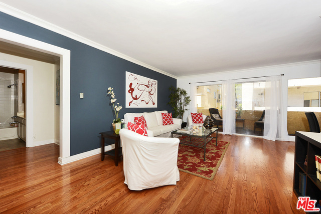 Charming one bedroom with natural light, spacious layout, and patio in the heart of Brentwood. Wood floors throughout, second floor unit, and 1 car parking. Low Hoa dues include earthquake insurance.