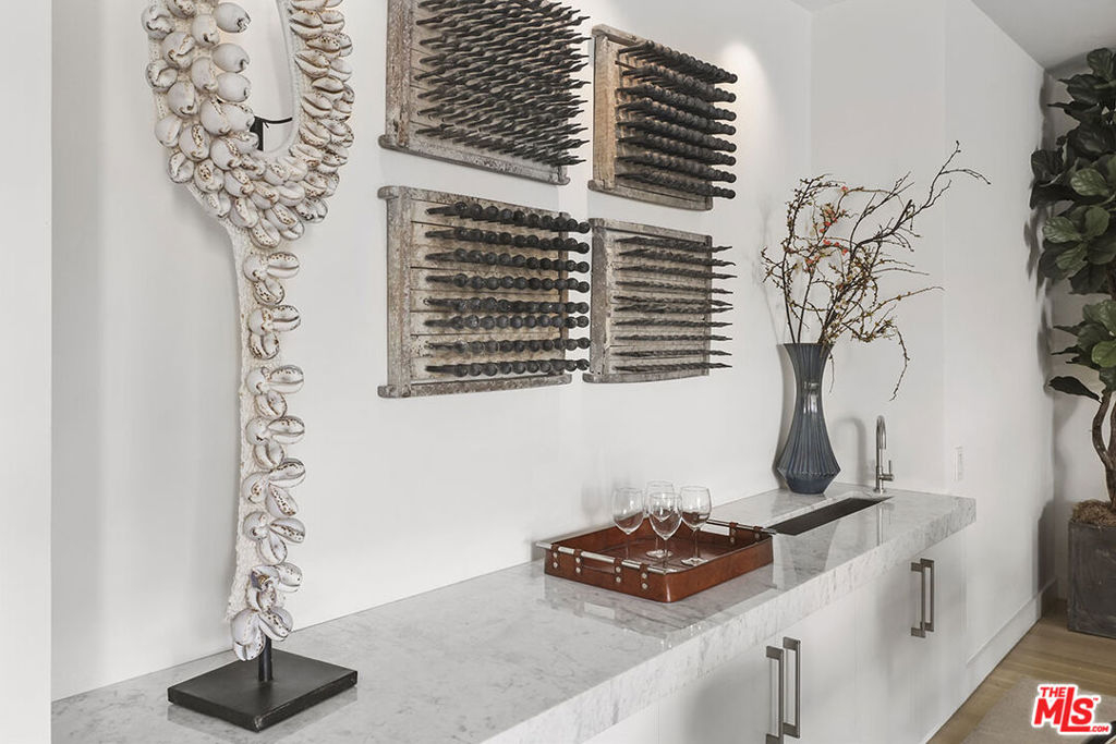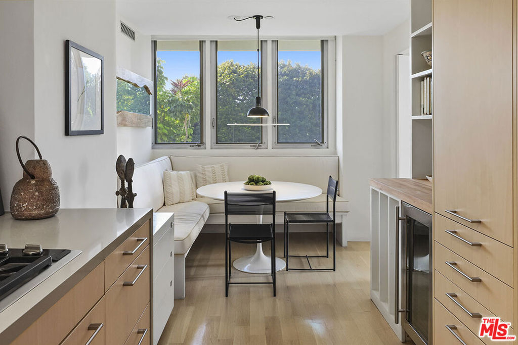 An exceptionally light, bright and airy unit in the incomparable Wilshire Terrace co-op. This approx. 2,000-square-foot unit is ideally located on the north side, overlooking peaceful gardens, fountain, and landscaped grounds.The open-plan 2 bedroom, 2.5 bath unit has been renovated with plank hardwood floors, distinctive light fixtures. Large walls suited for art with an open flow from living area, dining area, and media room/den with gas fireplace. Sliding Fleetwood doors lead to central two-story patio from living room, den and office, all part of the building's distinctive design that offers ample space for outdoor entertaining. The second bedroom has been opened to the primary suite, creating an adjacent office/ sitting room closed off with pocket doors. Can easily be converted back to a separate bedroom. Fitted Siematic kitchen is equipped with Sub-Zero fridge and Miele ovens. Separate laundry room with half bath. The sale of the property includes unit 2C and the housekeeper's unit MR115. Units are to be sold together, both in "As-Is" condition. Some furniture may be included in the sale.