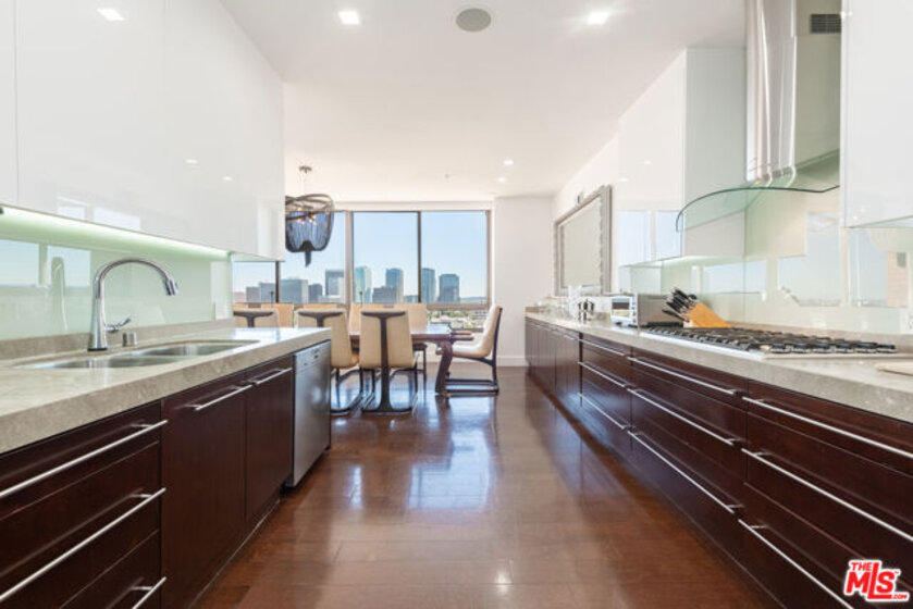 Recently updated, spacious, and bright 2 bedroom, den, bar & 2.5 bath Southeast CORNER unit in a 5-star, full-service building with panoramic unobstructed DTLA to OCEAN views. 2 ensuite bedrooms and a private terrace that opens up from the living room, bar, and den to stunning views. Formal entry, chef's kitchen, sound system throughout, and Nest climate control. The building's updated, full-service amenities include 24/7 concierge & valet, gym, pool, spa, conference room, and charging stations for electric vehicles. Located minutes away from UCLA, every amenity imaginable, including fine dining & shopping in Century City, Westwood, and Beverly Hills. Other features include a large storage room and 2 parking spaces.