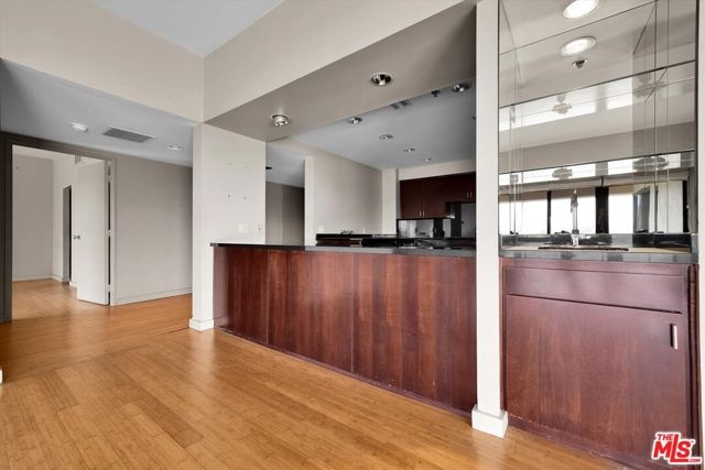 Located along the prestigious Wilshire Corridor, this rear-facing 2-bedroom, 2-bathroom condo on the 9th floor offers sweeping mountain views and abundant natural light. The spacious open-concept living and dining area features a wet bar and sliding glass doors leading to a generously sized balcony perfect for relaxing or entertaining. The bright kitchen includes a convenient under-counter washer and dryer. This full-service, 24-hour building provides top-tier amenities including valet, concierge, swimming pool and spa, fitness center, library, and community room. Two parking spaces are included. Ideally situated near trending shopping, dining, and entertainment options, this residence offers exceptional convenience and elevated urban living. Bring your design ideas and your vision, this one's ready for you. The property is subject to California Civil Code Section 2429p (First Look program) for the first 30 days of marketing. Eligible owner-user buyer offers will be considered within the first 30 days of marketing, all offers thereafter. Owner occupants are those buyers that will occupy the property as their principal residence within 60 days of close and will maintain their occupancy for at least 1 year. Buyer to sign an "Affidavit of Owner-Occupancy" with contract. An investor, trust, vacation or part-time residence, or purchasing for another person will be considered an investor and are not eligible for First Look. Investor bids are negotiated on day 31 of listing.
