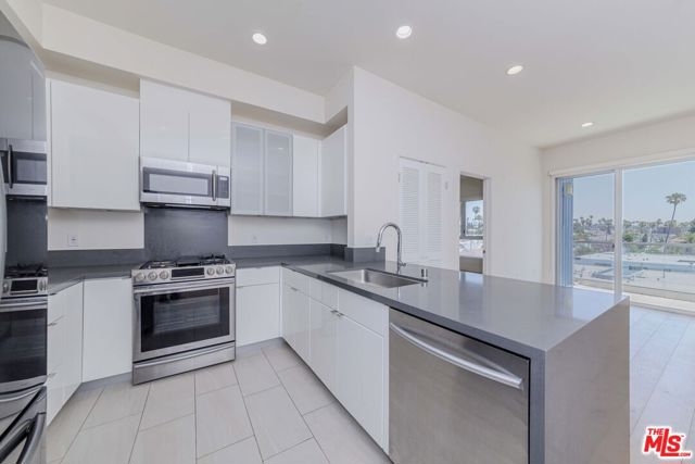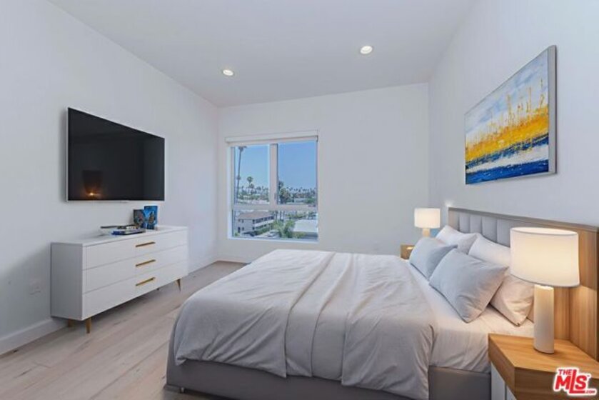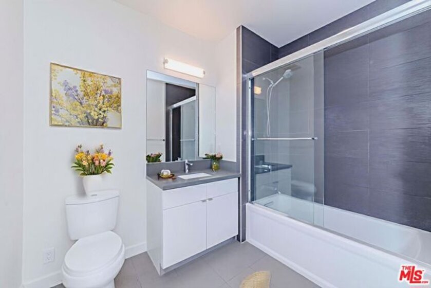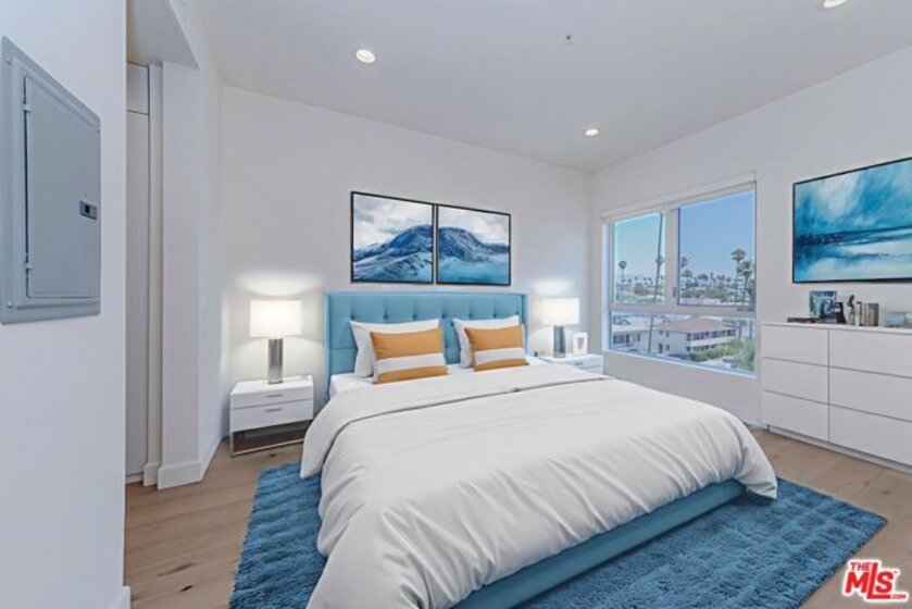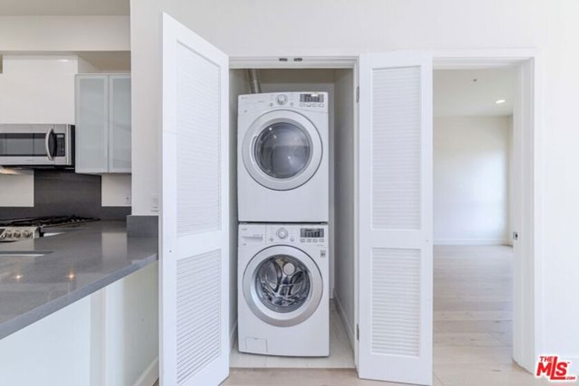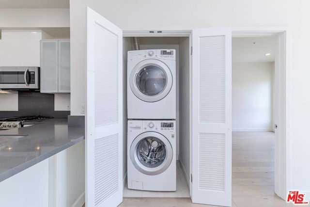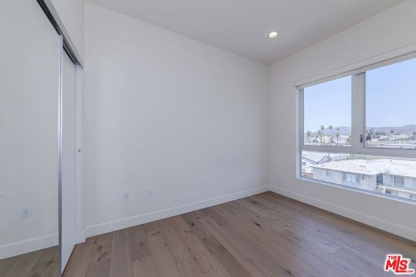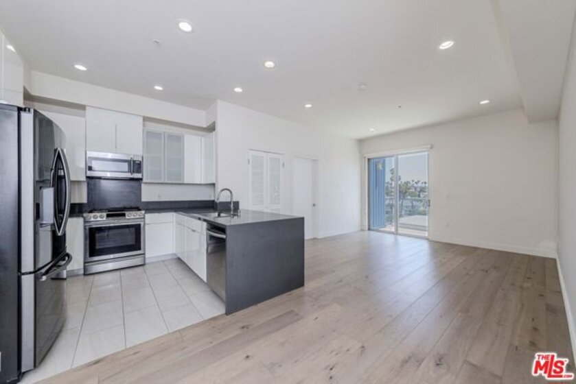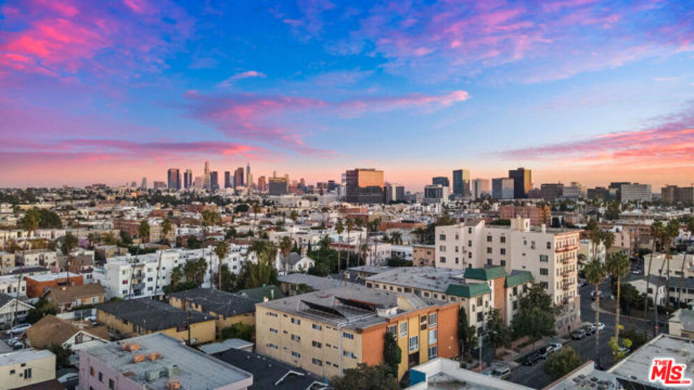 A contemporary oasis featuring sleek wood flooring, fresh paint, and elegant recessed lighting, this top-floor northeast corner unit offers high ceilings and breathtaking panoramic views of the DTLA skyline and Hollywood Hills. With no shared walls, it ensures unmatched privacy. The end unit also provides generous extra storage conveniently located right next to the residence and a bright, open layout.The modern kitchen boasts white cabinetry, stainless steel appliances, a gas range, bar seating, and abundant counter space. It seamlessly connects to the dining area and living room, which opens to a private balcony through a glass doorperfect for enjoying the views of palm trees and L.A.Built in 2017, Mari Villa offers two dedicated gated parking spaces equipped with a private EV charger connected to the unit's individual meter. Side By Side Parking. The charger is compatible with both NACS (Tesla) and standard non-Tesla connection incredibly valuable and rare feature in Koreatown, making it a huge asset for any EV owner. Water, gas, and electricity are all individually metered, giving residents full control over their utilities. The building also provides access to eight gated guest spots, and the HOA covers cable TV, high-speed internet, nightly security, trash, and building maintenance for a worry-free lifestyle. Ideally situated just minutes from Larchmont Village, Hancock Park, Hollywood, Downtown LA, and only a short drive to the 101 freeway, this refined residence embodies sophisticated living in the heart of Koreatown.