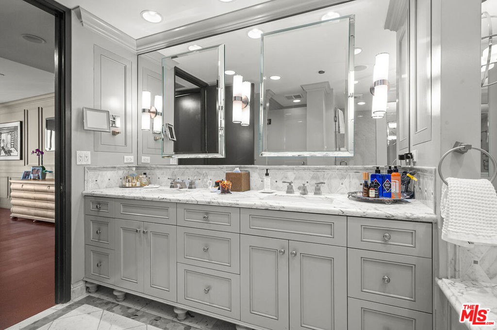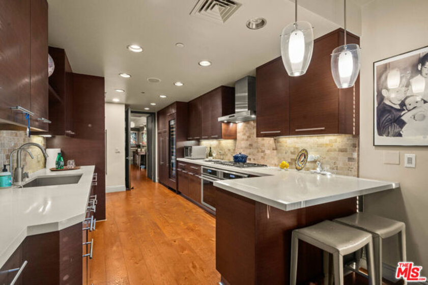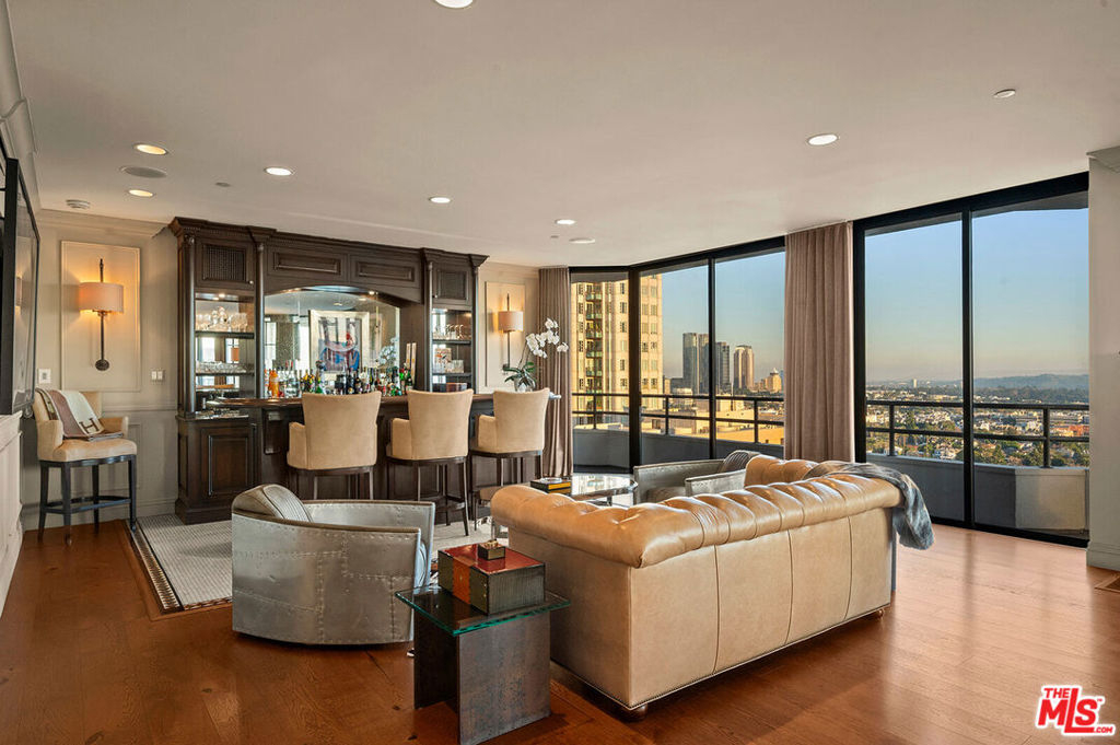 A rare chance to own this exceptional fully renovated 2Bed. + Den Residence with commanding panoramic views perched high above the iconic Wilshire House, one of LA's premier & most reputable and exclusive full-service high-rise buildings on Wilshire Corridor. A large gallery foyer with great Wall space for art leads to a bright & spacious living room with designer fireplace, a superb dining room & an open den adorned with a custom-built bar complementing the space for perfect flow & entertaining. The state-of-the art kitchen has custom built cabinetry with plenty of counter space, top of the line appliances including wine storage fridge and a sunny breakfast area. The sumptuous primary suite offers two generously sized walk-in closets & a luxury marble bathroom. Additionally, the unit has a lovely 2nd bedroom en-suite, a powder room, extra hallway closets and a laundry area. Beautifully appointed wood flooring, custom finishes, recessed lighting, wraparound balconies & floor to ceiling windows complete this sensational condominium residence. The exclusive Wilshire House, Class "A" Full-Service condominium high-rise conceived to create an environment fulfilling the needs & complimenting the lifestyle of estate residents while providing the utmost security, privacy and quality. By Appointment.