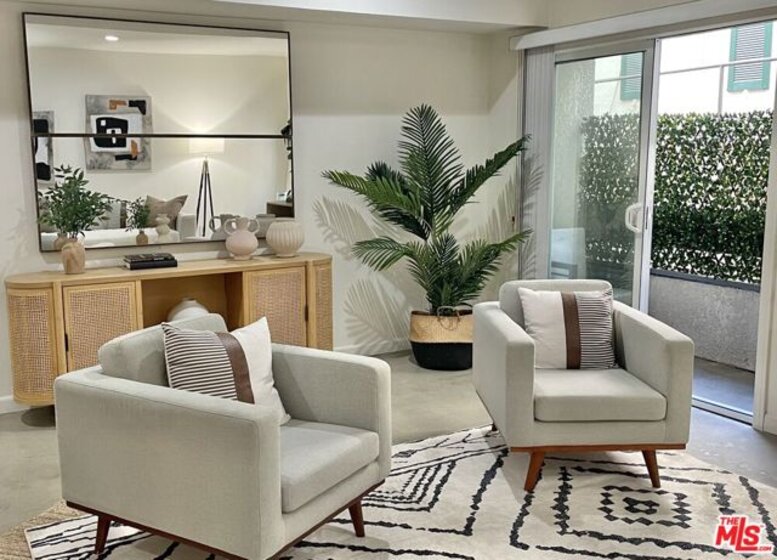 Super chic contemporary finished 2 bed/2.5 bath townhouse style condo in smaller 14-unit French Chateau Style Condo Complex on desired Ashton Blvd. , just South of Wilshire! Open floor plan that includes entry with engineered hardwood flooring, closet and powder room opening to spacious living room with contemporary concrete floors sliding door to covered balcony, dining room with wet bar and open kitchen with wrap-around breakfast bar, quartz countertops, stainless steel appliances including gas range/oven and built-in microwave, pantry cabinet with pull out drawers. Full laundry room with lots of room for storage and built-in shelving. Upstairs includes 2 bedrooms/2 bathrooms including oversized spacious primary suite with large walk-in closet and sliding door to balcony. Totally remodeled primary bathroom with tile and quartz finishes including separate bath and shower, floating contemporary cabinet with 2 sinks. 2nd bedroom is filled with natural light and large closet with updated full bathroom in hallway. Pets ok, 2 secured tandem parking, guest parking and extra storage. Ideal proximity to UCLA and Westwood Village retail and restaurants, Westfield Century City Mall, 405 and 10 Fwy access and Beverly Hills. Fairburn Elementary School. Move-in ready!
