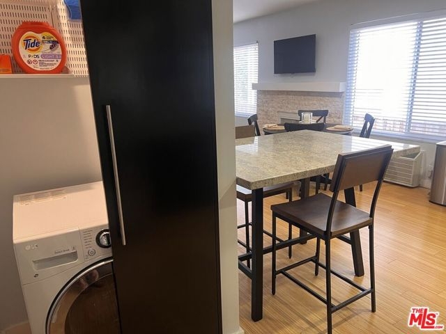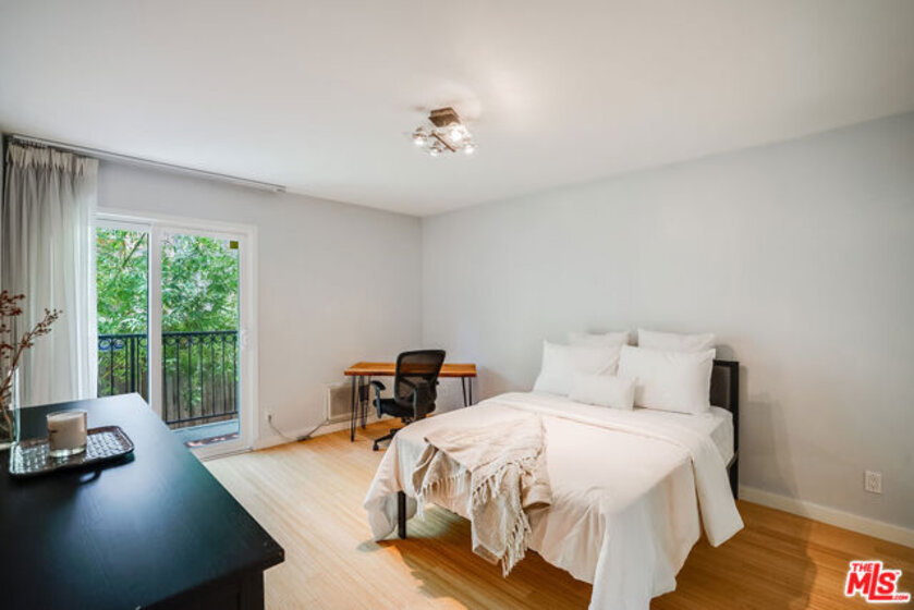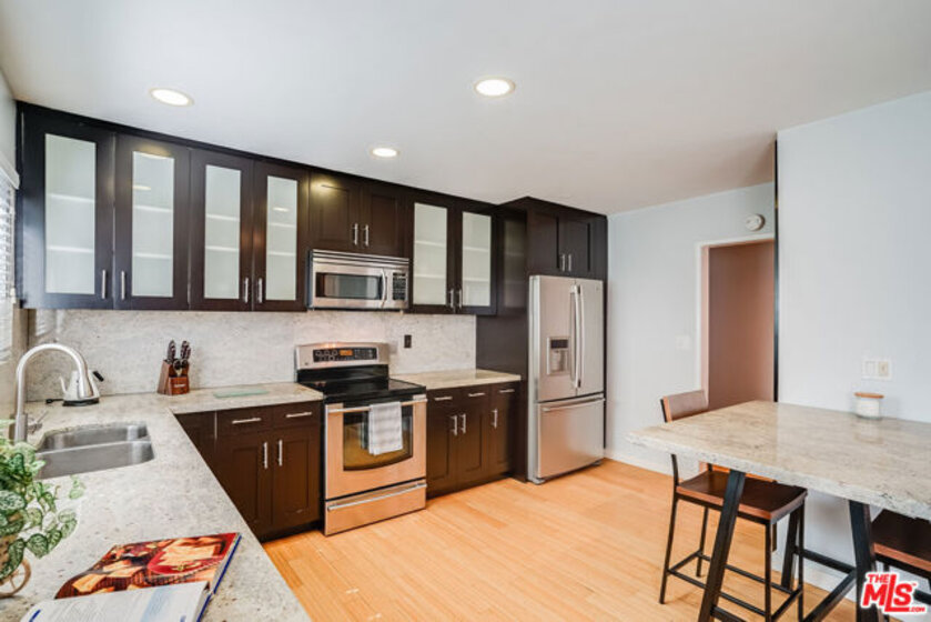 Extremely spacious and well-appointed 1 bed, 1.5 bath on a quiet Prime Westwood street. Don't be fooled by the 1-bedroom; there is more square footage here than most 2 bedrooms. Bamboo flooring throughout, updated primary bathroom, granite and stainless appliances in the kitchen. Tons of closet space. Extremely low HOA's in this small, well-run building. 1 car gated, secure parking as well as storage in the garage, laundry inside the unit. Move right in! And the building is absolutely charming! You won't want to miss this one. Come see for yourself; you won't be disappointed.