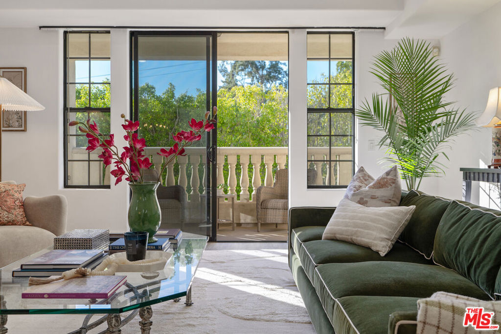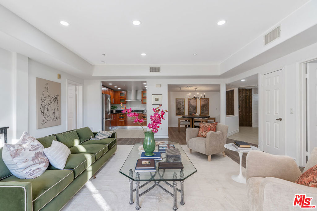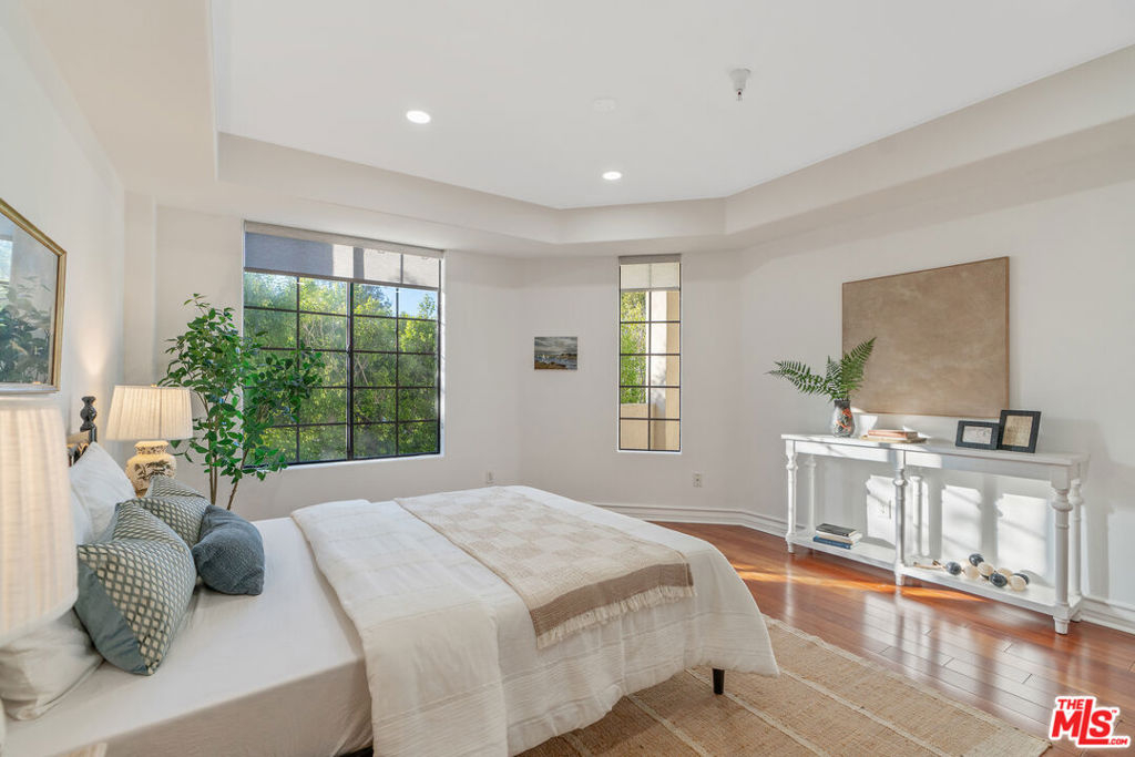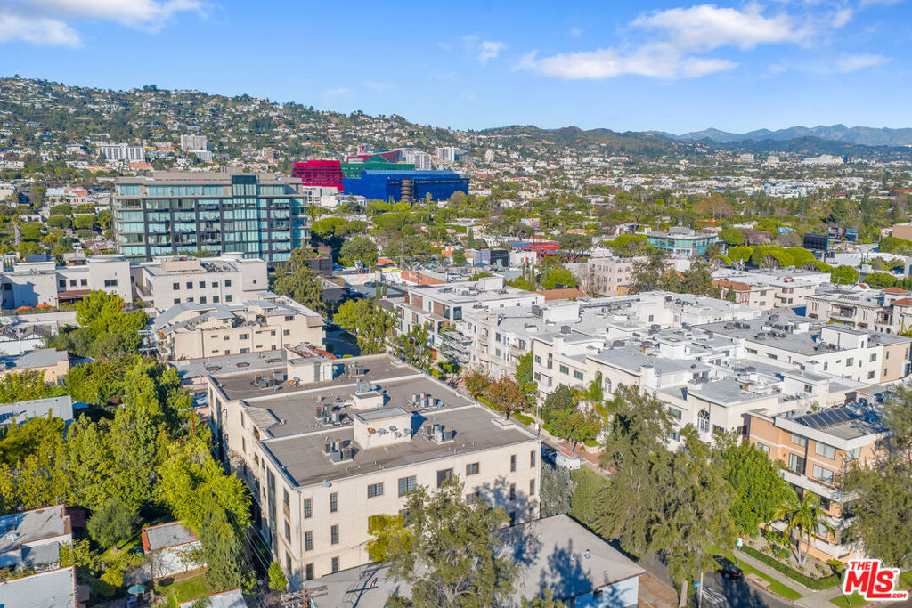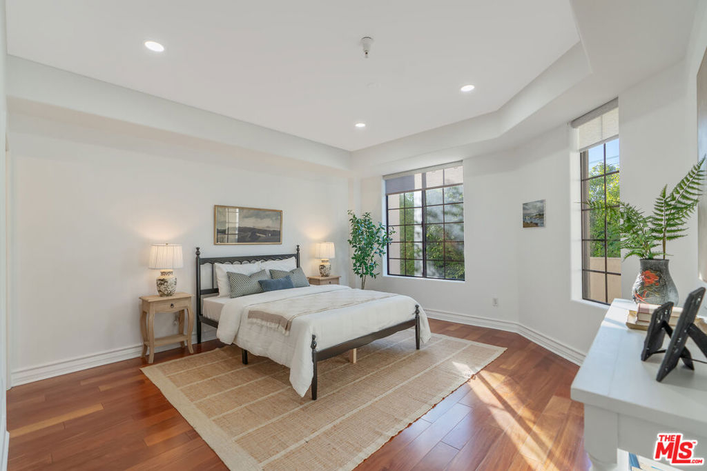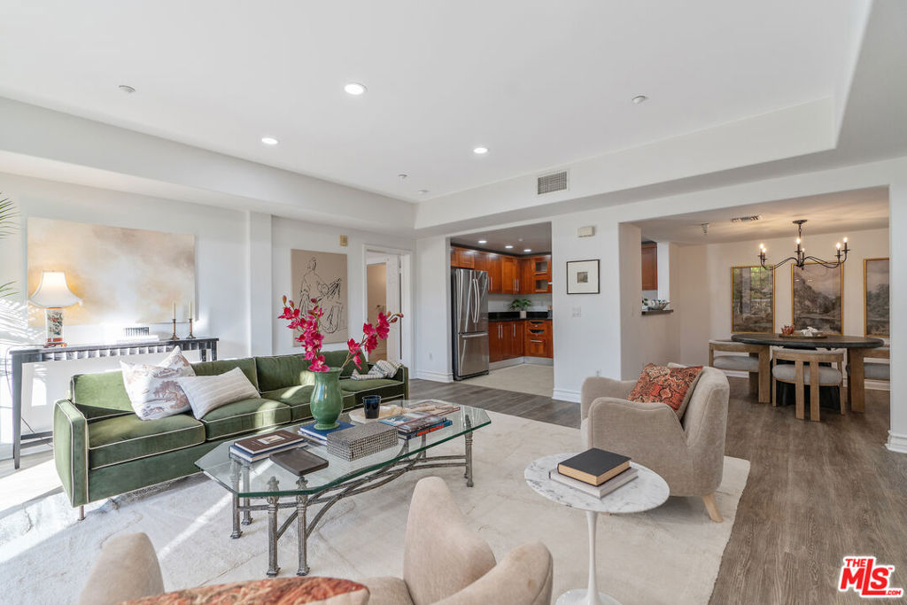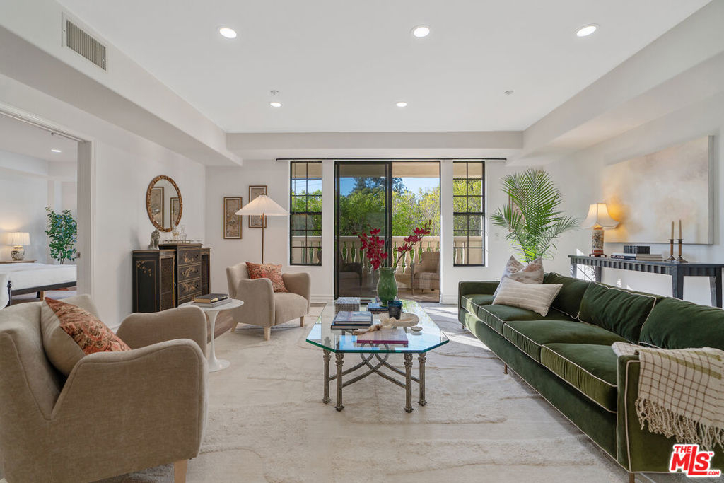 Beverly Hills/West Hollywood adjacent residence just off of 3rd St and Robertson Blvd, combining a prime central location with elevated living, close to Cedars-Sinai Medical Center. A secured entry opens to a grand lobby with elevator access, leading to a thoughtfully designed home offering approximately 1,660 square feet of elegant living space. High ceilings and an open layout create a bright, airy atmosphere ideal for both everyday living and entertaining. A welcoming entry flows into a dedicated dining area and expansive living room, which opens to a private balcony framed by leafy trees that provide privacy while allowing natural light to filter through. The chef's kitchen is equipped with stone countertops, Miele, BOSCH, and Samsung appliances, and ample workspace, perfectly suited for cooking and hosting. The home features two spacious en-suite bedrooms, positioned on opposite sides of the residence for optimal privacy. Enjoy the convenience of a powder room and in-unit laundry. Additional highlights include wood flooring, recessed lighting, and a well-balanced floor plan designed for modern living. Parking includes two-car tandem parking in a gated community garage, along with ample guest parking. Residents also enjoy access to HOA amenities, including a clubhouse, outdoor patio, and sauna, enhancing the overall living experience. Landscaped grounds and controlled building access create a calm, refined urban environment. Enjoy the vibrant energy of Los Angeles with acclaimed shops and dining destinations nearby along 3rd Street, Robertson Blvd, Beverly Blvd, and Melrose Blvd, including Catch LA, The Henry, Great White, Gracias Madre, A.O.C., The Ivy, Joan's on Third, Alfred Coffee, Coffee Commissary, and Urth Caffe all contributing to an exceptional lifestyle in one of Los Angeles' most sought-after neighborhoods.