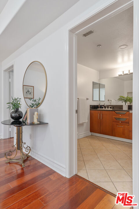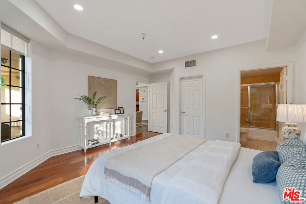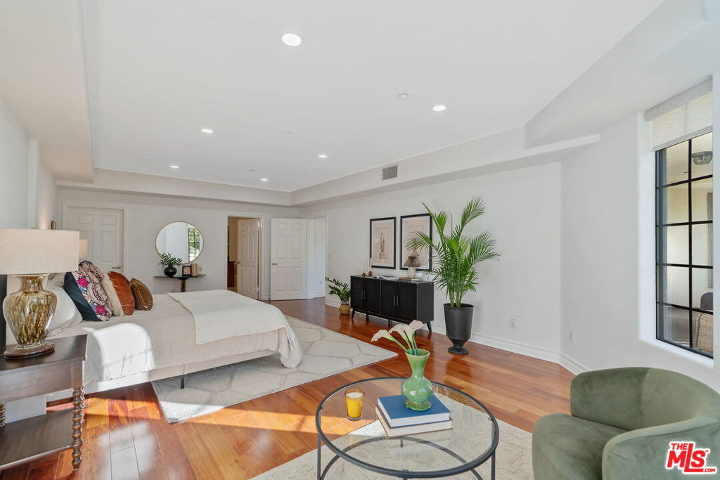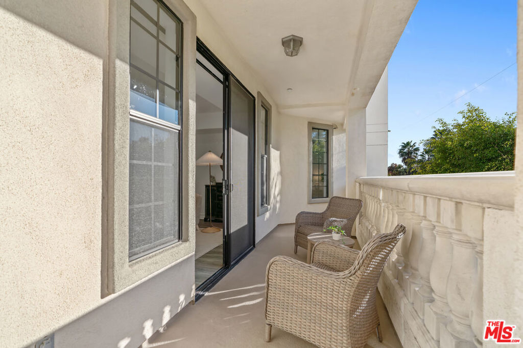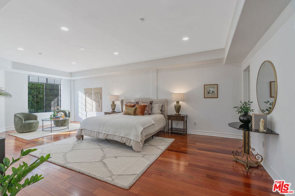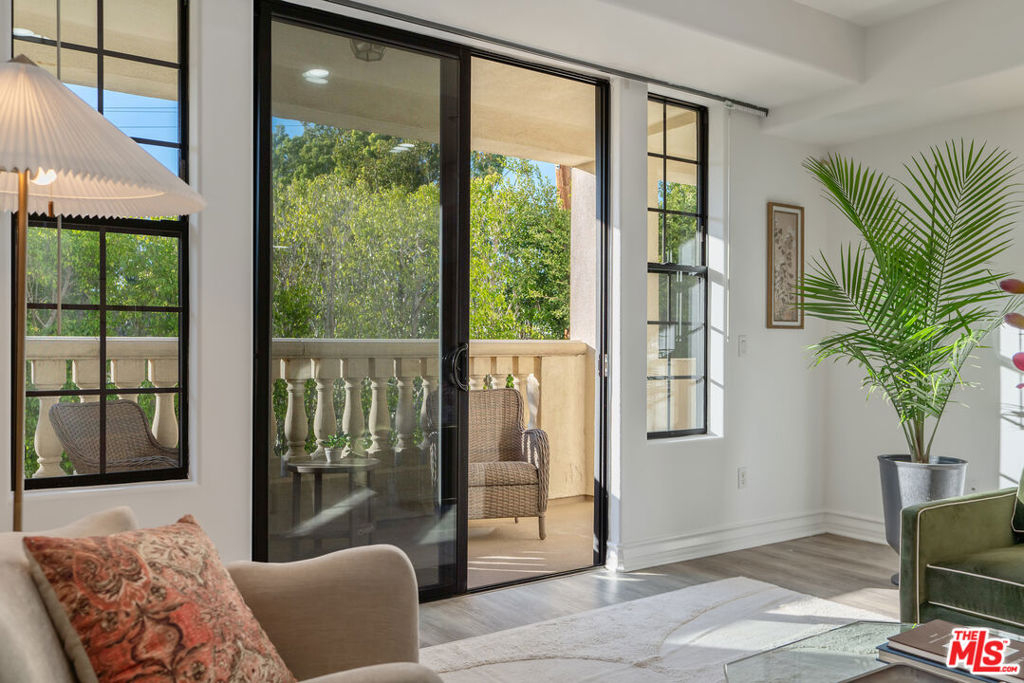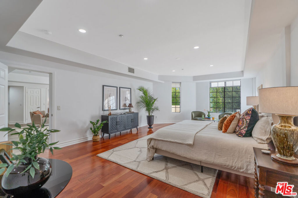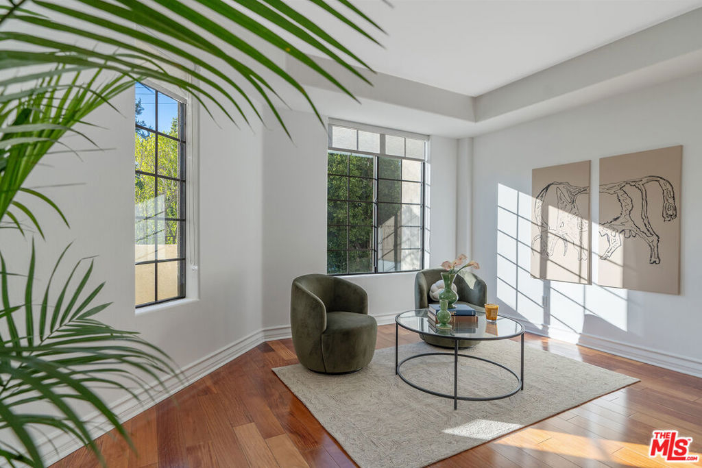 Beverly Hills/West Hollywood adjacent residence just off of 3rd St and Robertson Blvd, combining a prime central location with elevated living, close to Cedars-Sinai Medical Center. A secured entry opens to a grand lobby with elevator access, leading to a thoughtfully designed home offering approximately 1,660 square feet of elegant living space. High ceilings and an open layout create a bright, airy atmosphere ideal for both everyday living and entertaining. A welcoming entry flows into a dedicated dining area and expansive living room, which opens to a private balcony framed by leafy trees that provide privacy while allowing natural light to filter through. The chef's kitchen is equipped with stone countertops, Miele, BOSCH, and Samsung appliances, and ample workspace, perfectly suited for cooking and hosting. The home features two spacious en-suite bedrooms, positioned on opposite sides of the residence for optimal privacy. Enjoy the convenience of a powder room and in-unit laundry. Additional highlights include wood flooring, recessed lighting, and a well-balanced floor plan designed for modern living. Parking includes two-car tandem parking in a gated community garage, along with ample guest parking. Residents also enjoy access to HOA amenities, including a clubhouse, outdoor patio, and sauna, enhancing the overall living experience. Landscaped grounds and controlled building access create a calm, refined urban environment. Enjoy the vibrant energy of Los Angeles with acclaimed shops and dining destinations nearby along 3rd Street, Robertson Blvd, Beverly Blvd, and Melrose Blvd, including Catch LA, The Henry, Great White, Gracias Madre, A.O.C., The Ivy, Joan's on Third, Alfred Coffee, Coffee Commissary, and Urth Caffe all contributing to an exceptional lifestyle in one of Los Angeles' most sought-after neighborhoods.