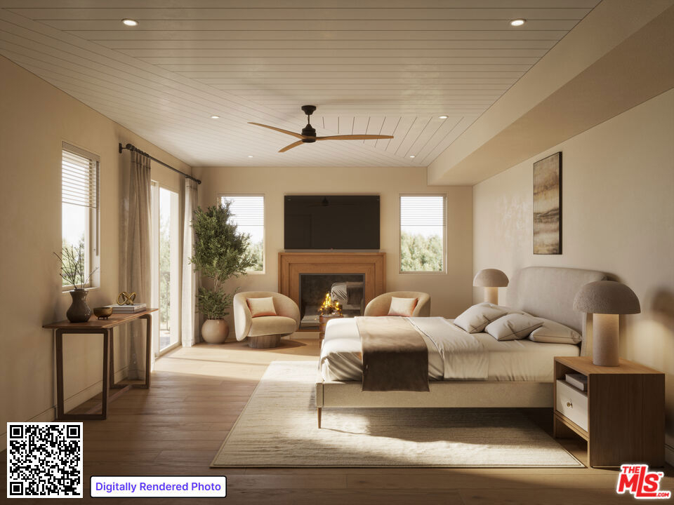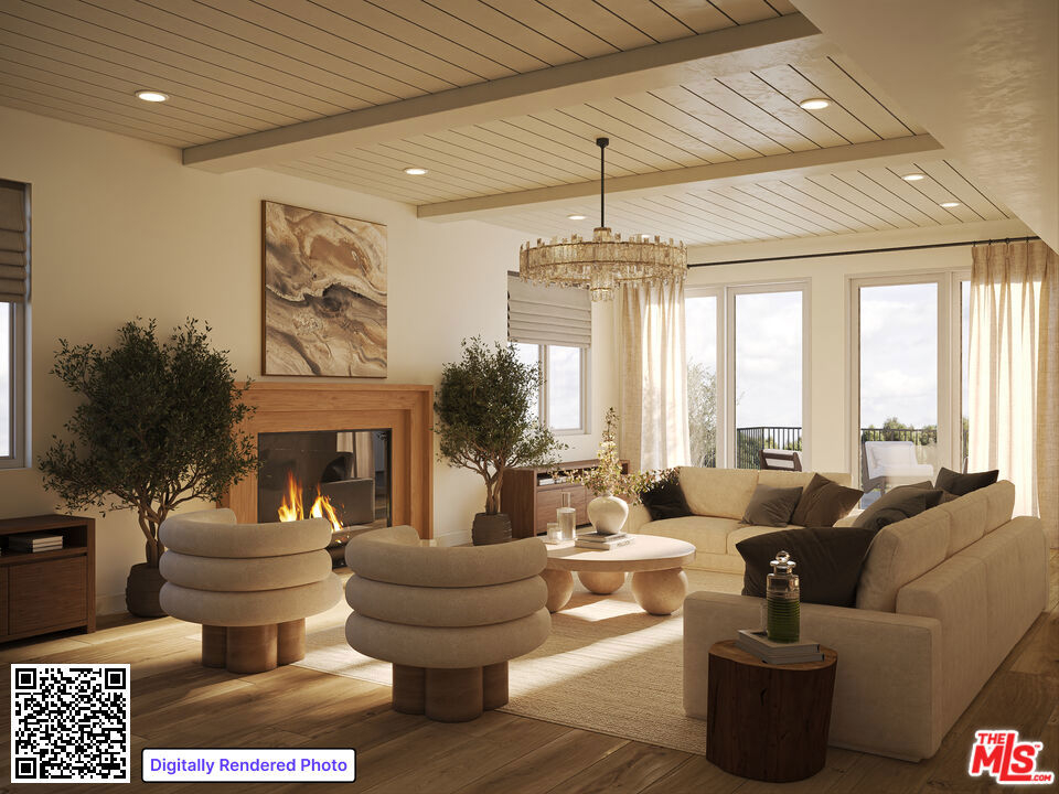 The largest residence in the building, Residence 201 at Ashton Villas, offers approximately 2,400 square feet of expansive, full-floor living with an elevator that opens directly into the unit and a dramatic great room designed for both comfort and entertaining. The space features a generous living area, an oversized dining area, and additional room for a secondary seating or lounge area - creating a true centerpiece for the home. Four fireplaces are thoughtfully placed throughout, including two in the great room, one on the private balcony, and one in the primary bedroom. As the final remaining residence offering an outdoor fireplace, it presents a truly rare opportunity. Thoughtfully designed with warm, contemporary interiors and a bright south-facing orientation, the home is filled with natural light and opens to an approximately 320-square-foot private balcony, seamlessly blending indoor and outdoor living. The chef's kitchen serves as a striking focal point, featuring a standalone flamed granite island, quartzite countertops, a walk-in pantry, custom built-ins, and premium Italian and German appliances by Bertazzoni and Liebherr. This 3-bedroom, 3.5-bath residence offers ensuite bathrooms in every bedroom, balancing comfort with elevated design. Ashton Villas is Westwood's only new construction condominium offering, an exclusive collection now limited to just three remaining residences. The building delivers a lifestyle defined by light, space, and refinement, complete with two tandem parking spaces, advanced home technology, and exceptional sound insulation through the Mielguard window system. Perfectly positioned near the Wilshire Corridor, Westwood Village, and Century City, Residence 201 represents a rare opportunity to own a full-floor home in one of Los Angeles' most desirable neighborhoods. Images are virtually rendered for illustrative purposes only and may not reflect the exact condition, finishes, or layout of the property. Actual features and details may vary.
