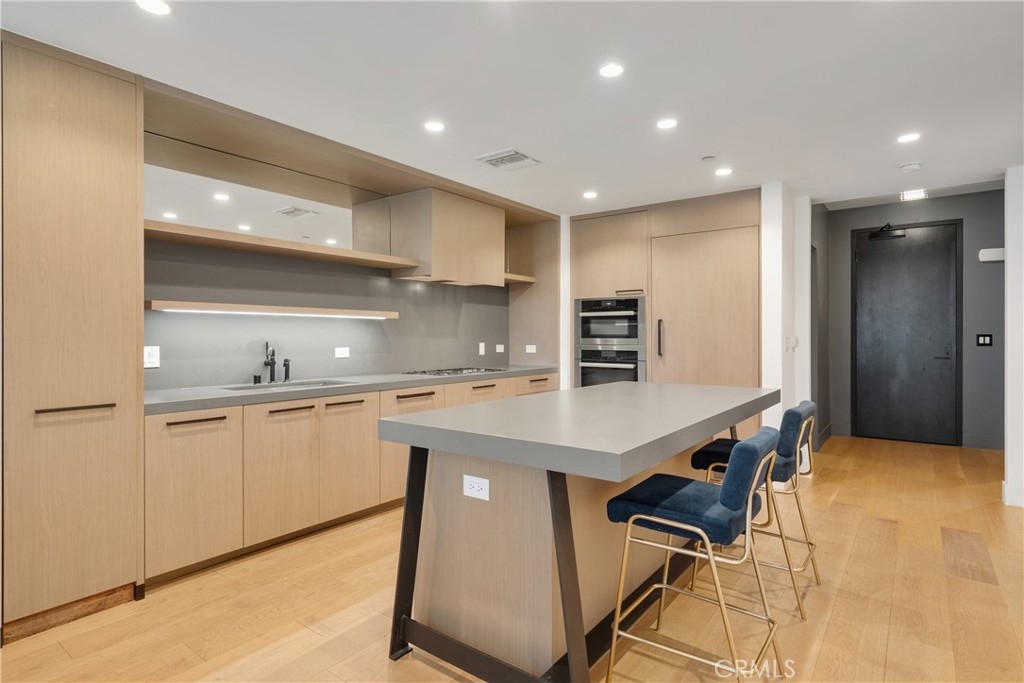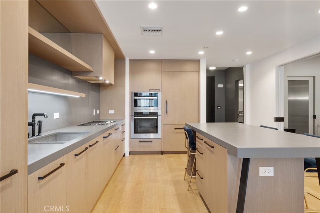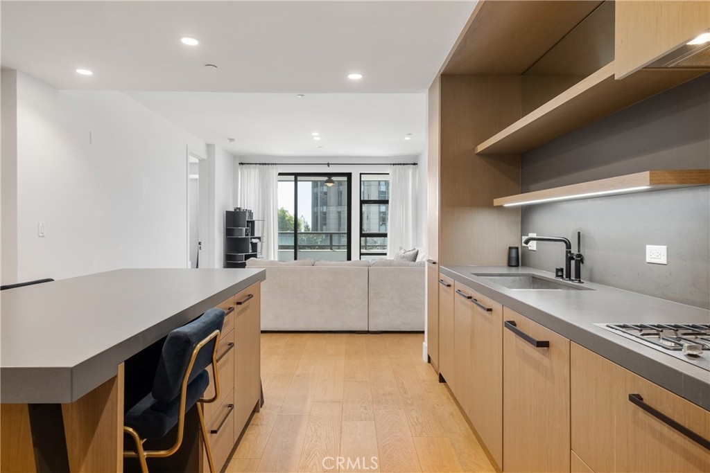 Welcome to Residence 306 at The Liddel, a stunning 1-bedroom + den, 2-bathroom home situated on the 3rd floor of this coveted Wilshire Corridor address. Capturing vibrant south-facing city views, this thoughtfully designed residence features an expansive open-concept layout with a spacious great room, private terrace, and a luxurious primary suite complete with a spa-inspired bath and walk-in closet. The gourmet kitchen is a showpiece, outfitted with Jamie Bush custom-designed cabinetry, integrated Miele appliances, and a signature kitchen island—ideal for both daily living and stylish entertaining. Elegant finishes continue throughout, including wide-plank white oak flooring, terrazzo-tiled bathrooms, and bespoke vanities. Additional conveniences include an in-unit washer and dryer, generous storage, and two assigned parking spaces. The Liddel offers a full suite of resort-style amenities, including 24/7 doorman concierge service, 24/7 valet and self-parking, EV charging stations, a state-of-the-art fitness center, club lounge, wine room, catering kitchen, and a rooftop terrace with fireplace, BBQ, and panoramic views of Westwood and the surrounding hills. Residents also enjoy access to a garden lounge and beautifully curated common spaces ideal for both relaxation and entertaining. Ideally located in the heart of Westwood, this is modern Los Angeles living at its finest.