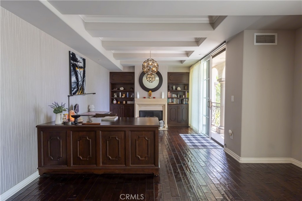 Experience refined living in this elegant 2-bedroom, 2.5-bathroom residence situated in Westwood. Located just moments from UCLA, Westwood Village, Beverly Hills, and the 405 freeway, this condo offers the perfect balance of city convenience and tranquil comfort. This bright and spacious home features oversized windows, coffered ceilings, a custom hand-painted mural, a cast stone fireplace, and a private balcony off the living area. The primary suite offers a large walk-in closet, three additional balconies, and a luxurious ensuite bath with a soaking tub and glass-enclosed shower. The second bedroom also includes its own ensuite for added privacy and comfort. Community amenities include 24-hour concierge, fully equipped gym, banquet room, and rooftop terrace with BBQ and stunning views. This is Westwood condo living at its finest—refined, well-connected, and designed for modern luxury