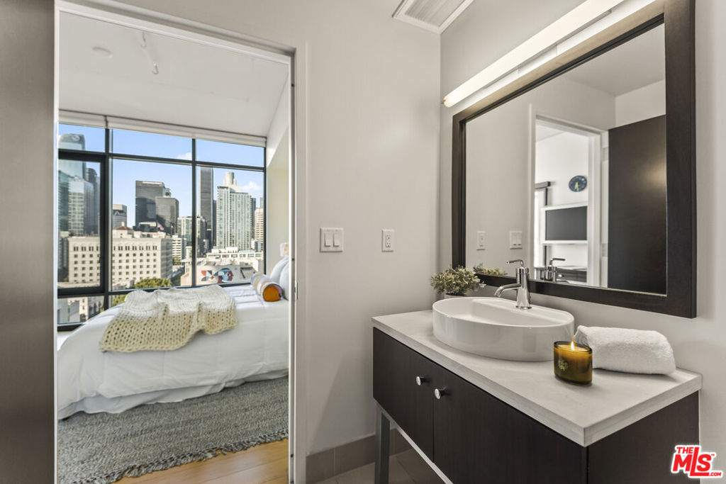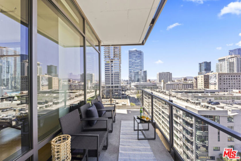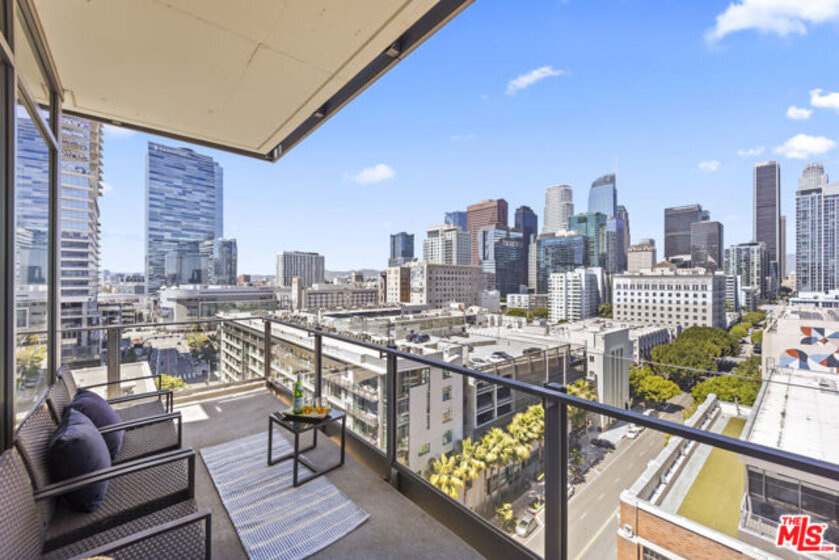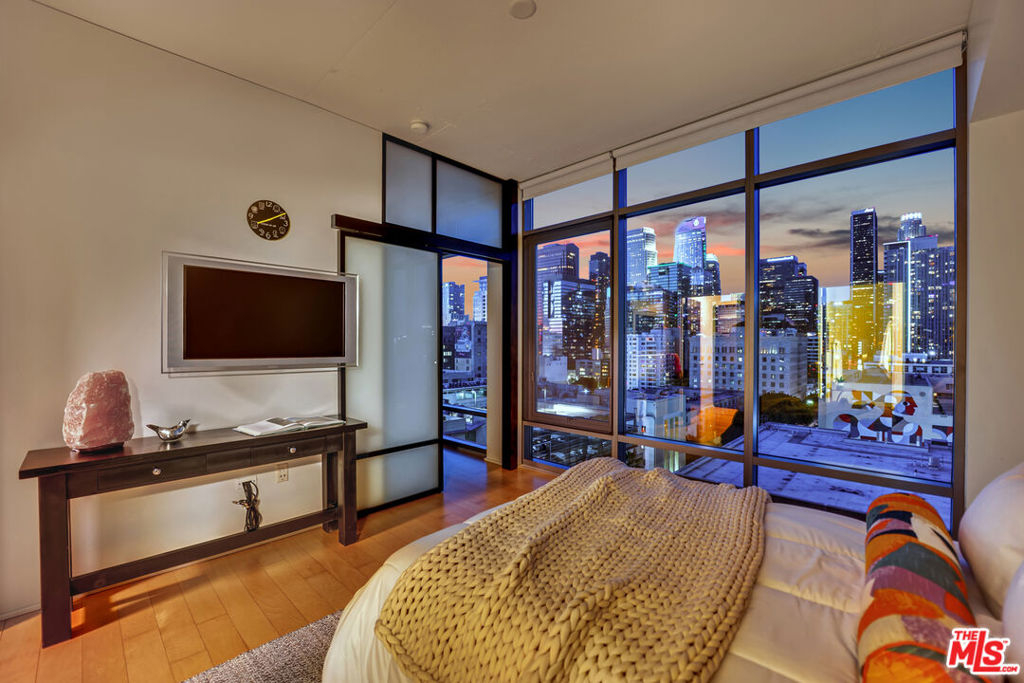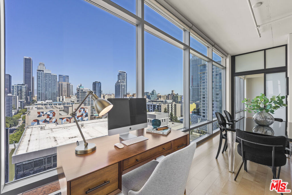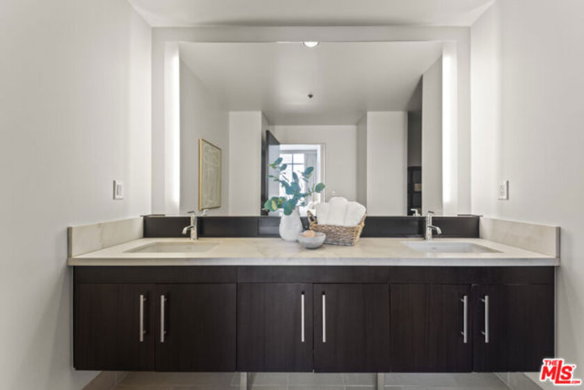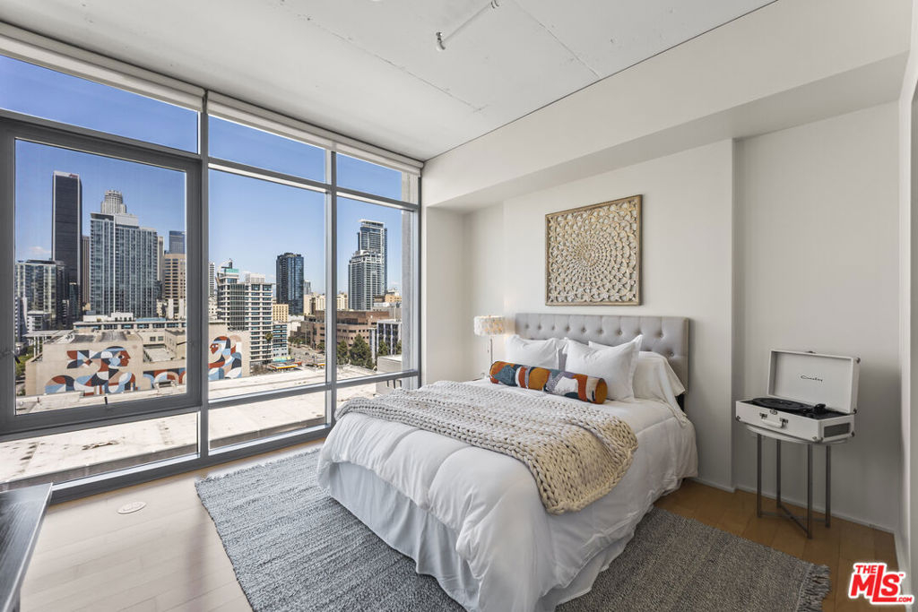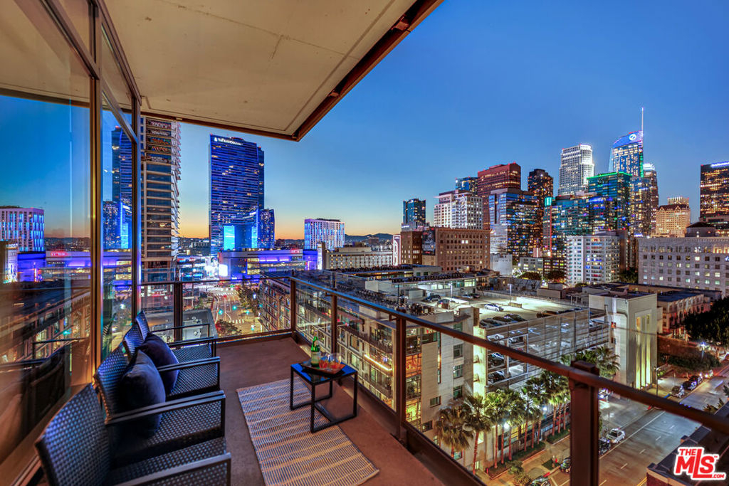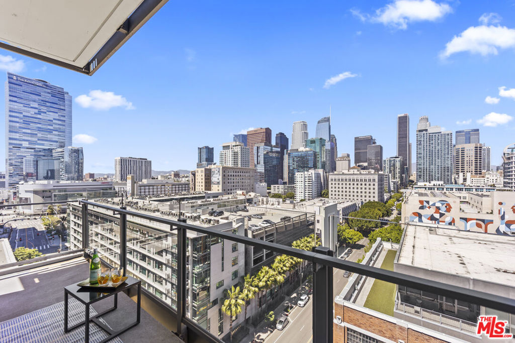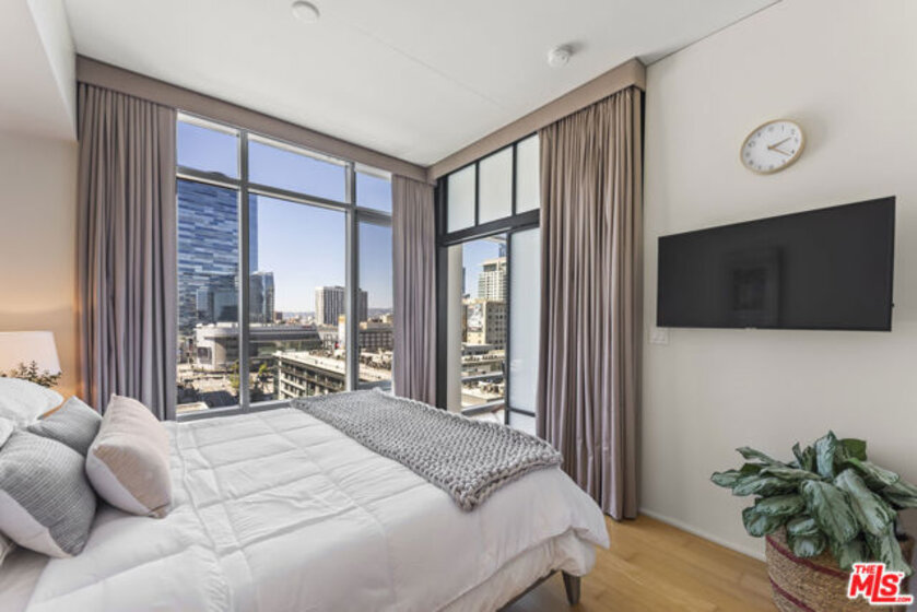 An exceptional 2 bedroom, 2.5 bath condo in the prestigious South Park neighborhood of Downtown Los Angeles. This is a rare northwest corner unit with unobstructed panoramic views of the downtown skyline and Santa Monica Mountains. High ceilings featuring floor-to-ceiling windows throughout with built-in automatic shades. West-facing primary bedroom features an ensuite full bath with separate shower and tub, custom walk-in closet, and blackout shades. North-facing second bedroom features an ensuite full bath, custom walk-in closet, and motorized shades. Bedrooms boast custom wooden sliding doors. Powder room and built-in shoe cabinet is conveniently located in the foyer. Large outdoor balcony with breathtaking views and spacious laundry room. This is truly a beautiful space with great energy and views that are unmatched. 2 blocks from Crypto.com Arena and close proximity to hotels, bars, and museums. Ralph's and Whole Foods are only a few blocks away and there's a farmers market every Saturday a block away. Gym is on the 1st floor. Swimming pool/spa, 4 Viking grills, and garden on the terrace floor. This is an LEED certified building.