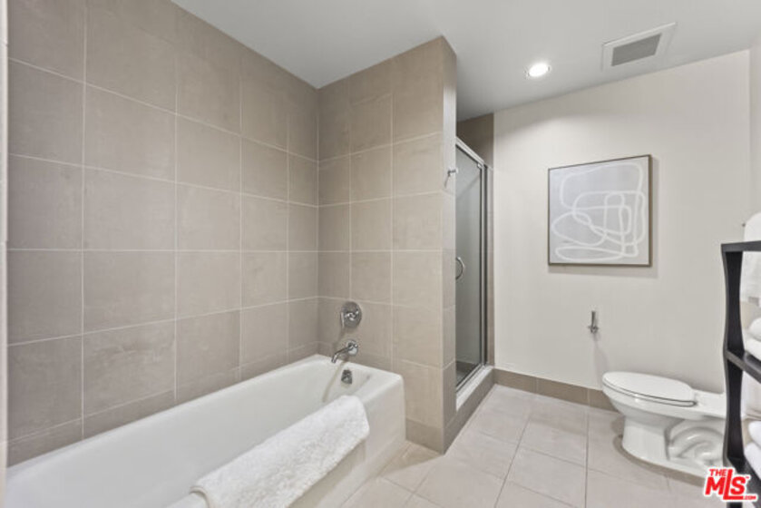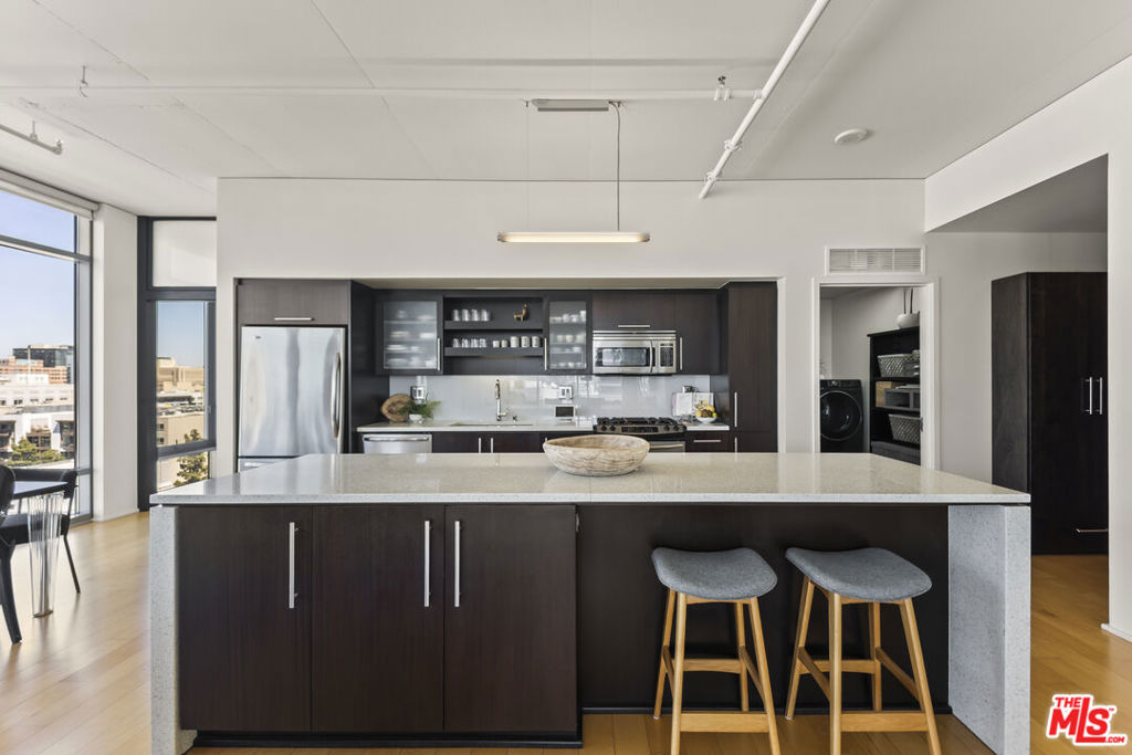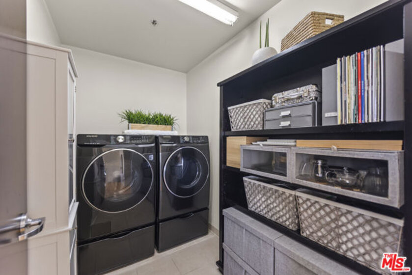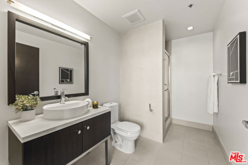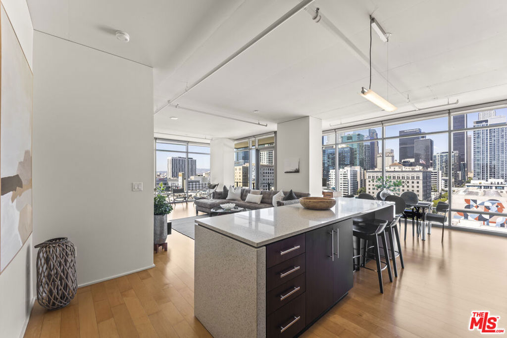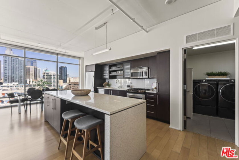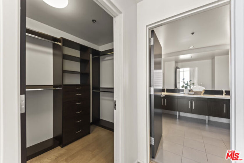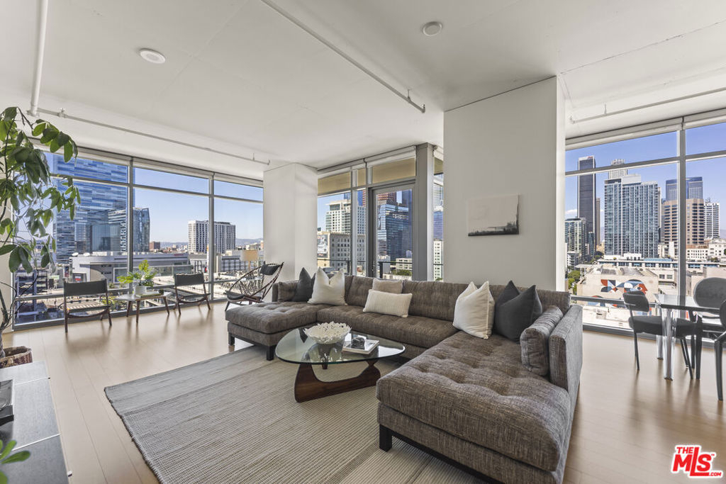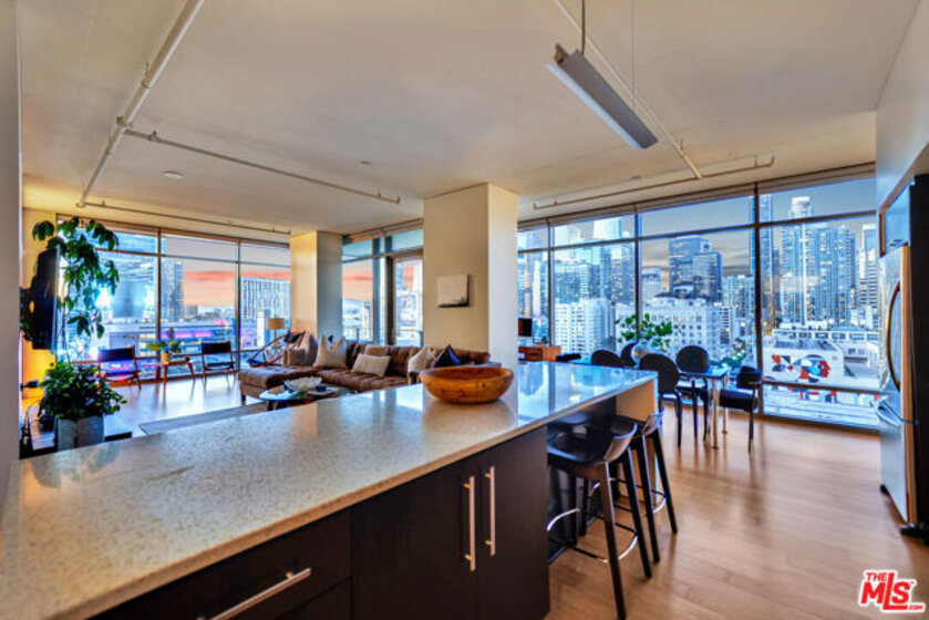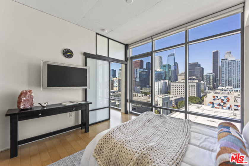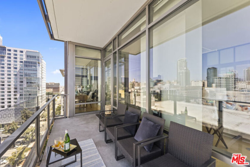An exceptional 2 bedroom, 2.5 bath condo in the prestigious South Park neighborhood of Downtown Los Angeles. This is a rare northwest corner unit with unobstructed panoramic views of the downtown skyline and Santa Monica Mountains. High ceilings featuring floor-to-ceiling windows throughout with built-in automatic shades. West-facing primary bedroom features an ensuite full bath with separate shower and tub, custom walk-in closet, and blackout shades. North-facing second bedroom features an ensuite full bath, custom walk-in closet, and motorized shades. Bedrooms boast custom wooden sliding doors. Powder room and built-in shoe cabinet is conveniently located in the foyer. Large outdoor balcony with breathtaking views and spacious laundry room. This is truly a beautiful space with great energy and views that are unmatched. 2 blocks from Crypto.com Arena and close proximity to hotels, bars, and museums. Ralph's and Whole Foods are only a few blocks away and there's a farmers market every Saturday a block away. Gym is on the 1st floor. Swimming pool/spa, 4 Viking grills, and garden on the terrace floor. This is an LEED certified building.
