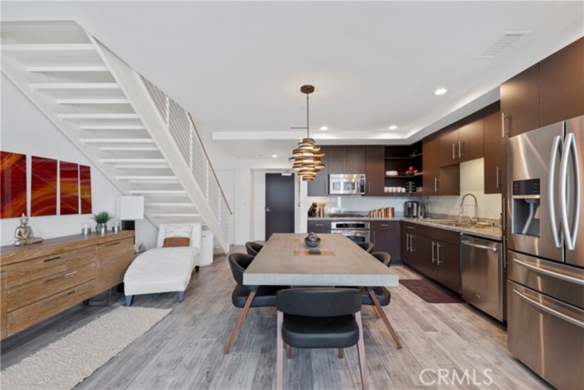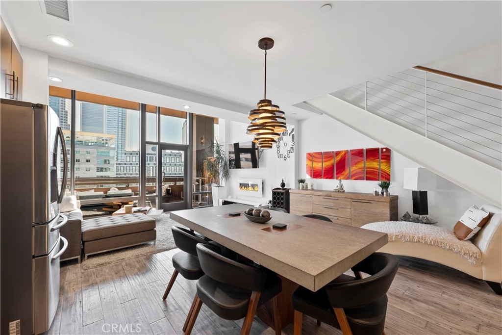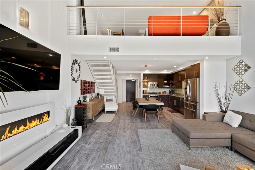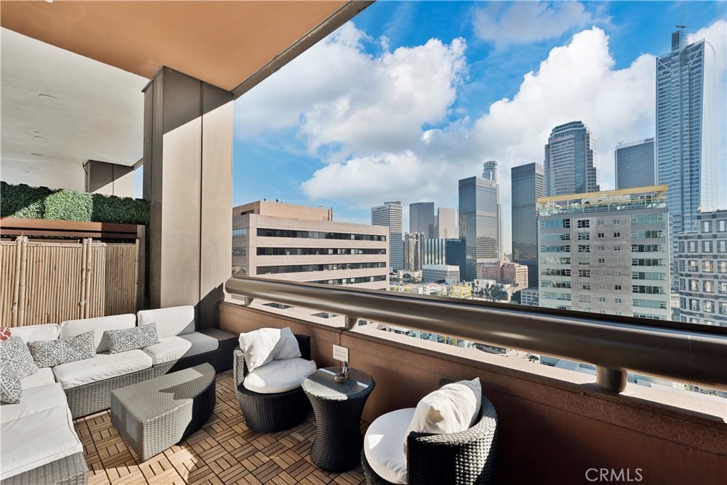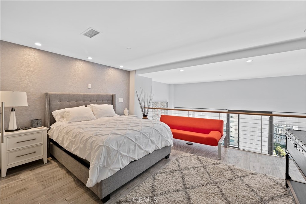 Experience rare luxury living in the heart of Downtown LA with this stunning two-story loft at 1100 Wilshire Blvd. One of only nine exclusive two-level lofts in the building featuring a private balcony, Unit 1707 offers sweeping skyline views and an exceptional indoor-outdoor lifestyle rarely found in DTLA high-rises. This 1 bed, 2 bath loft spans approximately 1,080 sq. ft., showcasing soaring ceilings, dramatic floor-to-ceiling windows, and modern hardwood flooring. The open-concept kitchen features granite countertops, European-style cabinetry, and GE Profile stainless steel appliances. The upper-level bedroom includes a spacious walk-in closet and a spa-inspired ensuite with a soaking tub, dual vanities, and a separate shower. Enjoy unobstructed city views from your private balcony, and take advantage of unparalleled access to resort-style amenities—the unit sits on the same level as the 17th-floor Sky Deck, offering a rooftop pool, spa, cabanas, BBQ area, and fire pit just steps from your front door. Additional features include direct access to the parking elevators, in-unit laundry, and two parking spaces—one reserved with EV charging ready. This full-service building also includes 24-hour front desk/security, a fitness center, conference/media rooms, and a dog run. Located near LA Live, Whole Foods, Crypto.com Arena, and public transit, this rare offering combines modern comfort, urban convenience, and iconic views—perfect for professionals, creatives, or investors seeking a prime DTLA residence.