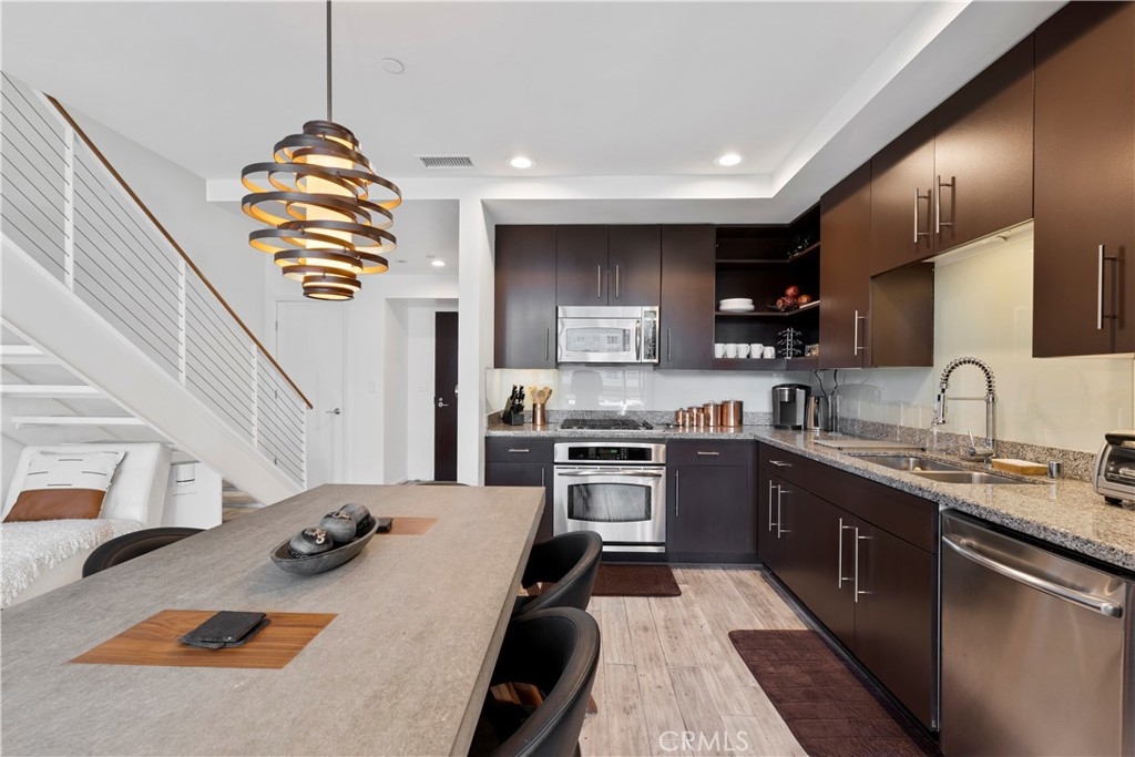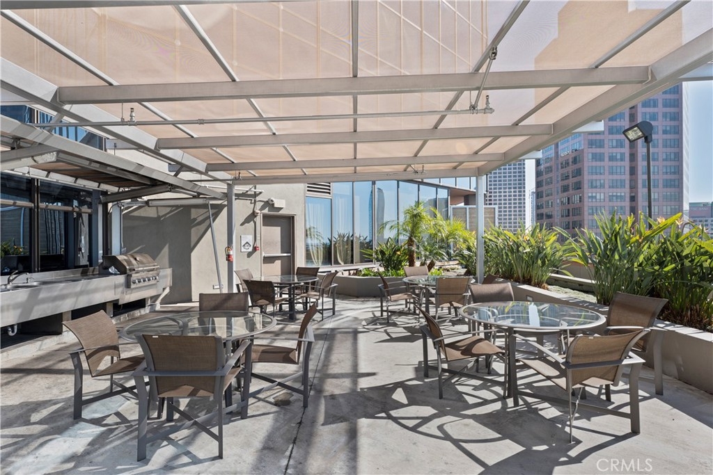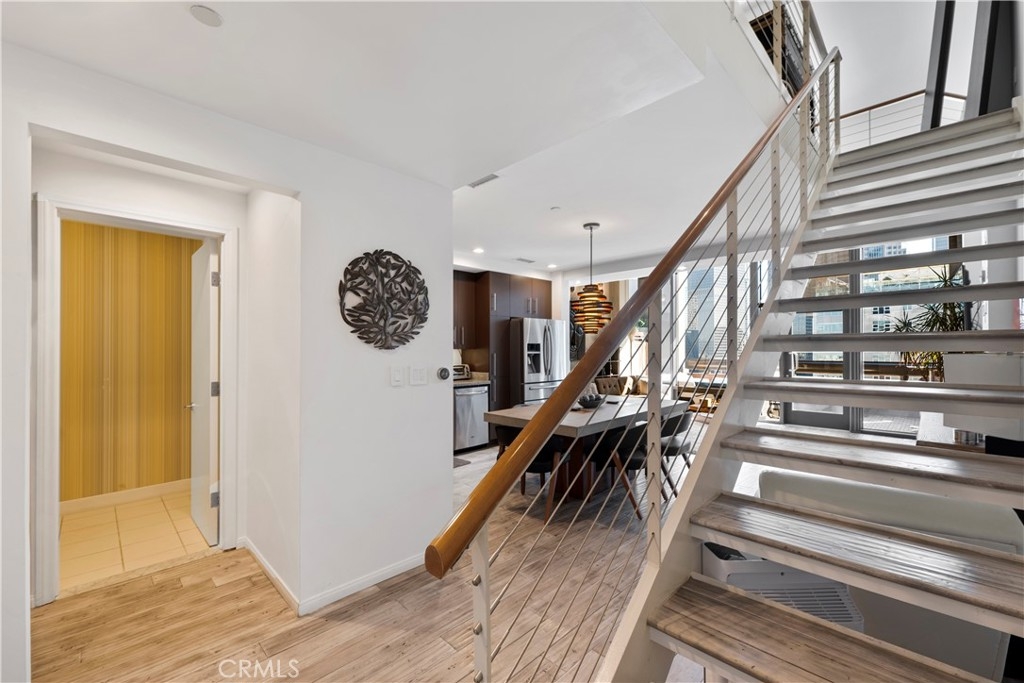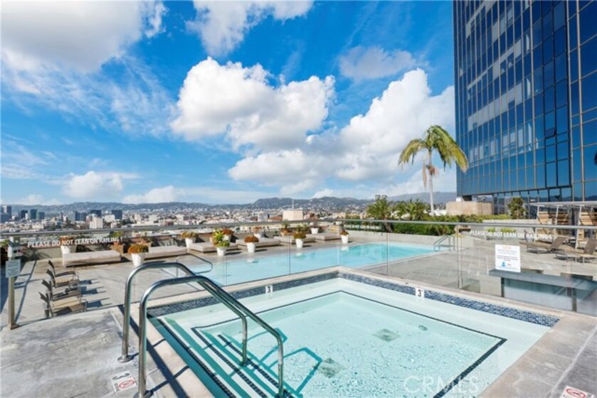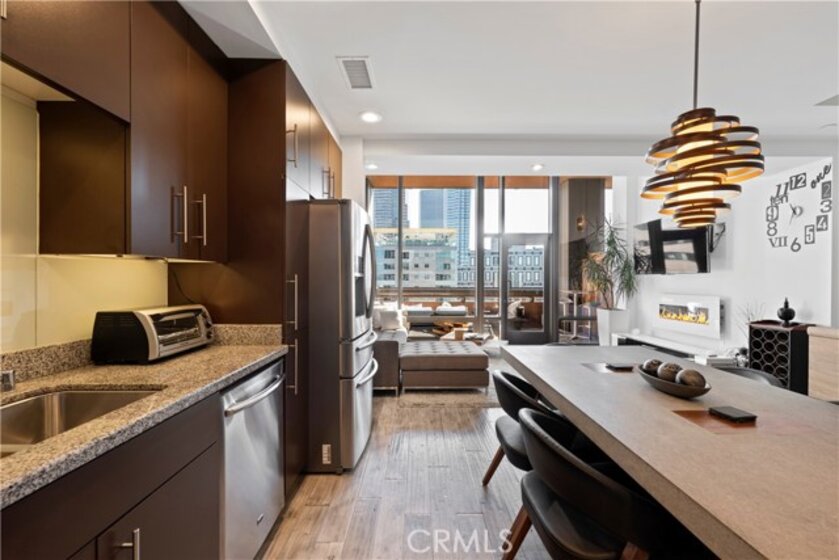 Experience rare luxury living in the heart of Downtown LA with this stunning two-story loft at 1100 Wilshire Blvd. One of only nine exclusive two-level lofts in the building featuring a private balcony, Unit 1707 offers sweeping skyline views and an exceptional indoor-outdoor lifestyle rarely found in DTLA high-rises. This 1 bed, 2 bath loft spans approximately 1,080 sq. ft., showcasing soaring ceilings, dramatic floor-to-ceiling windows, and modern hardwood flooring. The open-concept kitchen features granite countertops, European-style cabinetry, and GE Profile stainless steel appliances. The upper-level bedroom includes a spacious walk-in closet and a spa-inspired ensuite with a soaking tub, dual vanities, and a separate shower. Enjoy unobstructed city views from your private balcony, and take advantage of unparalleled access to resort-style amenities—the unit sits on the same level as the 17th-floor Sky Deck, offering a rooftop pool, spa, cabanas, BBQ area, and fire pit just steps from your front door. Additional features include direct access to the parking elevators, in-unit laundry, and two parking spaces—one reserved with EV charging ready. This full-service building also includes 24-hour front desk/security, a fitness center, conference/media rooms, and a dog run. Located near LA Live, Whole Foods, Crypto.com Arena, and public transit, this rare offering combines modern comfort, urban convenience, and iconic views—perfect for professionals, creatives, or investors seeking a prime DTLA residence.