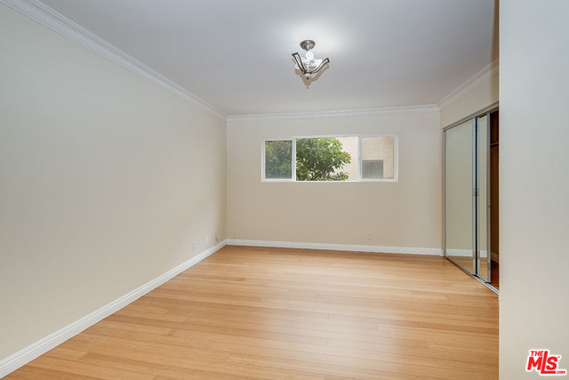 Luxurious one bedroom condo located in a fantastic neighborhood of Brentwood. This sunny and bright unit features an open floor plan, large bedroom and bamboo floors throughout the living area and bedroom. Kitchen boasts granite counter tops, stainless steel appliances, cherry cabinets, gorgeous stone back splash and stainless steel hood over the range. The spacious master bedroom has double mirrored closets and ample space. The bathroom offers a beautiful tile shower/tub combo with a rainfall shower-head. Additional highlights include in unit hookups for washer and dryer and Juliette balcony off the living area. Extremely coveted location in the building as it's North facing and looks on to Goshen! Building was remodeled in 2006 and features a community pool, fitness center, sauna, elevator and video intercom system. The best entertainment, dining and shopping Brentwood has to offer is just a short distance away on both Wilshire and San Vicente!