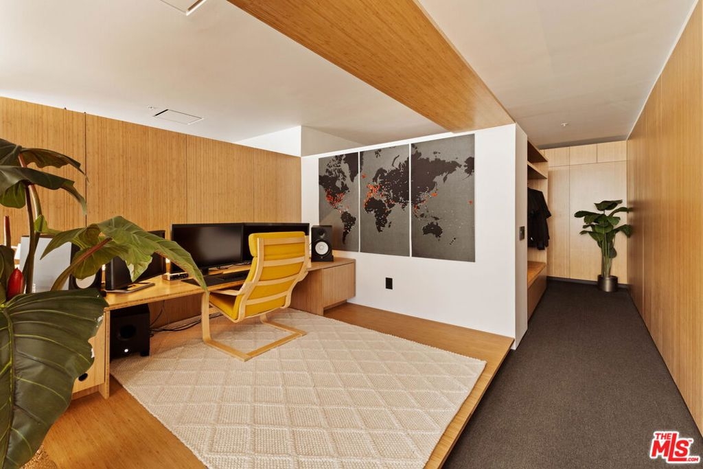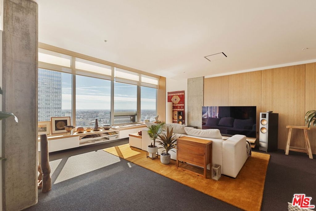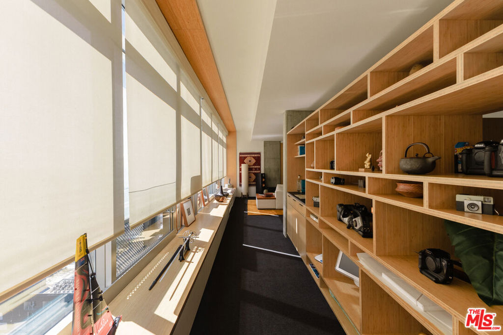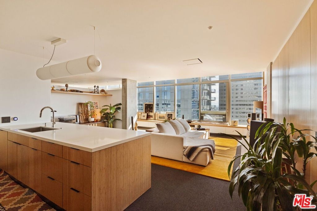 Introducing: Hibiki House. Perched just beneath the penthouse level of EVO, this architecturally reimagined one-bedroom residence offers a sense of volume, restraint, and quiet sophistication rarely encountered in Downtown Los Angeles. Conceived with the sensibility of a finely composed boutique hotel in Tokyo or Europe with a meticulous design forward renovation, Hibiki House unfolds through a continuous wood spine that unifies living, work, storage, and sleep into a singular architectural gesture. Warm natural materials, exposed concrete, and clean horizontal lines lend the interiors a grounded, deeply considered calm high above the city. A full-length window bench with concealed storage frames the skyline like a living tableau, while the spa-like bath is rendered as a moody, minimalist retreat. The result is a home that feels both highly functional and serenely immersive. Parking includes an installed EV charger. Rising 24 stories above South Park, EVO remains one of Downtown's most polished full-service addresses, offering 24-hour front desk, security, concierge, and on-site management. Amenities are designed with a resort sensibility and include a sixth-floor infinity lap pool and spa, multiple barbecue areas with televisions, an outdoor kitchen and lounge for entertaining, and a rooftop fitness center with sweeping southern views. Lounge 240 offers an additional gathering space with outdoor seating, fire pit, and panoramic views of the Downtown skyline. Positioned moments from L.A. Live, Crypto.com Arena, the Los Angeles Convention Center, and University of Southern California, the residence also enjoys immediate access to Whole Foods Market, acclaimed dining, coffee shops, bars, dry cleaning, and the neighborhood farmers market. As Downtown Los Angeles continues its global ascent with the FIFA World Cup 2026, Super Bowl LXI, and the 2028 Summer Olympics poised to further energize the city this residence presents a compelling opportunity for the design-minded buyer seeking elevated urban living with effortless lock-and-leave ease.