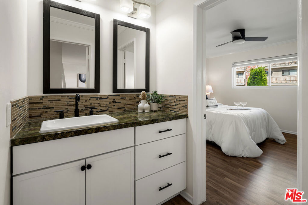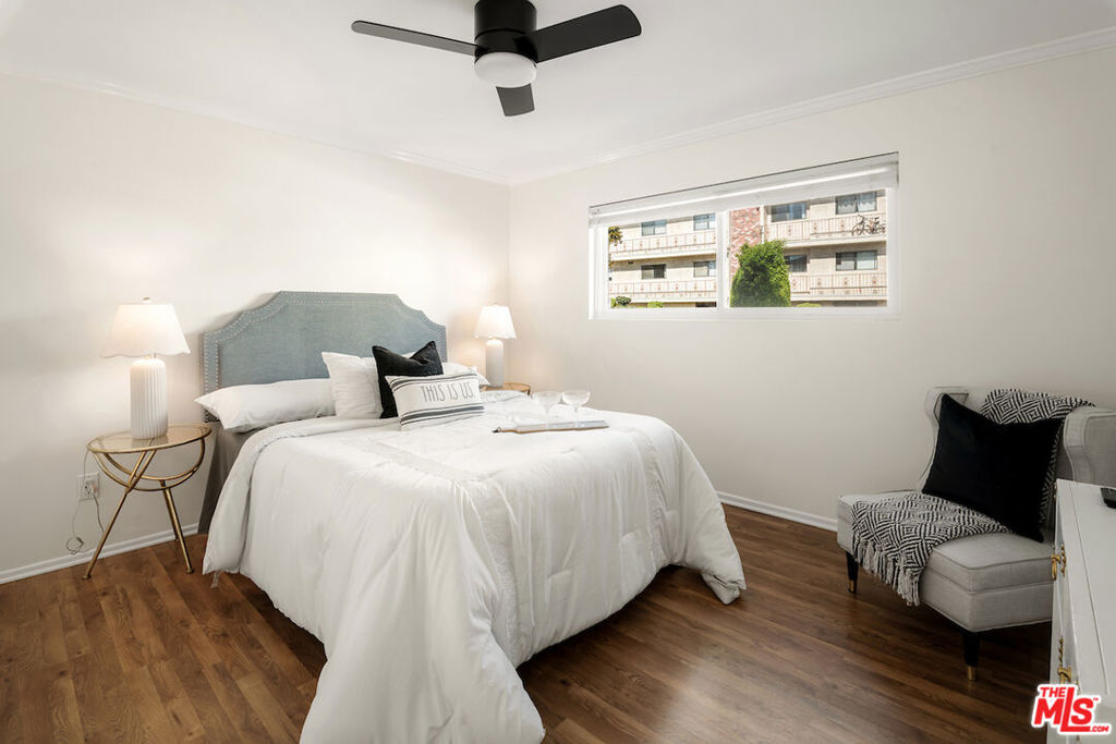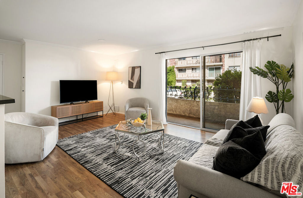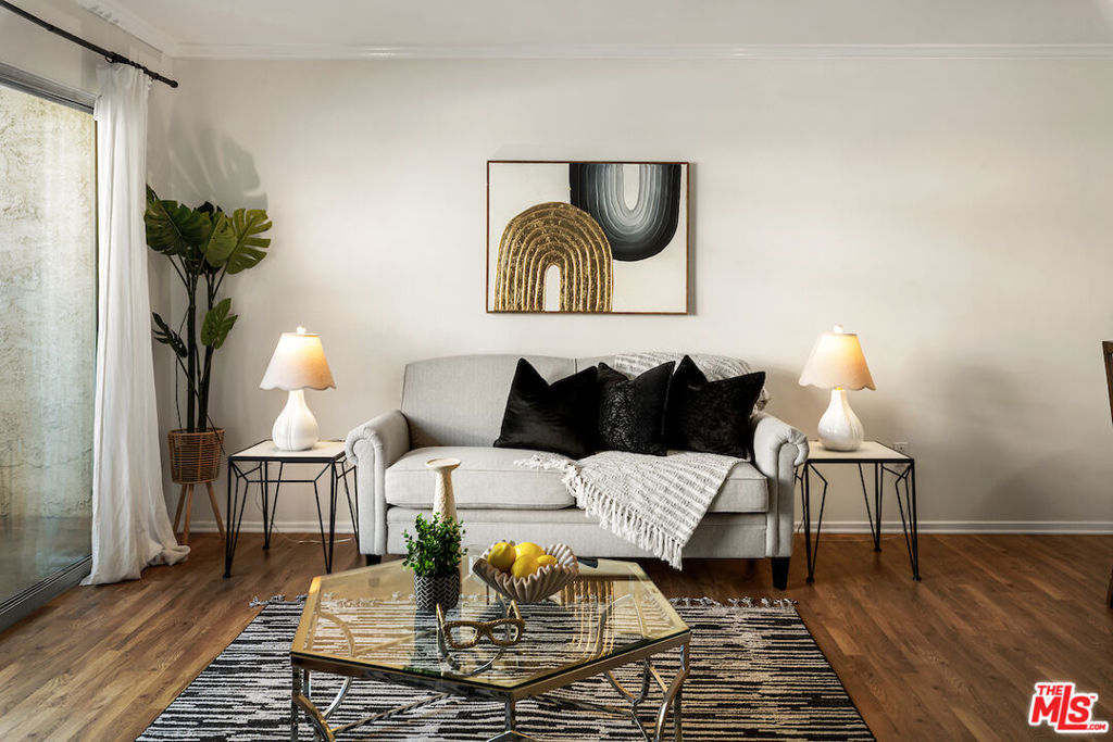 Condo in Highly Desirable West L.A. Location! Spacious 1 bedroom + 1 bath with approx. 676 sqft with modern laminate wood flooring throughout. Bright and spacious living room that flows out to a private balcony. East facing unit with great greenery views. Kitchen with granite countertops and stainless-steel appliances, Energy efficient dual glazed windows for year-round climate control. Sleeping quarters features a spacious layout with space for lounging with a professionally designed walk-in closet with lots of built-in storage system.Granite topped vanity and full height tiled walk-in shower. Low Homeowners dues include water. Effortless access to Sawtelle Blvd's culinary heartbeat and retail hubs and minutes to UCLA, Brentwood, Santa Monica and Century City