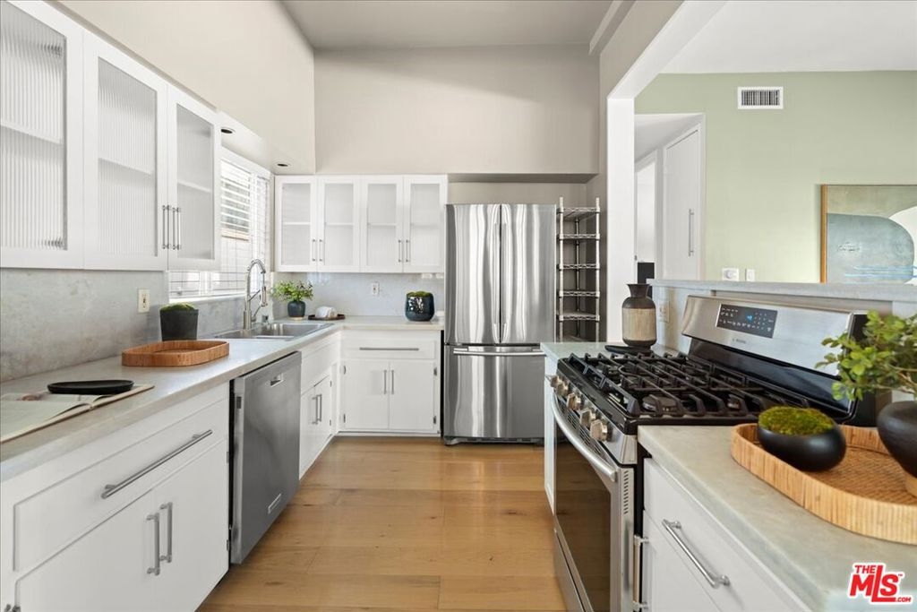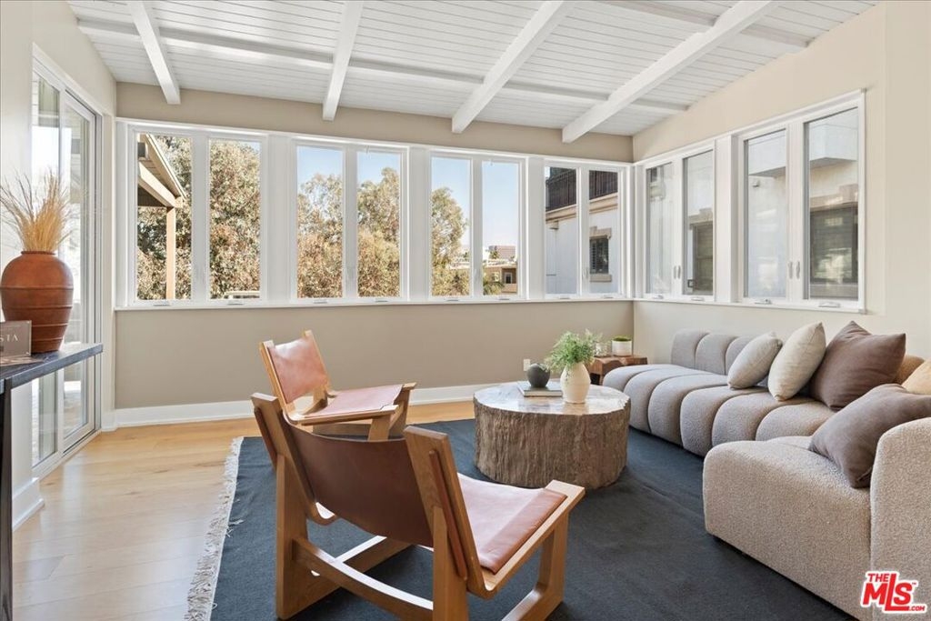 Discover this expansive two-bedroom, two-bath condominium that offers the feel of a single-level townhouse, thanks to its rare and extraordinary large deck and outdoor space that is entirely exclusive to this unit. This deck is one of the largest private outdoor areas in all of Brentwood, providing a serene, tree-lined view that creates a tranquil escape from city life. Imagine entertaining guests or enjoying a quiet evening in your own spacious outdoor living area, perfect for BBQs, lounging, or dining al fresco. Inside, the unit has been completely updated and renovated with meticulous attention to detail, blending modern luxury with functional design. The open floor plan offers a seamless flow between the living, dining, and kitchen areas, making it perfect for both everyday living and entertaining. High ceilings and abundant natural light enhance the spaciousness, creating a bright and welcoming environment. This unit also boasts the coveted Brentwood lifestyle - everything you could desire is just a quick stroll away. Enjoy the convenience of being walking distance to Whole Foods, Katsuya, and Brentwood Village, where you can find SoulCycle, Orange Theory, and some of the best restaurants and boutiques the area has to offer. Additional features include two tandem parking spots (numbers 15 and 16), providing ample parking space, and in-unit laundry for added convenience. This is a rare opportunity to own a beautifully renovated unit with a unique outdoor space in one of Brentwood's most desirable locations. Don't miss the chance to experience luxury living with the best of Brentwood right at your doorstep!