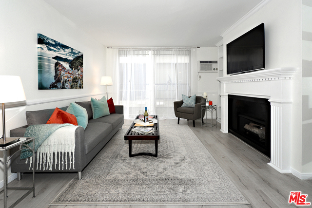 Elegant one bedroom, one bathroom condo in the sought after Montana Terrance complex. Move in ready! Gorgeous grey floors, fresh paint, and crown molding throughout this open layout. Kitchen has countertop seating and overlooks both the living and dining spaces. The living room boasts large sliding glass doors, a stylish fireplace, and mantle with built in shelving. Entry way has elegant white cabinetry with glass doors. Spacious bedroom with large window and plenty of storage space with a wall to wall closet. Upscale unit in an upscale neighborhood within close distance to coffee shops, restaurants, and grocery stores. Complex enjoys a pool, spa, gated parking, elevator access, and onsite manager. HOD includes EQ Ins. Condo is located above street level.