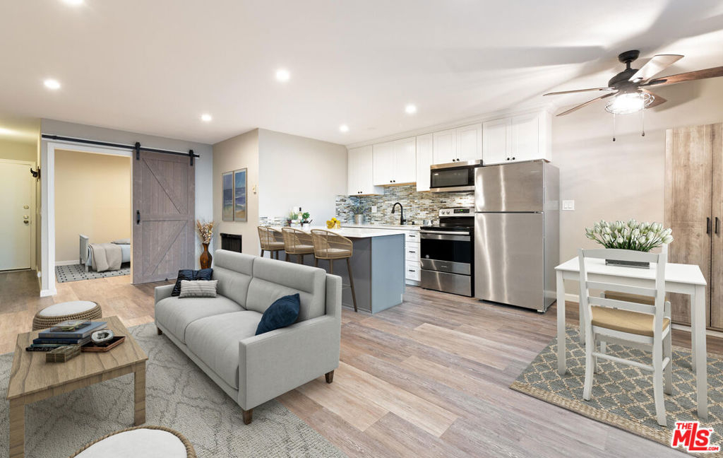 Do not miss the opportunity to own this fully renovated condo in the heart of Brentwood and minutes to Santa Monica! It is within walking or biking distance to restaurants and shops. This unit has natural light with a newly installed glass patio door with Designer layer shade coverings. The fully remodeled kitchen, bathroom vanity, sliding barn door to close off the bedroom and newer stylish flooring gives the unit a modern contemporary look. It has its own character, warmth and peaceful surrounding. This unit is immaculately clean and ready to move-in!