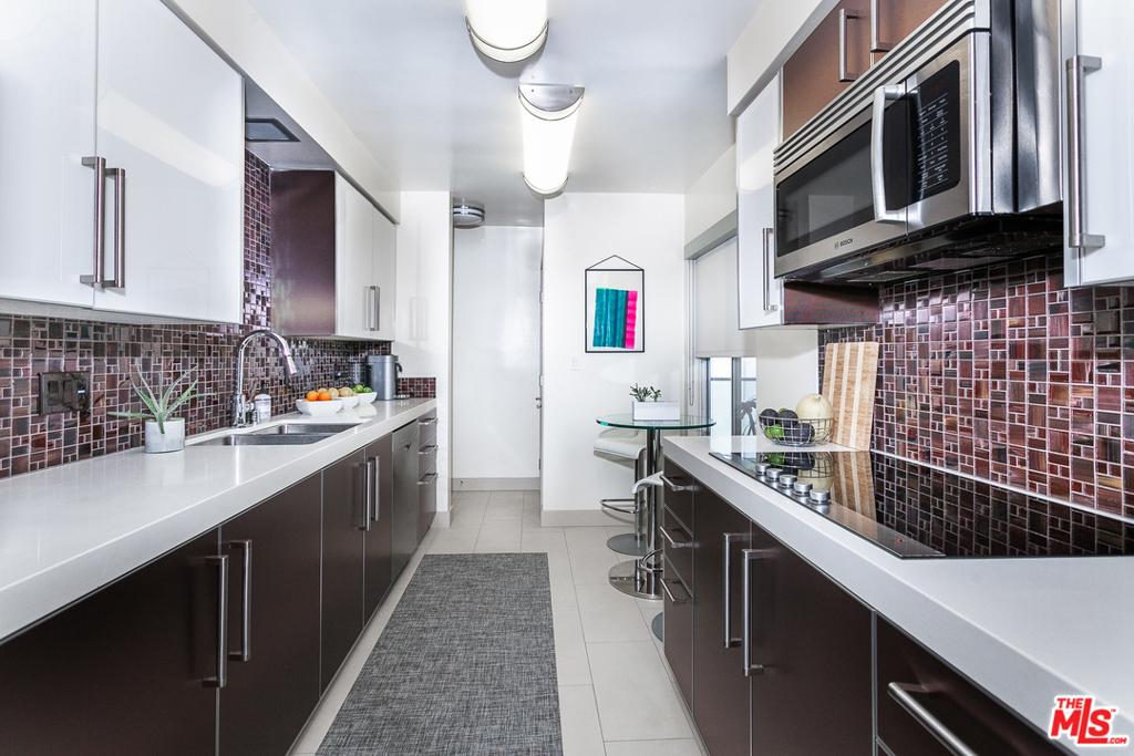 Welcome to the ultimate in urban living - located on a quiet cul-de-sac street in the heart of Brentwood. This top floor condo offers an open floor plan in the main, living and dining areas with oversized sliding glass doors that open onto a covered balcony. The chefs kitchen is complete with stainless steel appliances, quartz countertops, breakfast bar and custom cabinetry. The generously sized principle suite features a designated vanity area, two closets and en-suite bathroom with dual sinks. This stunning unit also includes oversized second bedroom, in-unit laundry, and recessed lighting throughout. The unit comes with 2 side-by-side parking spaces. Recently restored in 2015, building amenities include controlled access, private courtyard with pool, fitness center, and secure parking. Steps from all Brentwood has to offer.
