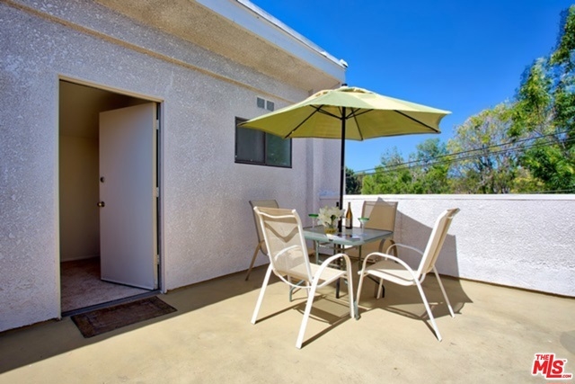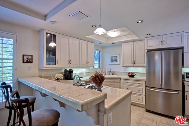 Elegant Tri-Level Penthouse Townhouse in Brentwood. Extremely quiet rear unit w/ only 1 common wall w/ approx 1780 sqft. Large and sunny private patio w/ and expansive and exclusive private sundeck.Lots of greenery views that backs up to single family homes. Hardwood floors, plantation shutters, recessed lights, open tiled kitchen w/ lots of cupboard space and breakfast bar, central heat and a/c, inside side by side laundry, Large master suite w/ vaulted ceilings a sitting area and fireplace, en-suite 2nd bedroom w/ separate exit, bathrooms w/ travertine tiles, large bonus room on upper 3rd level, side be side security parking w/ guest spots, amenities include a pool, spa , rec room and storage room. Located in Brentwood's top rated Kenter Canyon Charter School. And only a few steps to Brentwood finest shops , restaurants and markets. HOA dues include Earthquake insurance.